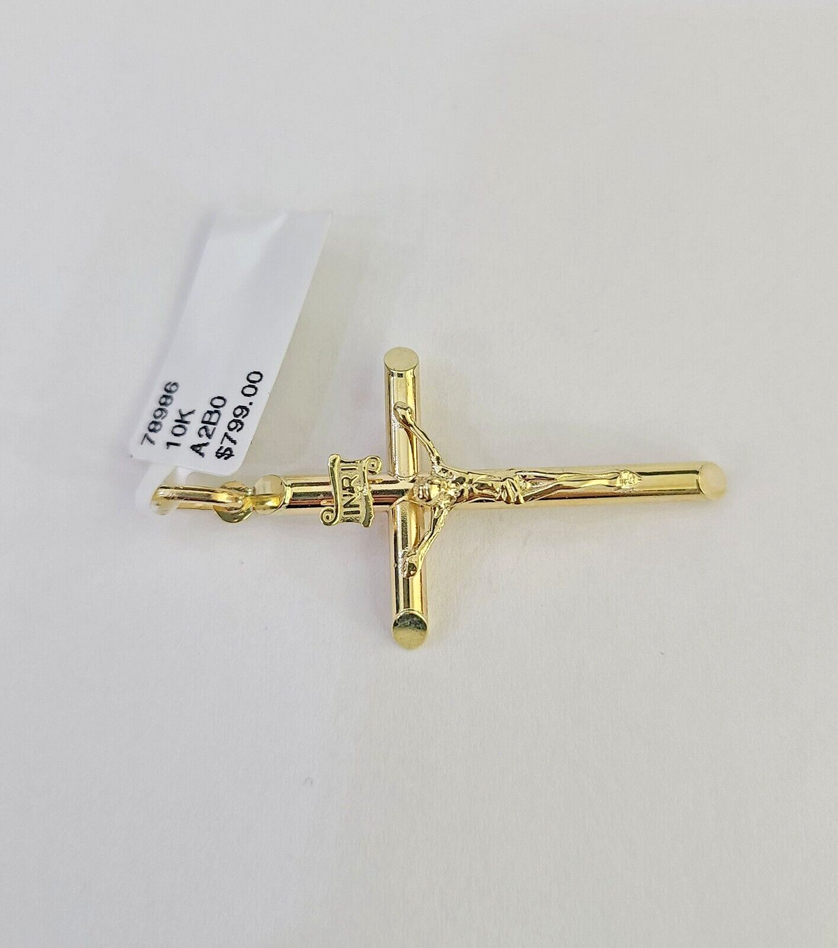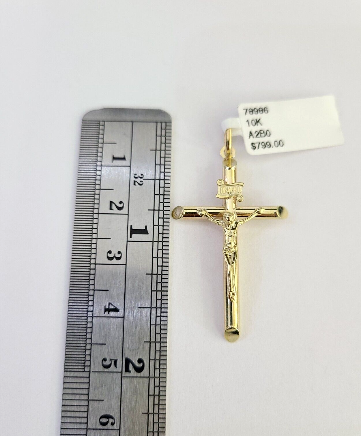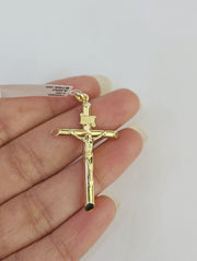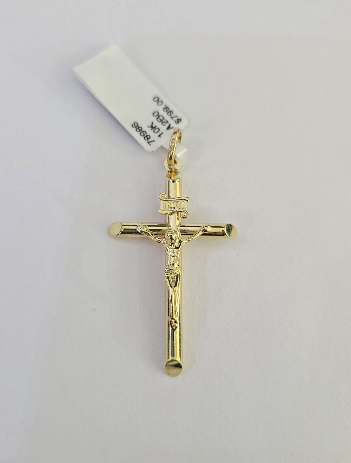 10k Yellow Gold Real (Not plated , Not filled ) INRI Jesus Crucifix Pendant . The Length of the Pendant is 1.5-2.5 inches (approx.) Long . The pendant can be worn with any chain. The pendant is considered durable. If you are not happy with the way it looks or feels, we do offer 30 - Days FREE Return shipping..
