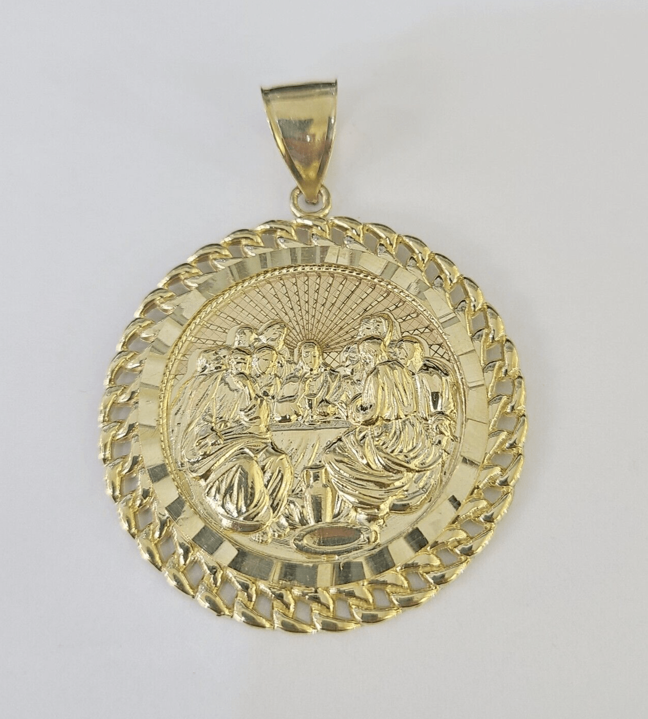 10k Last Supper Charm Pendant Medallion Yellow Gold Diamond Cut 2.25"
