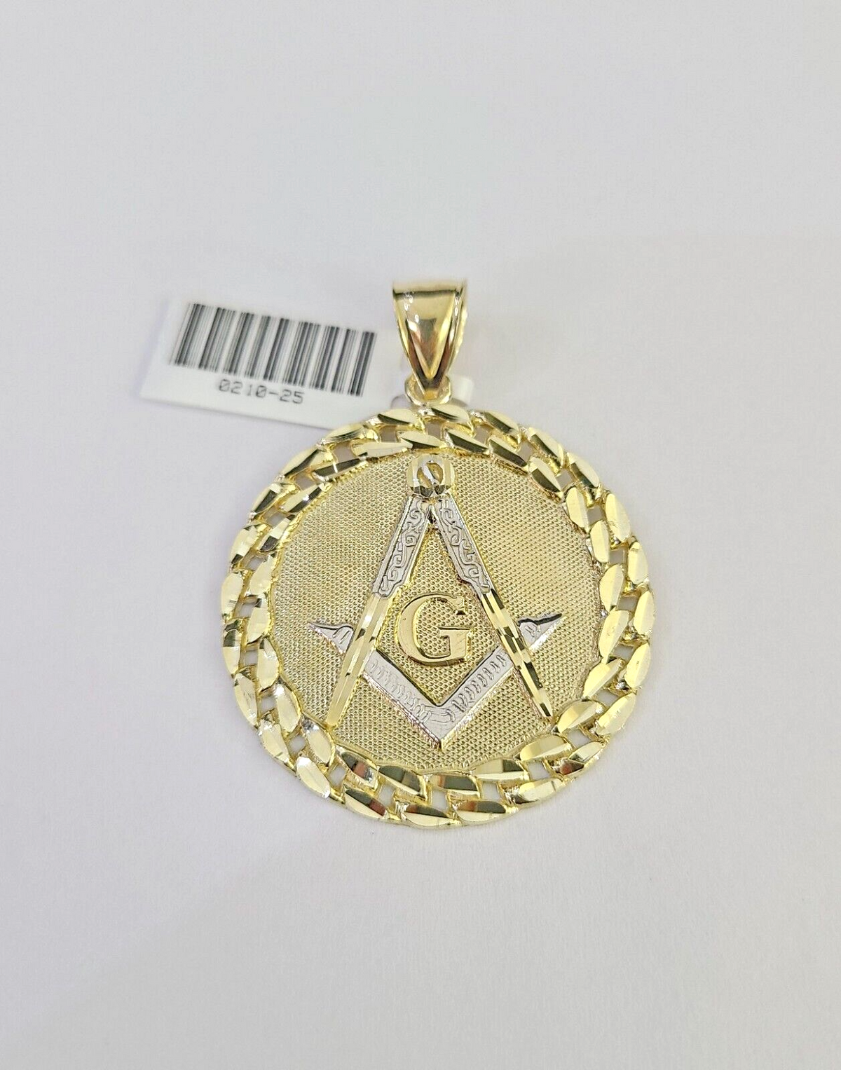10k Yellow Gold Real (Not plated , Not filled ) Masonic Medallion Pendant . The Length of the Pendant is 1.5-2.5 inches (approx.) Long. The pendant can be worn with any chain. The pendant is considered durable. If you are not happy with the way it looks or feels, we do offer 30 - Days FREE Return shipping. Please note that this listing does not include a Necklace.