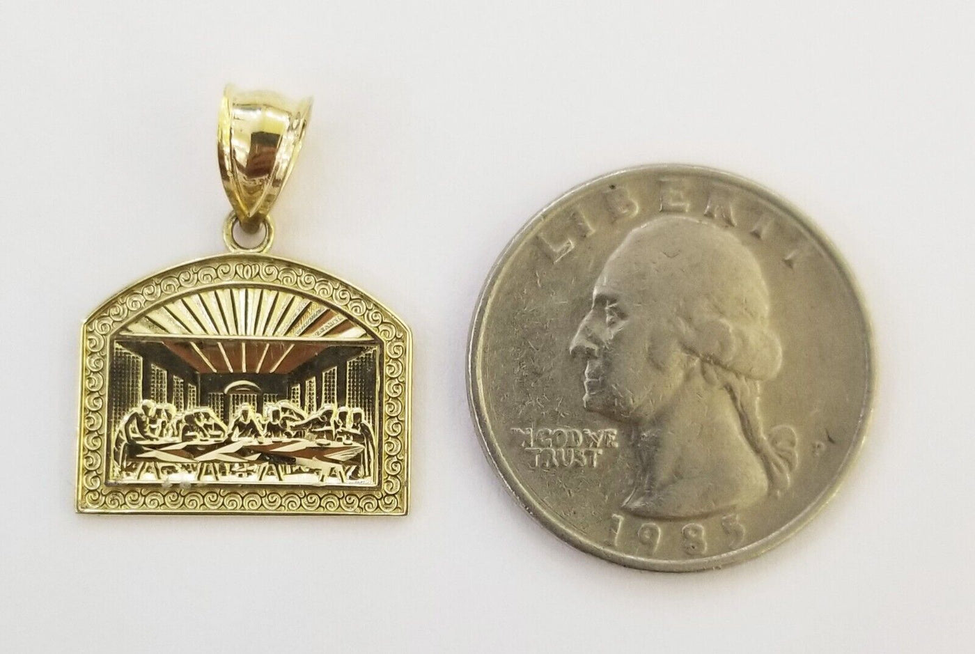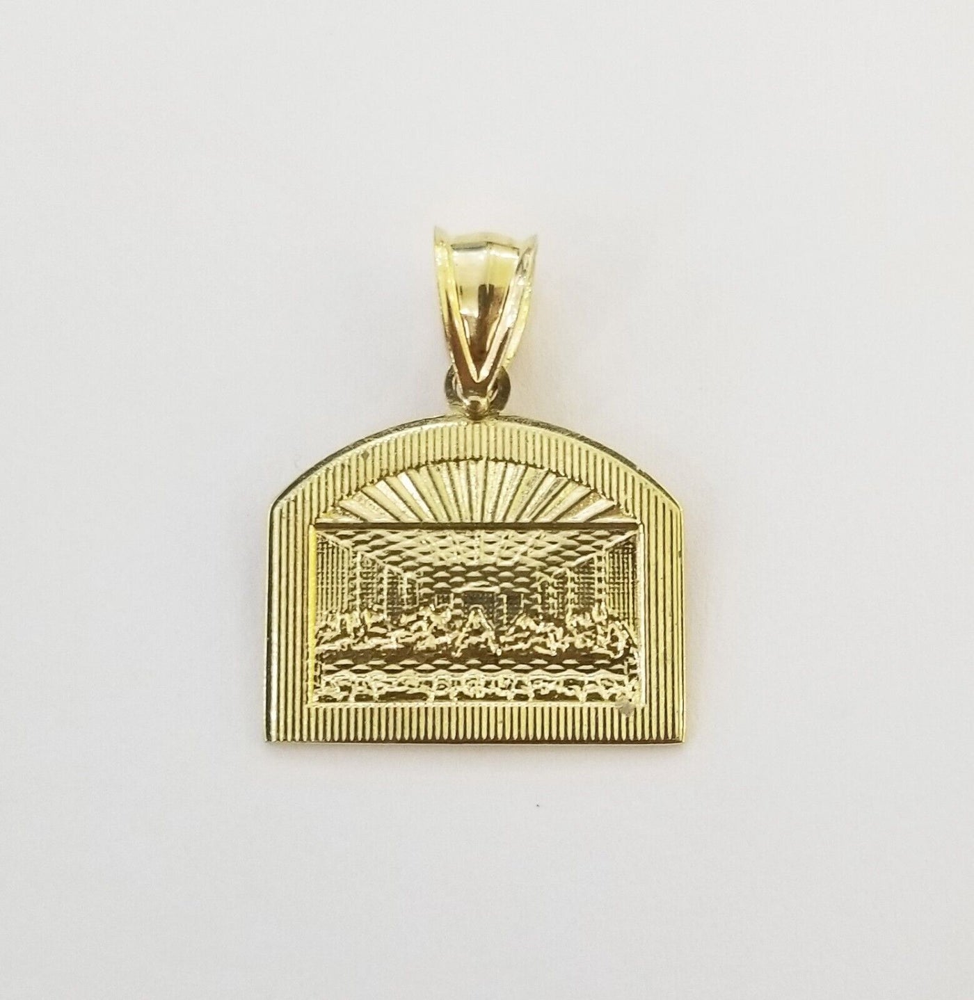 10k Real Yellow Gold Last Supper Charm Pendant Men Women Diamond cuts Design