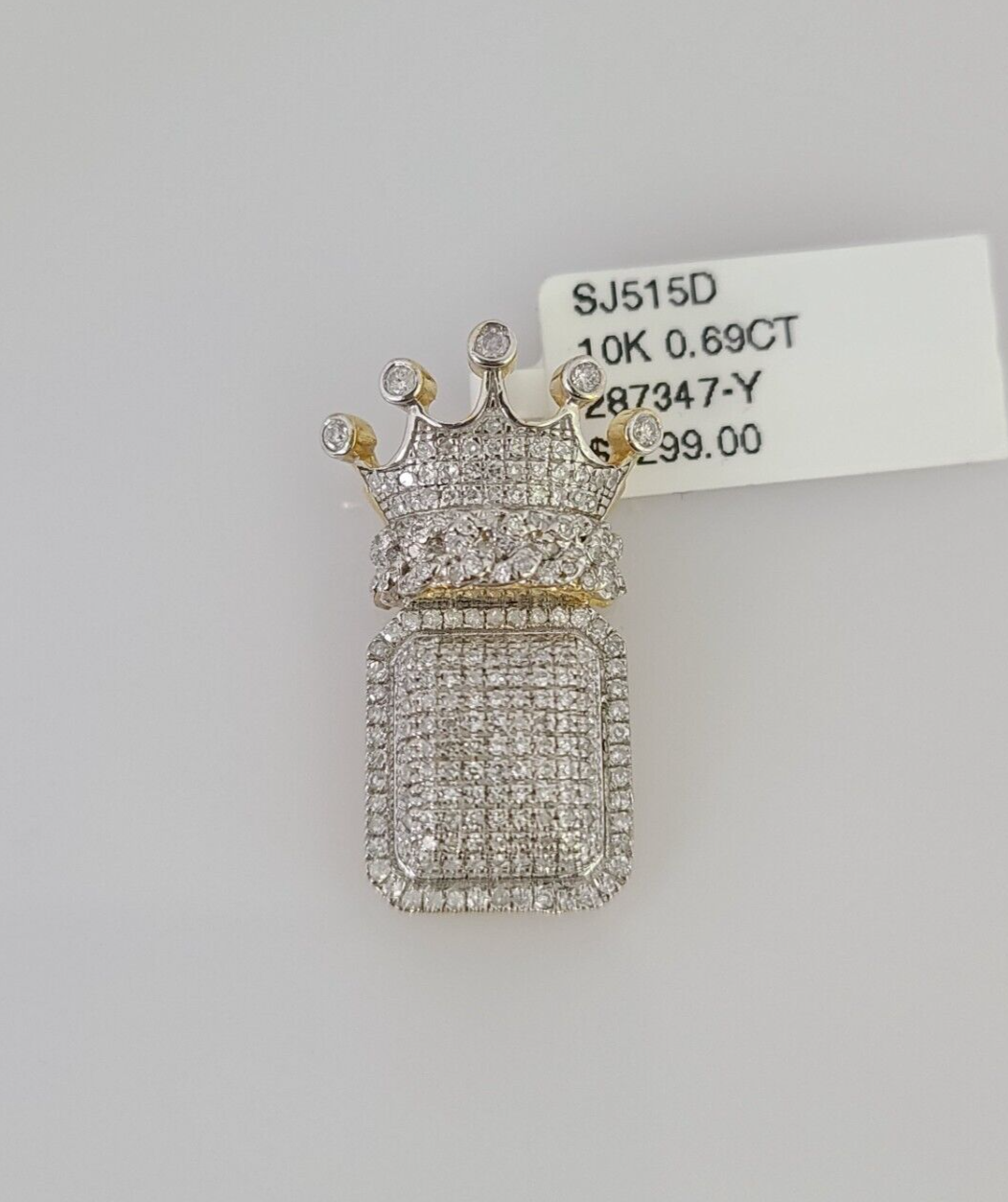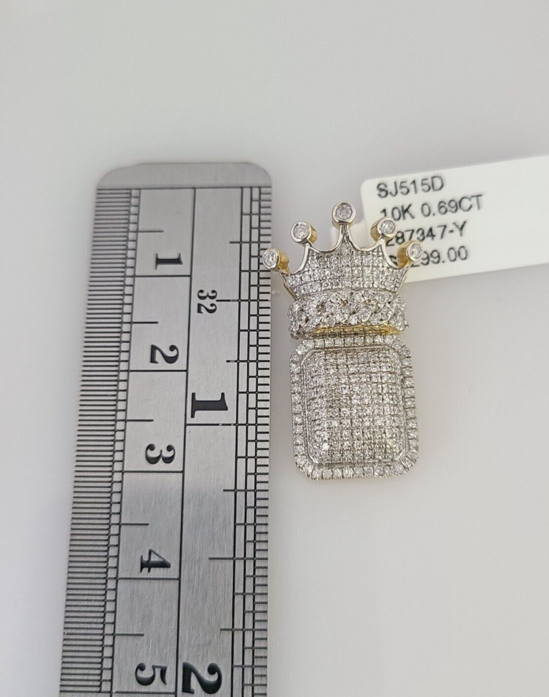 10k Yellow Gold Real (Not plated , Not filled ) Yellow Diamond Crown King charm pendant . The Length of the Pendant is 1-2 inches (approx. ) Long and 0.69CT diamond. The pendant can be worn with any chain. The pendant is considered durable. If you are not happy with the way it looks or feels, we do offer FREE Return shipping..