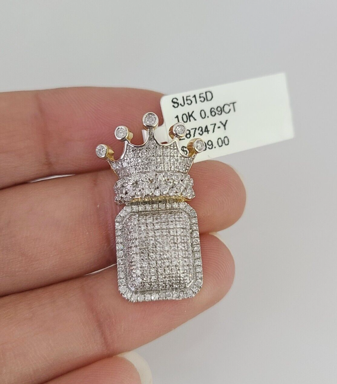 10k Yellow Gold Diamond Crown King Charm Real 10Kt Pendant Natural Genuine