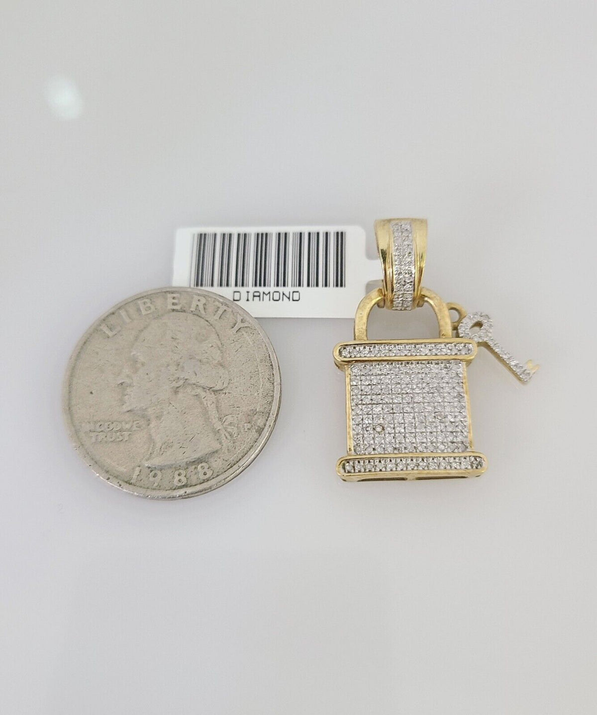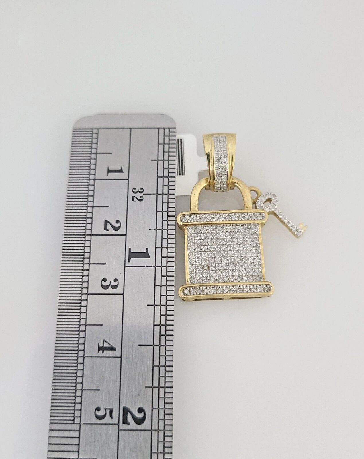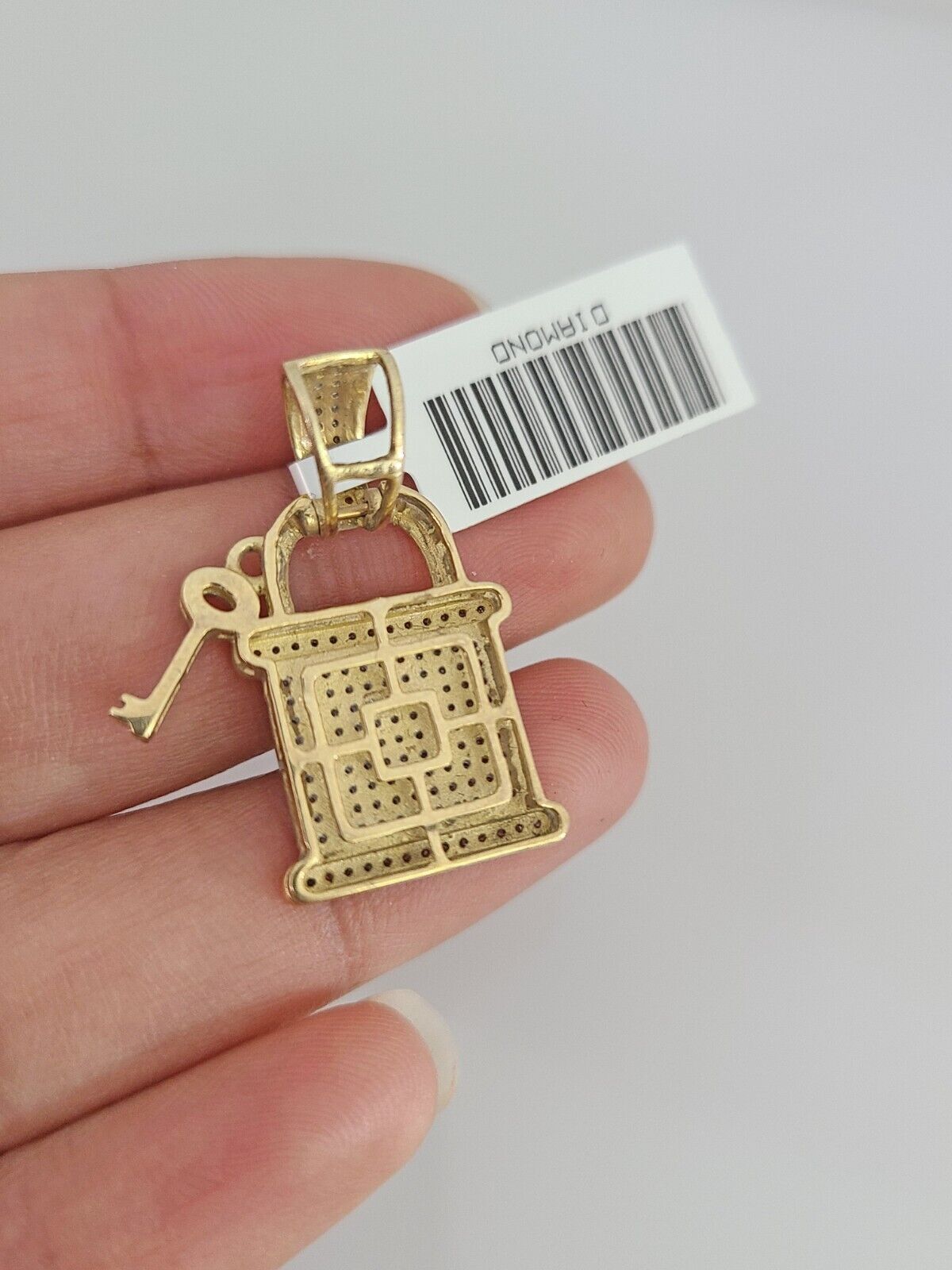 10k Yellow Gold Diamond Lock Key Charm Real 10Kt Pendant Natural Genuine