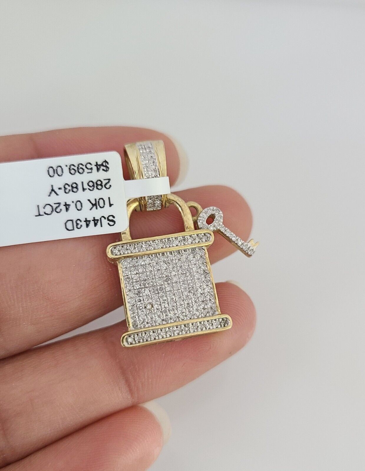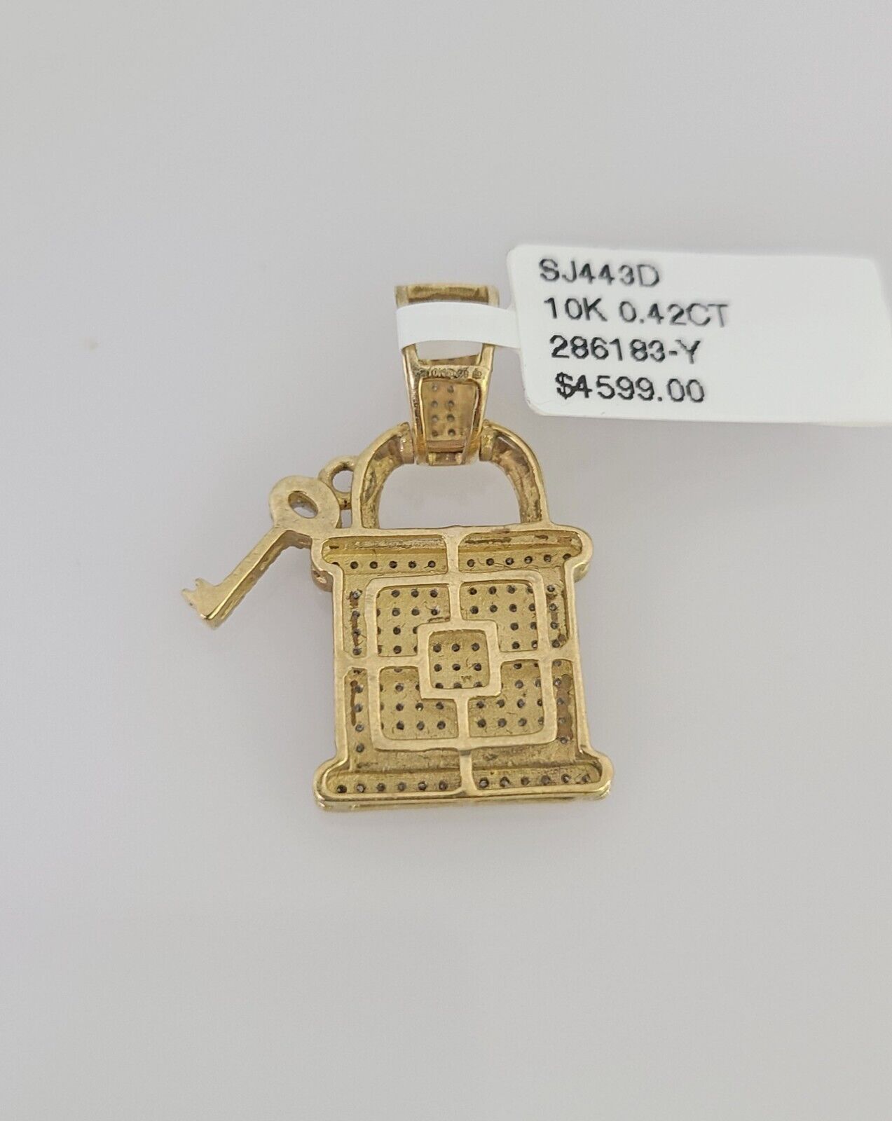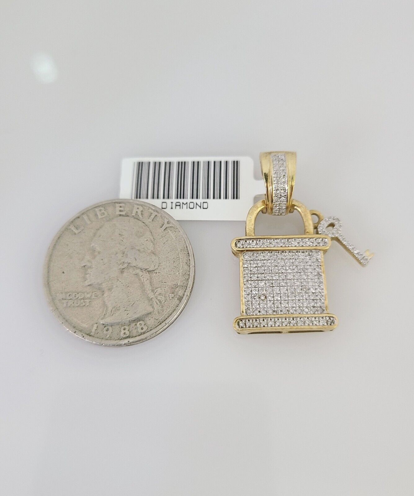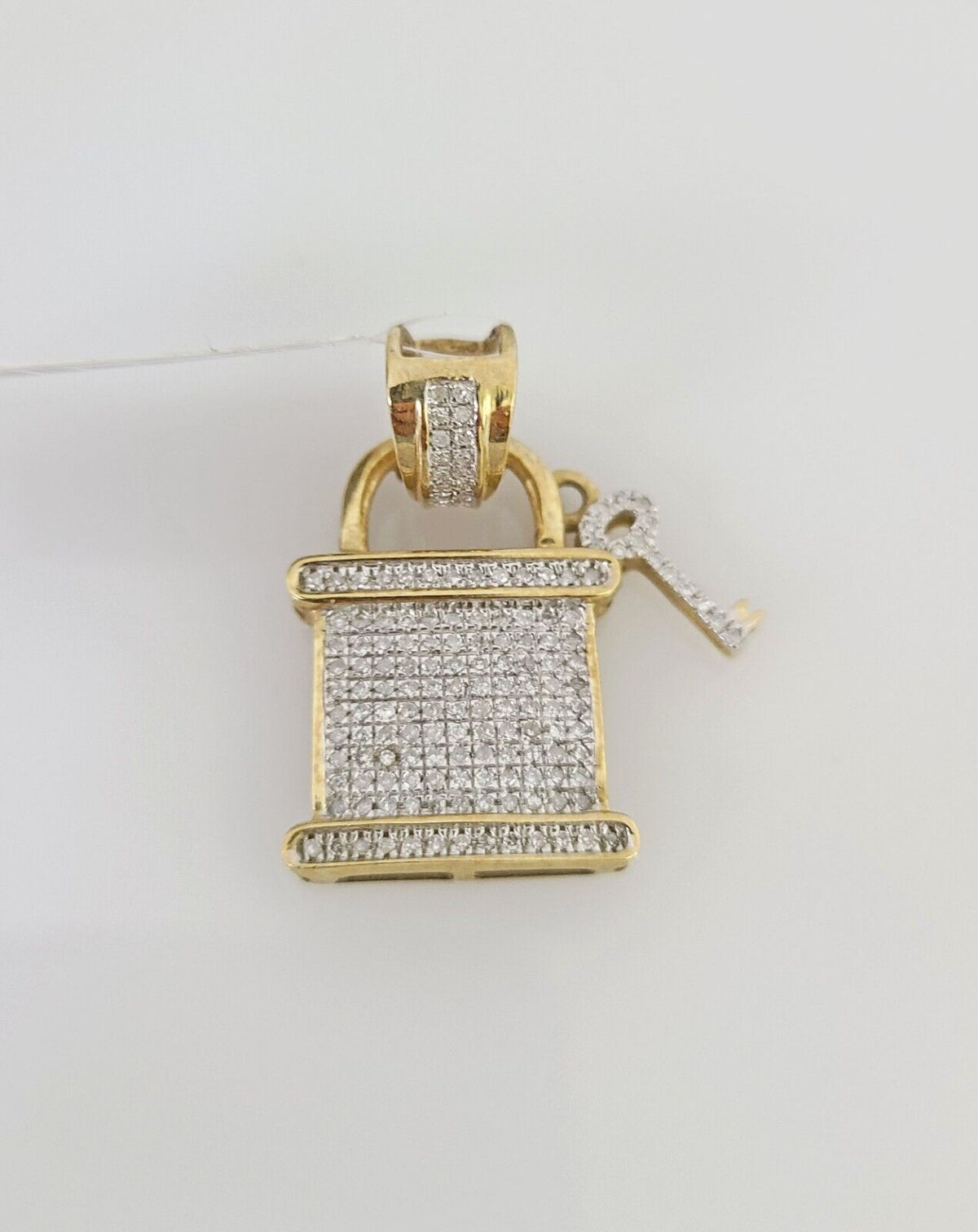 10k Yellow Gold Diamond Lock Key Charm Real 10Kt Pendant Natural Genuine
