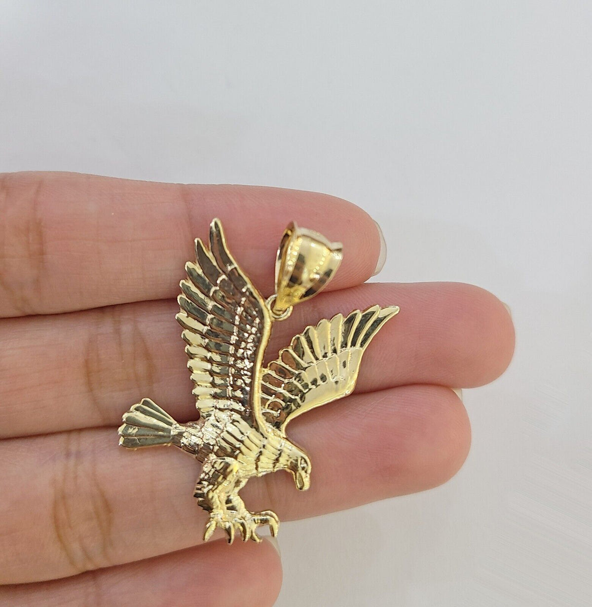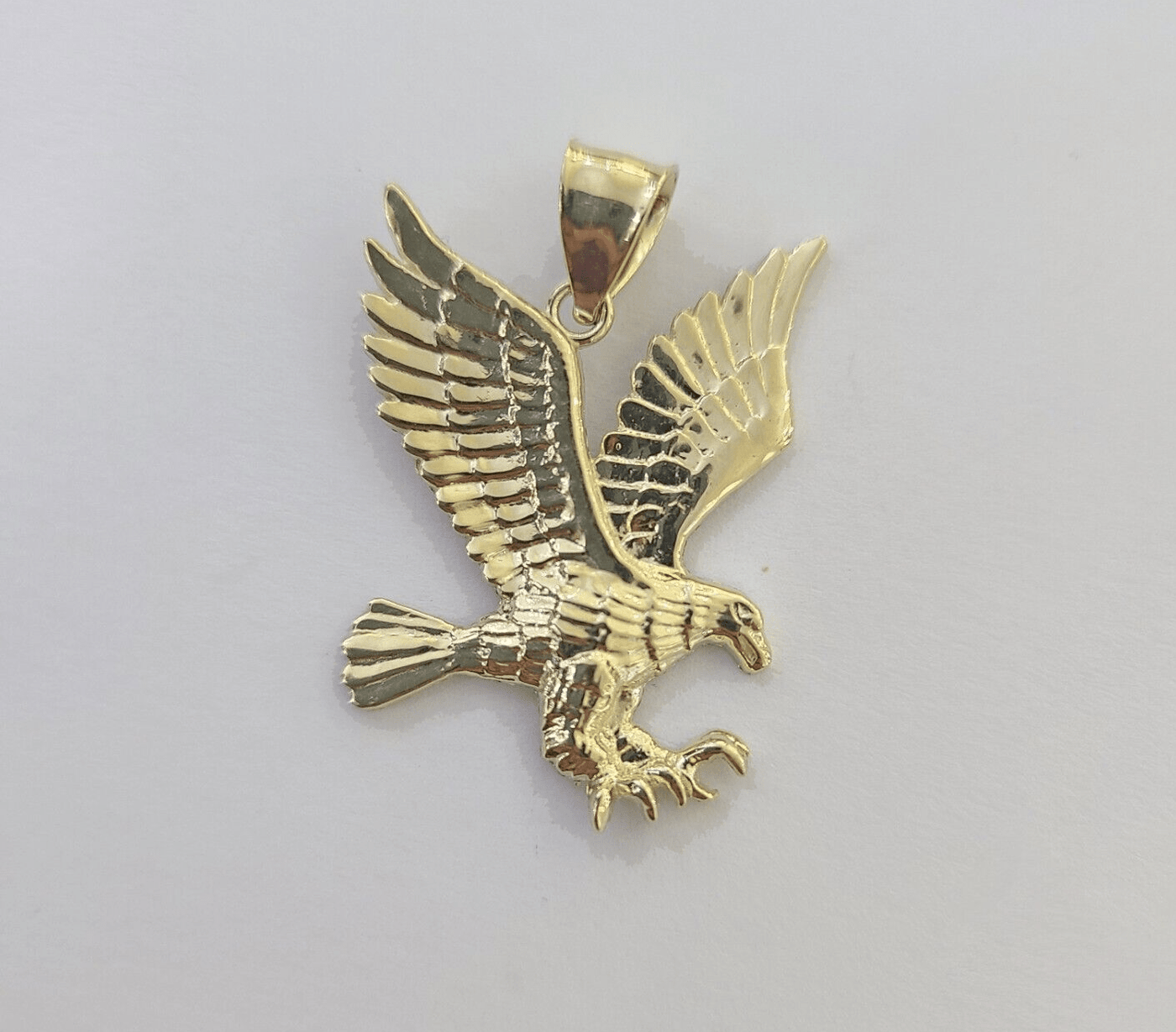 GoldenLinQ Is Presenting You with This Absolutely Stunning Real 10k Yellow Gold����Flying Eagle Diamond Cut Charm Pendant. It has a...