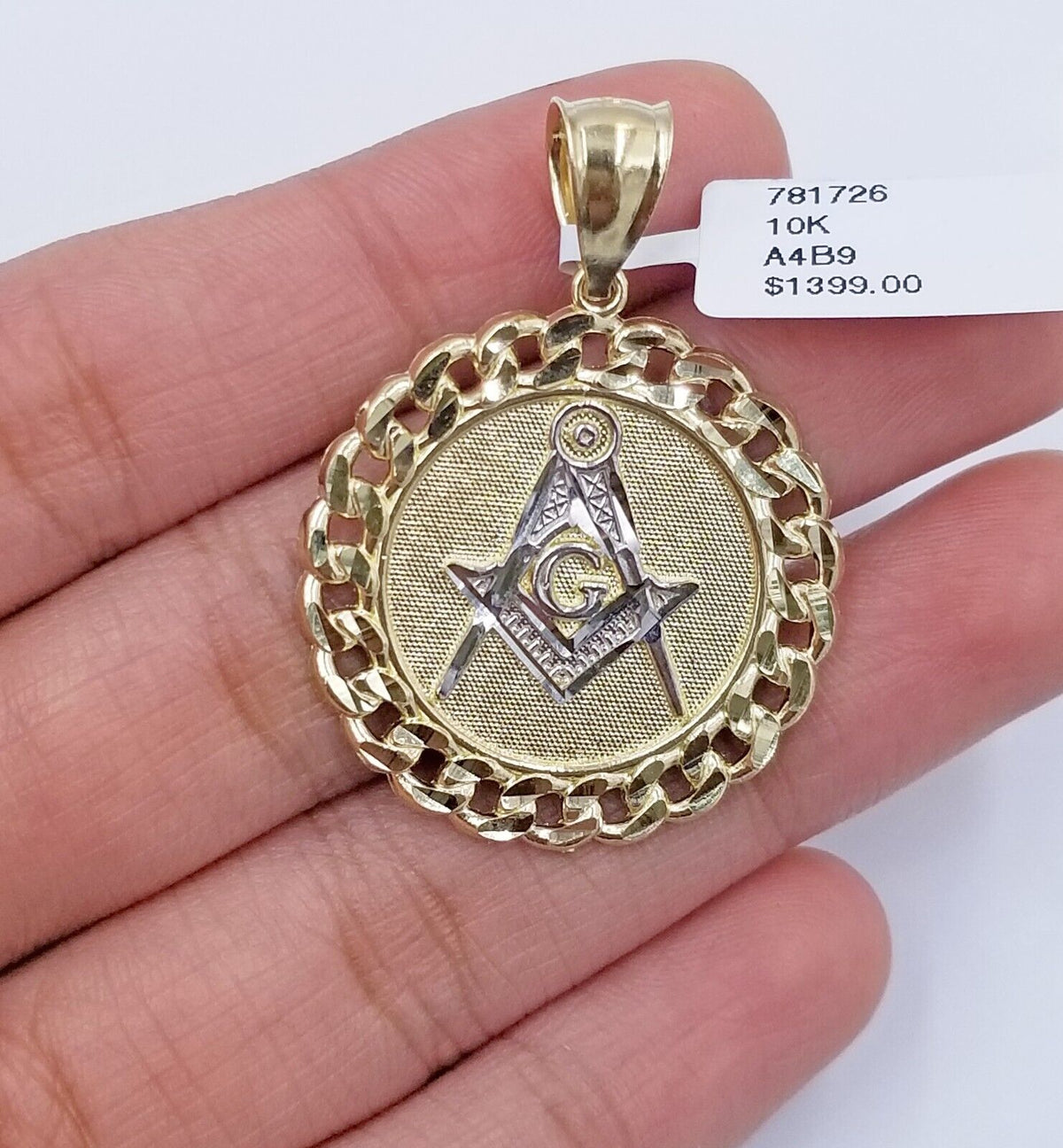 10K Yellow Gold Masonic Circular Pendant Diamond Cut 10Kt Round Gold Charm