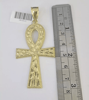10k Yellow Gold Nugget Ankh Charm Pendant 2.75 Inch For Men's REAL 10KT Gold