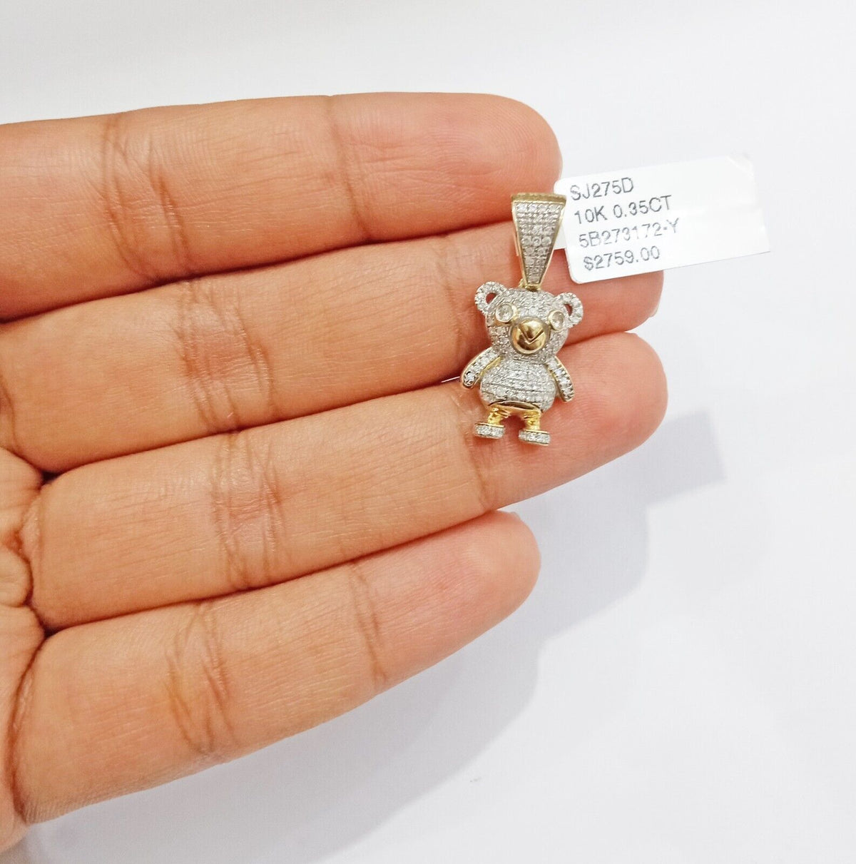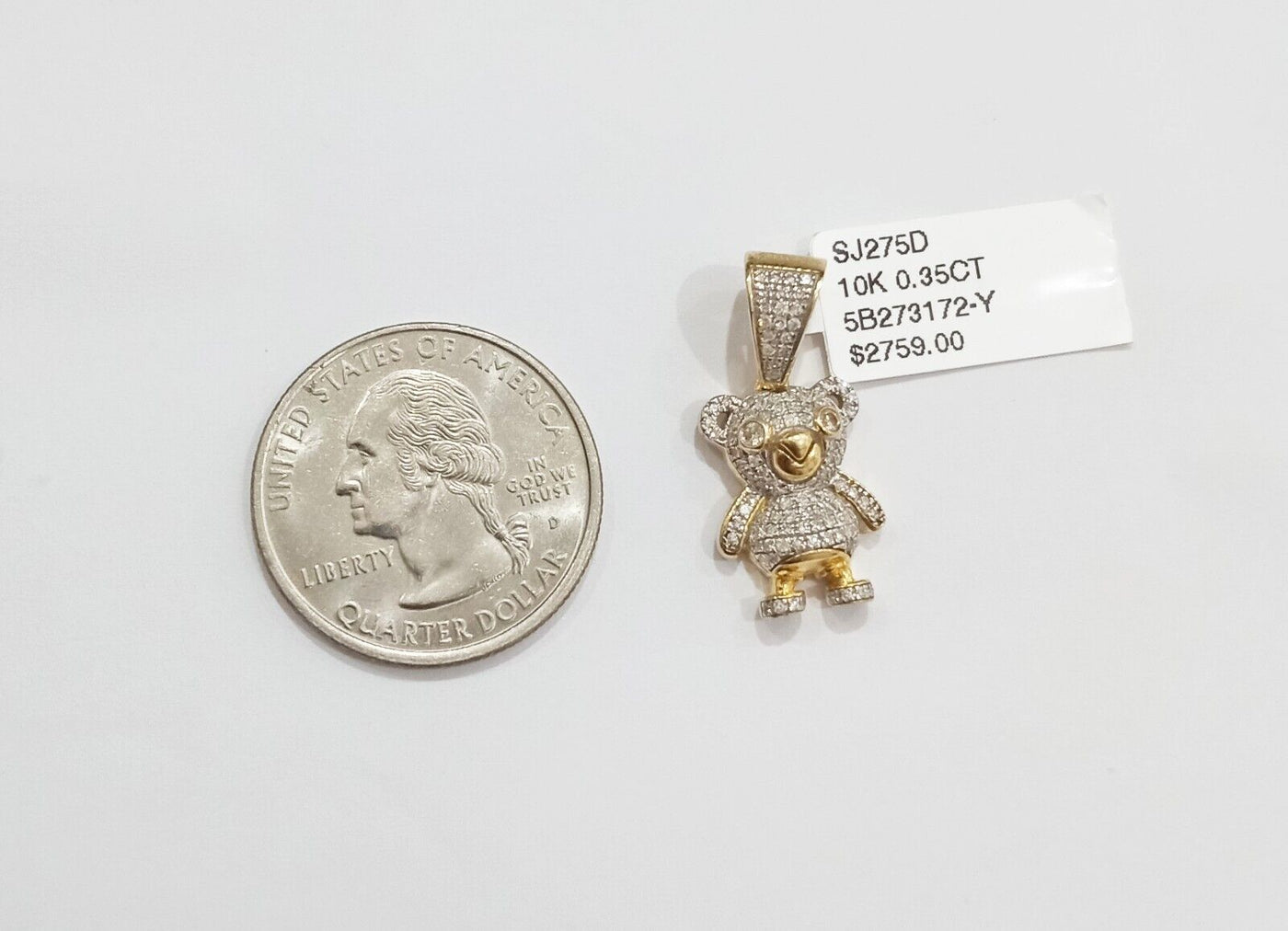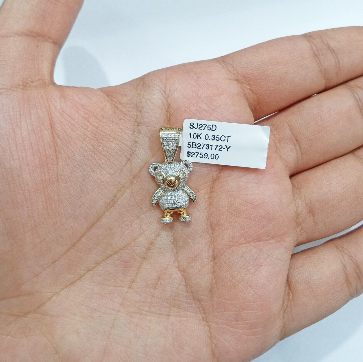 10k Yellow Gold Real Diamond Teddy Bear Charm Pendant