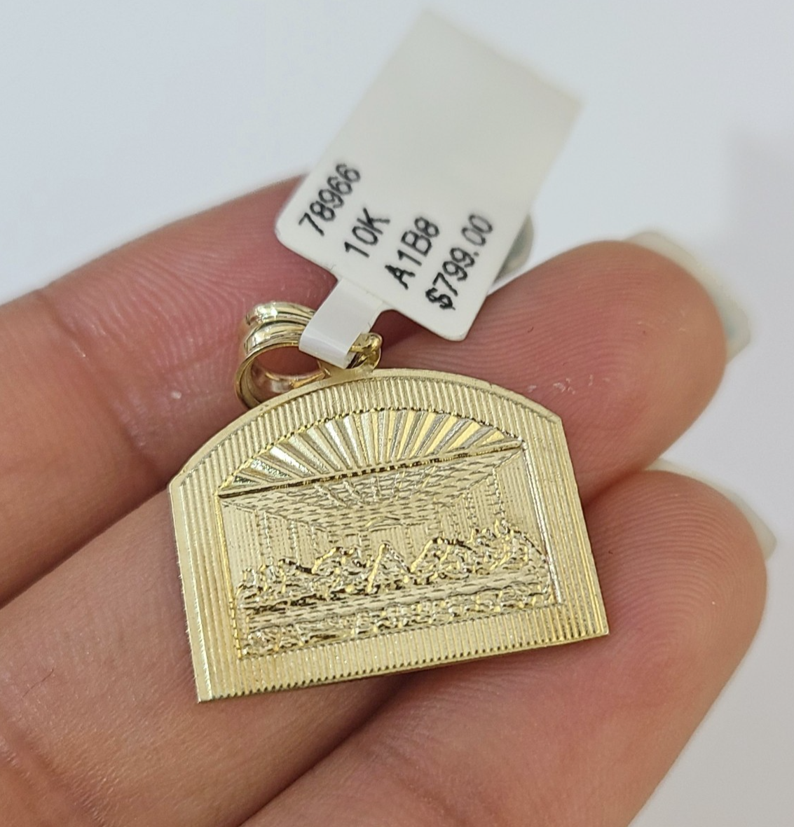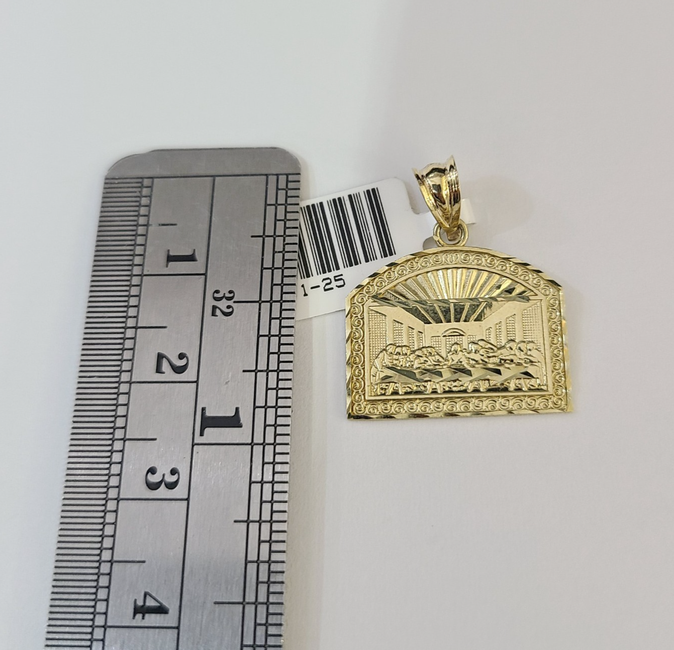 Genuine 10k Yellow Gold Franco Necklace 1mm Chain with Last Supper Charm. The Various length of the Chain are 16"-22" inches. If you are not happy with the way it looks or feels, we do offer 30 - Days FREE Return shipping. Contact us for more information.