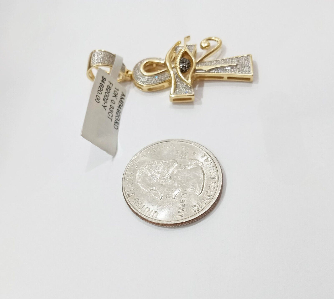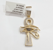 Evil Eye Charm Pendant Real 10K Yellow Gold Genuine Natural Diamond Ankh Cross