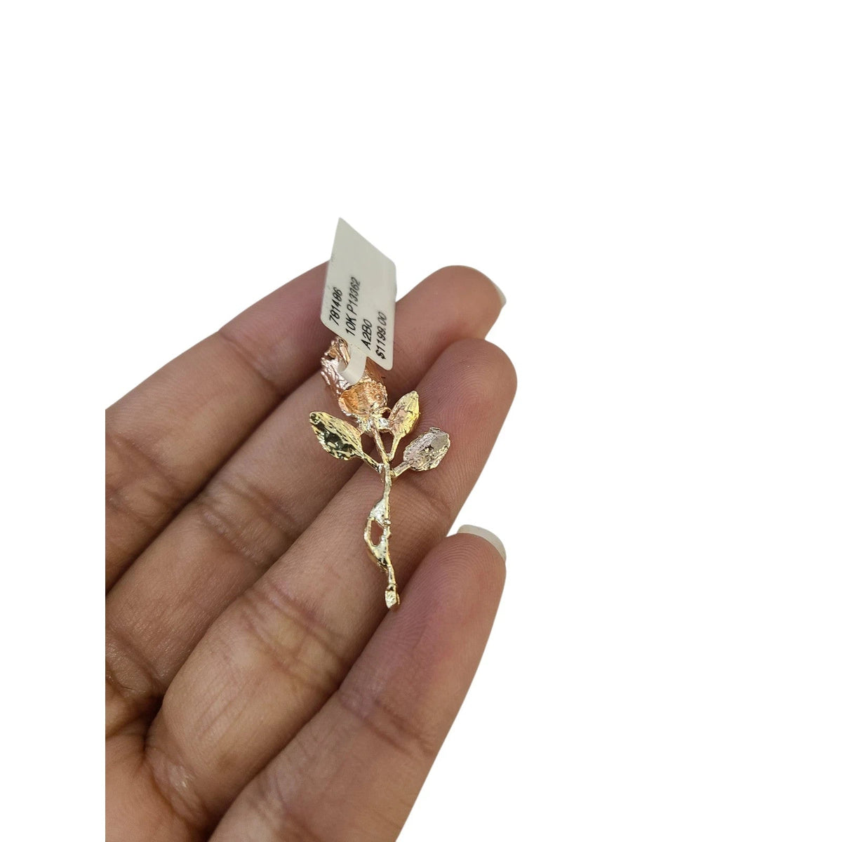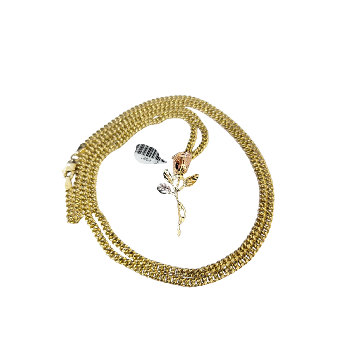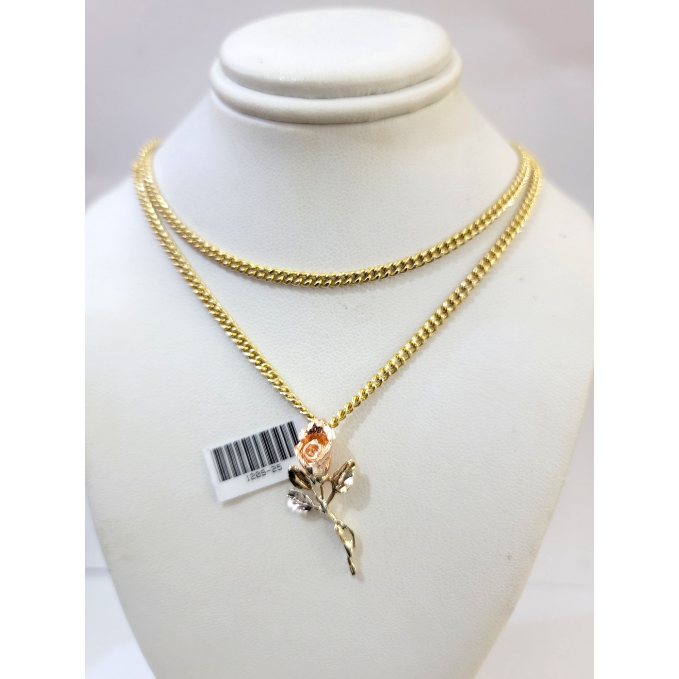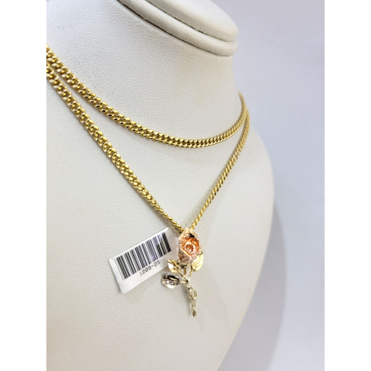 Real 10k Chain Pendant SET Rose Trio Gold Charm Miami Cuban Link Necklace 2.5mm - 16 in Chain & Pendant (Ladies)