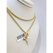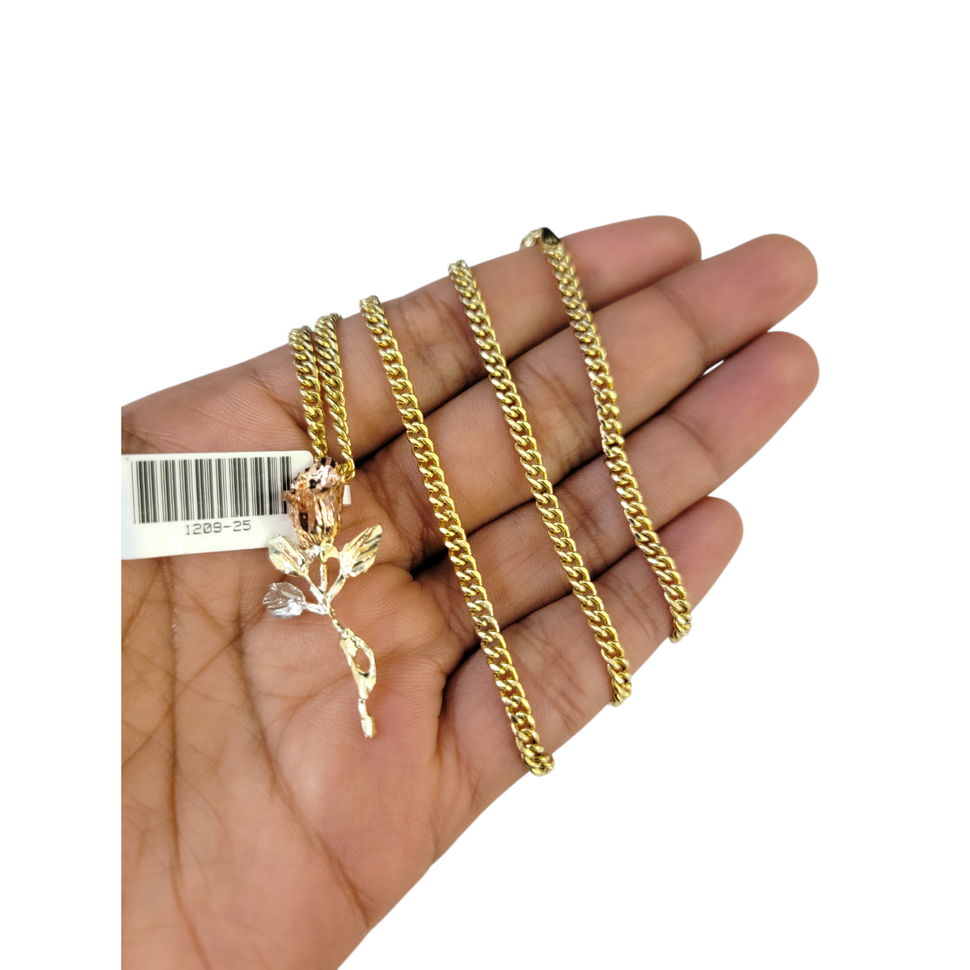 Real 10k Chain Pendant SET Rose Trio Gold Charm Miami Cuban Link Necklace 2.5mm