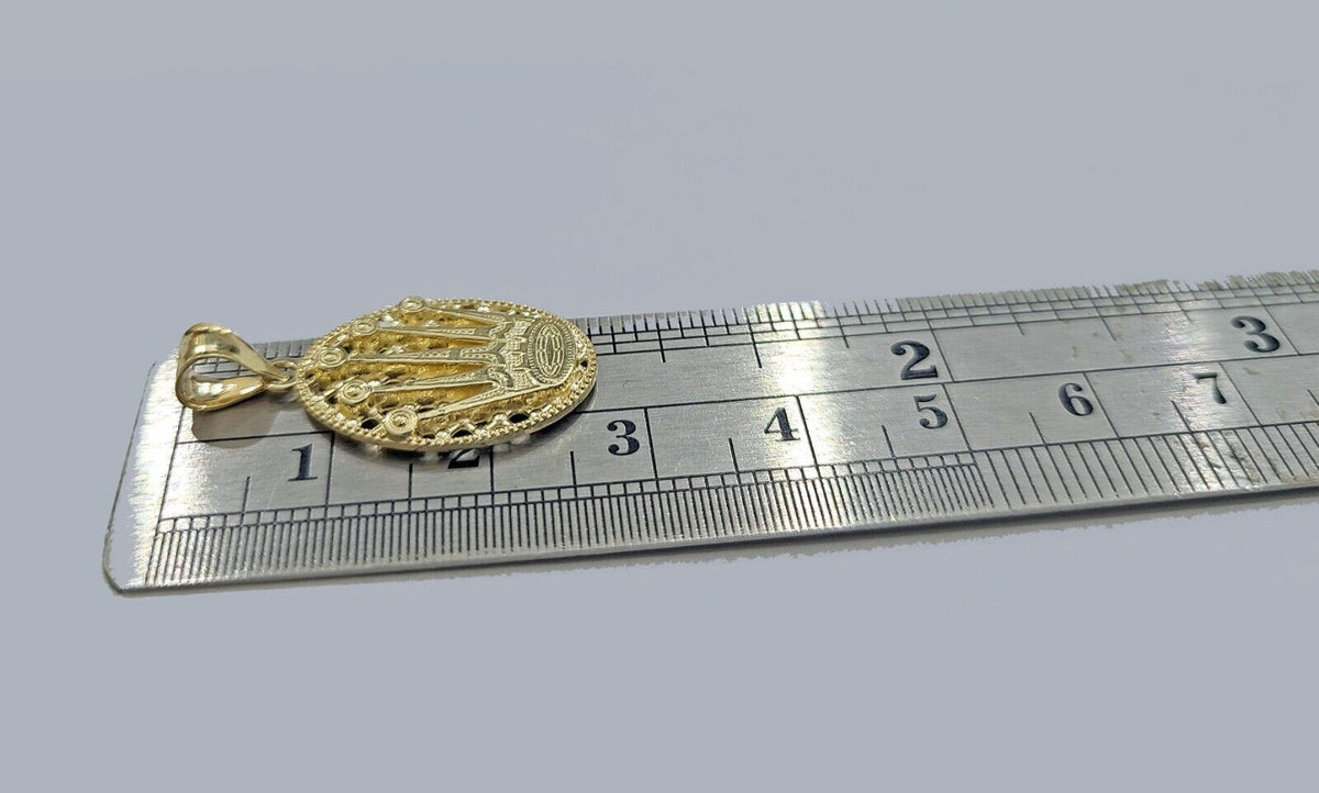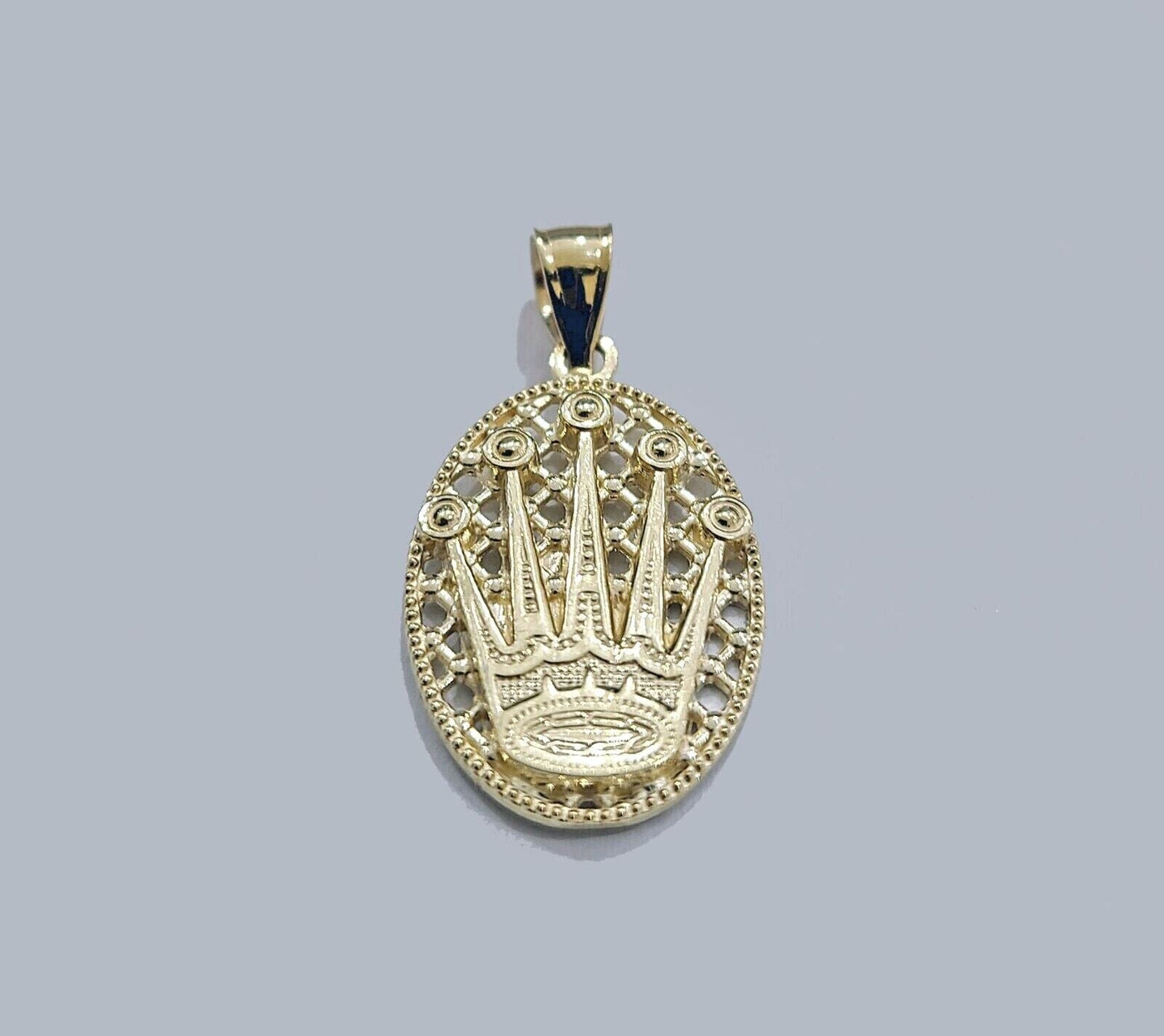 Real 10k Gold Circular Crown Charm Pendant 10kt Yellow Gold Unisex