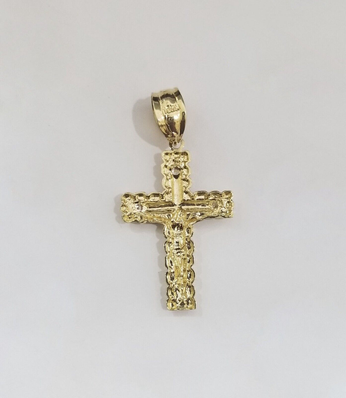 Real 10k Gold Nugget Jesus Crucifix Cross Pendant Charm 10kt Yellow Gold