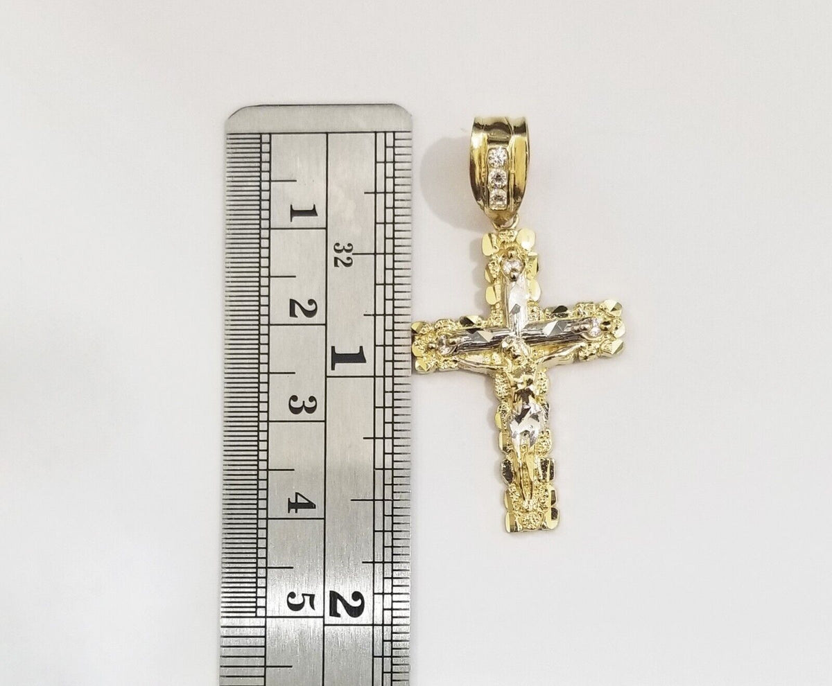Real 10k Gold Nugget Jesus Crucifix Cross Pendant Charm 10kt Yellow Gold