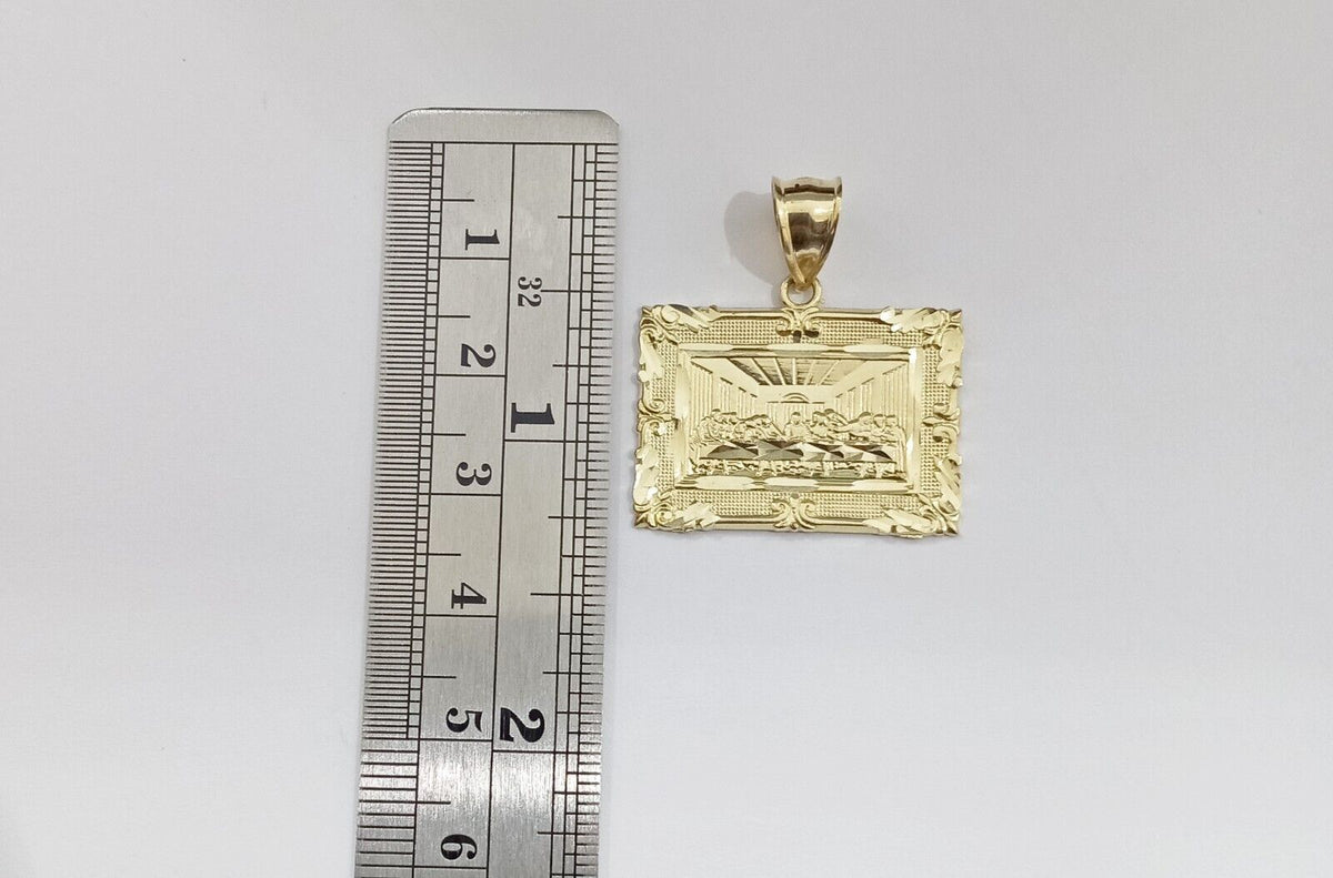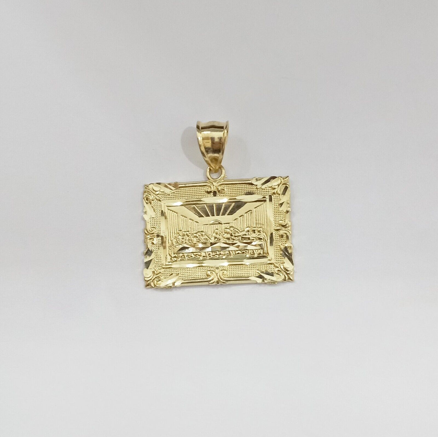 Real 10k Gold Square Pendant Last Supper Charm 10kt Yellow Gold