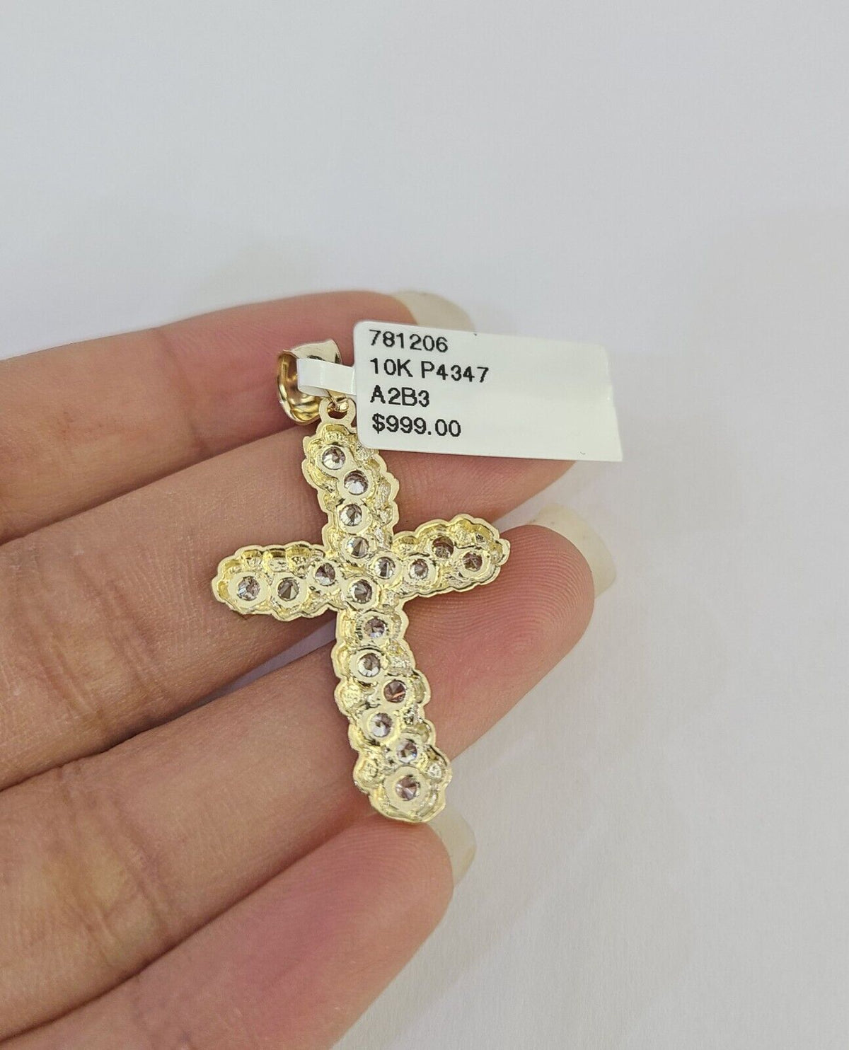 Antique: No Pendant Shape: Cross Occasion: Anniversary Main Stone Color: White/Colorless Metal: Yellow Gold Necklace Length: 1.5 in Main Stone:...