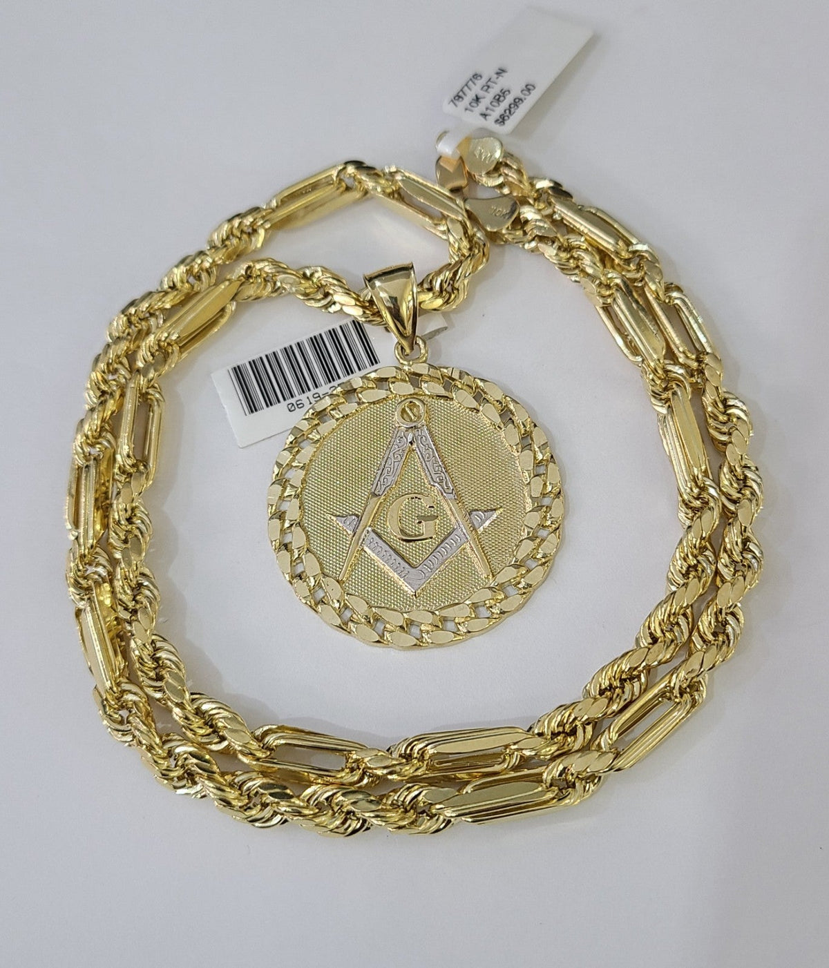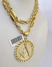 Genuine 10k Yellow Gold Milano Chain 18-28 inches 4mm Necklace with Masonic design as a SET. The Various length of the Chain are 18-28 inches. If you are not happy with the way it looks or feels, we do offer 30 - Days FREE Return shipping. Contact us for more information.