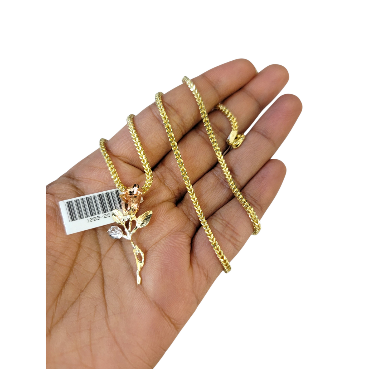 Real 10k Yellow Gold Chain Pendant SET Rose Charm Franco Necklace 2.5mm 16"-26"