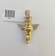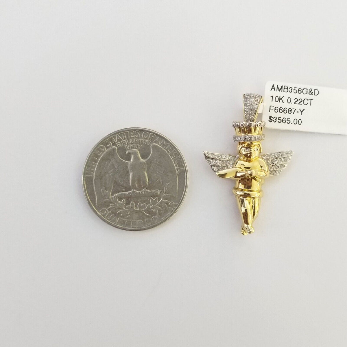 Real 10k Yellow Gold Angel Praying Hand Real Diamond Pendant Mini Angel Charm