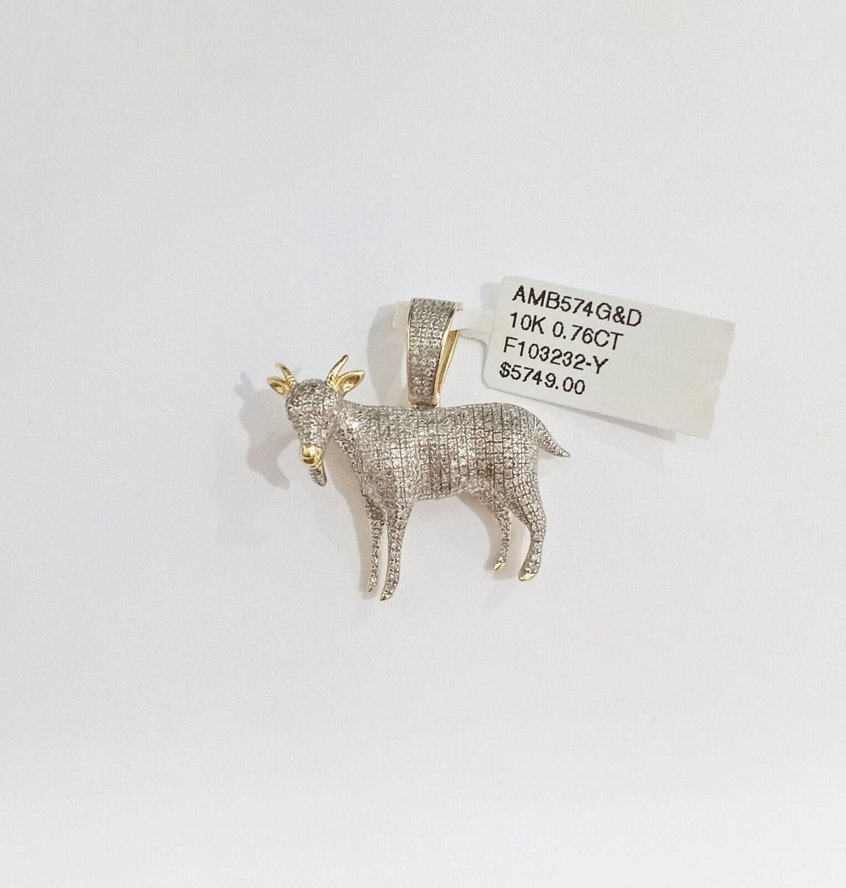 Real 10k Yellow Gold Diamond Goat Charm & Natural Diamonds 0.75 CT GOAT Pendant