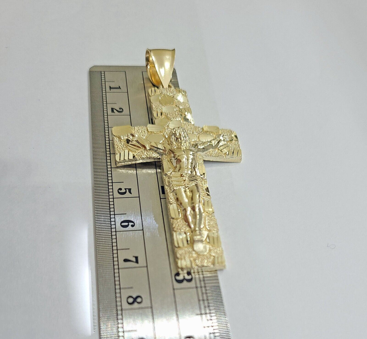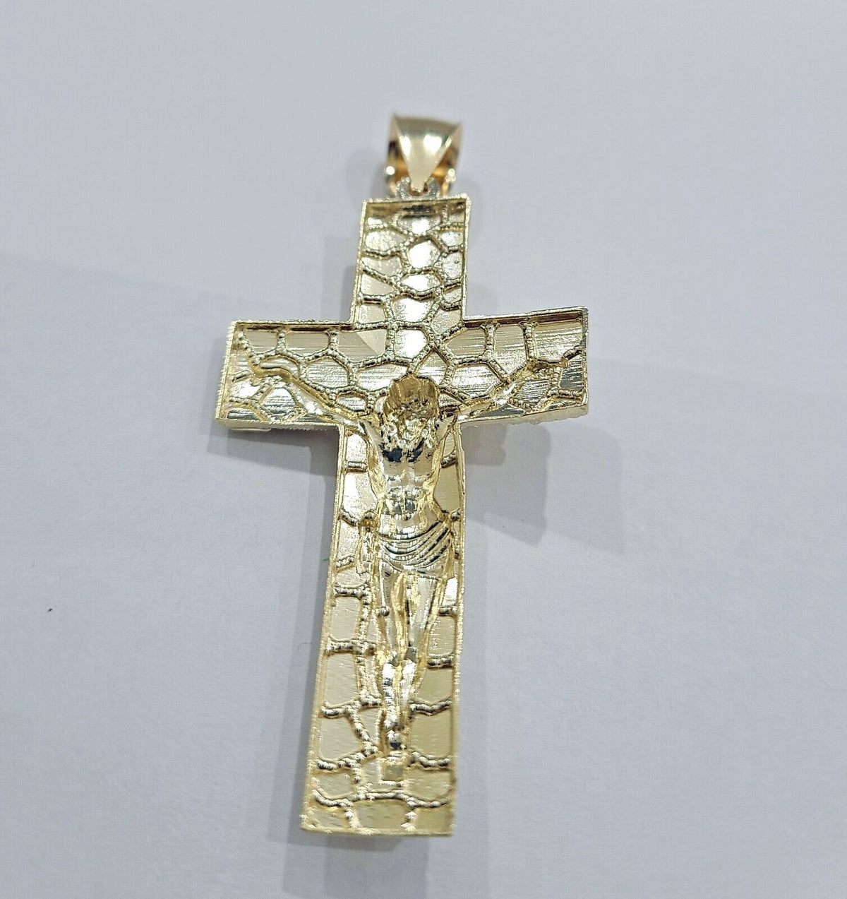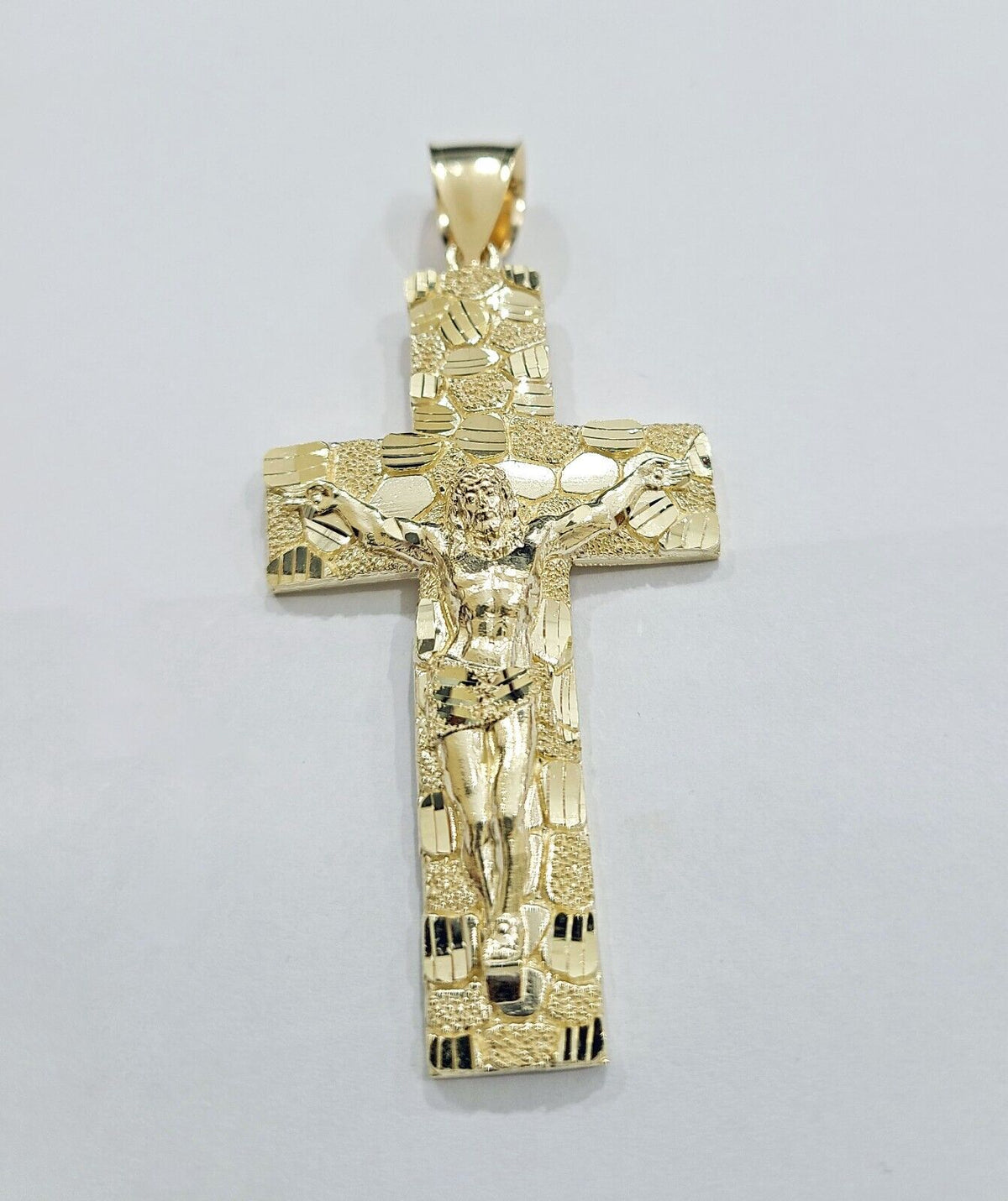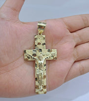 Real 10k Yellow Gold Jesus Cross Charm Pendant 2.5'' inches