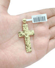 Real 10k Yellow Gold Jesus Crucifix Nugget Cross Charm Pendant 1.8'' inches 10kt