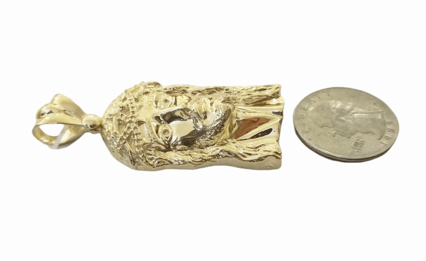 Is Presenting You with This Absolutely Stunning Real 10k Jesus Head Charm 2" Inch Pendent.��These Beautiful pendant will not tarnish, discolor, or fade because they are Pure 10K Gold. Please feel free to contact us if you have any queries regarding the item.��