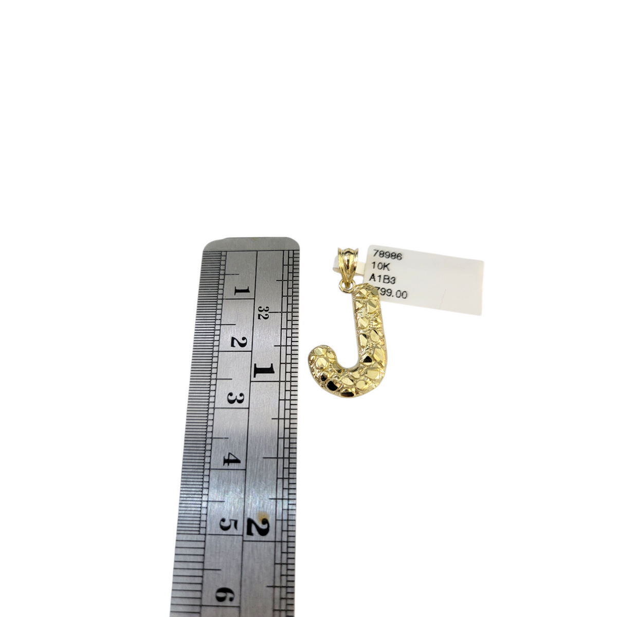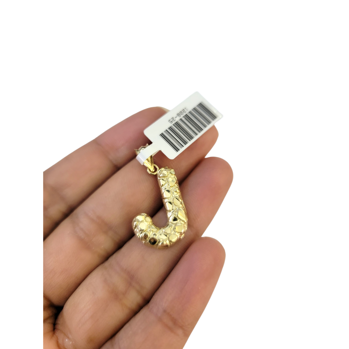 Real 10k Yellow Gold Nugget J Initial Alphabet Charm Pendant 10KT