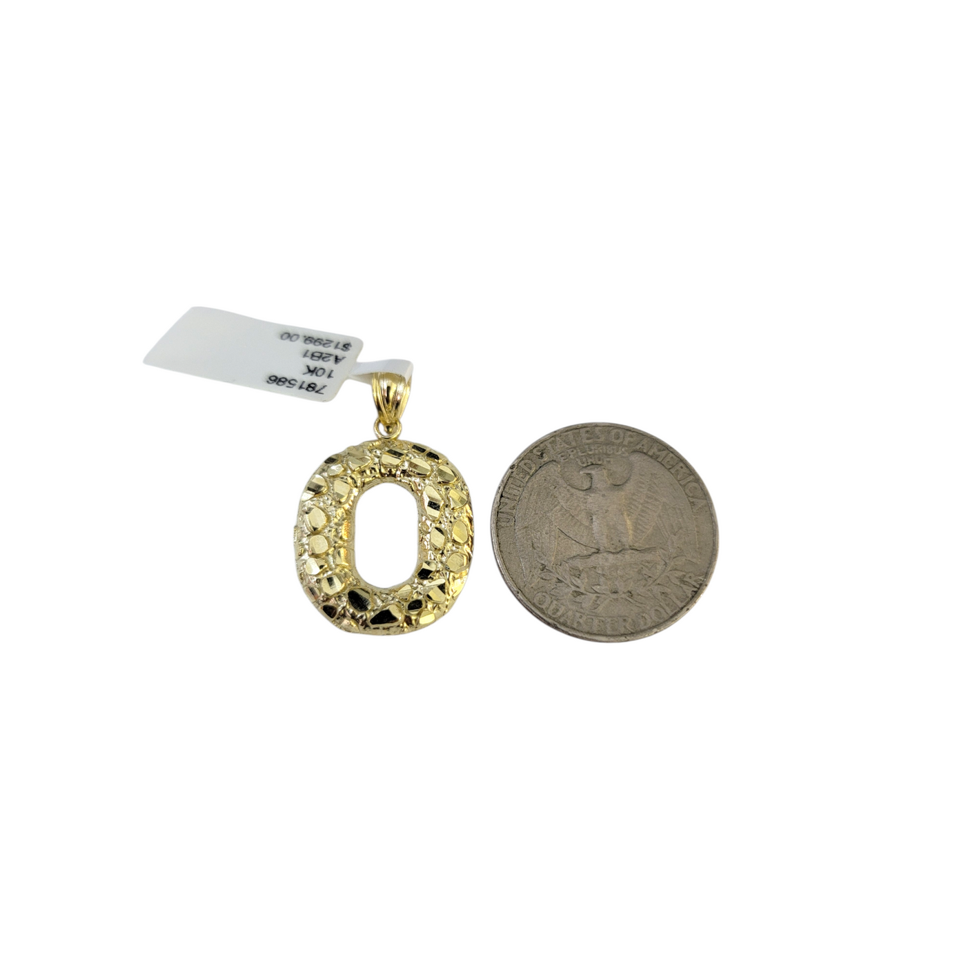 Real 10k Yellow Gold Charm Pendant O Nugget Initial Alphabet