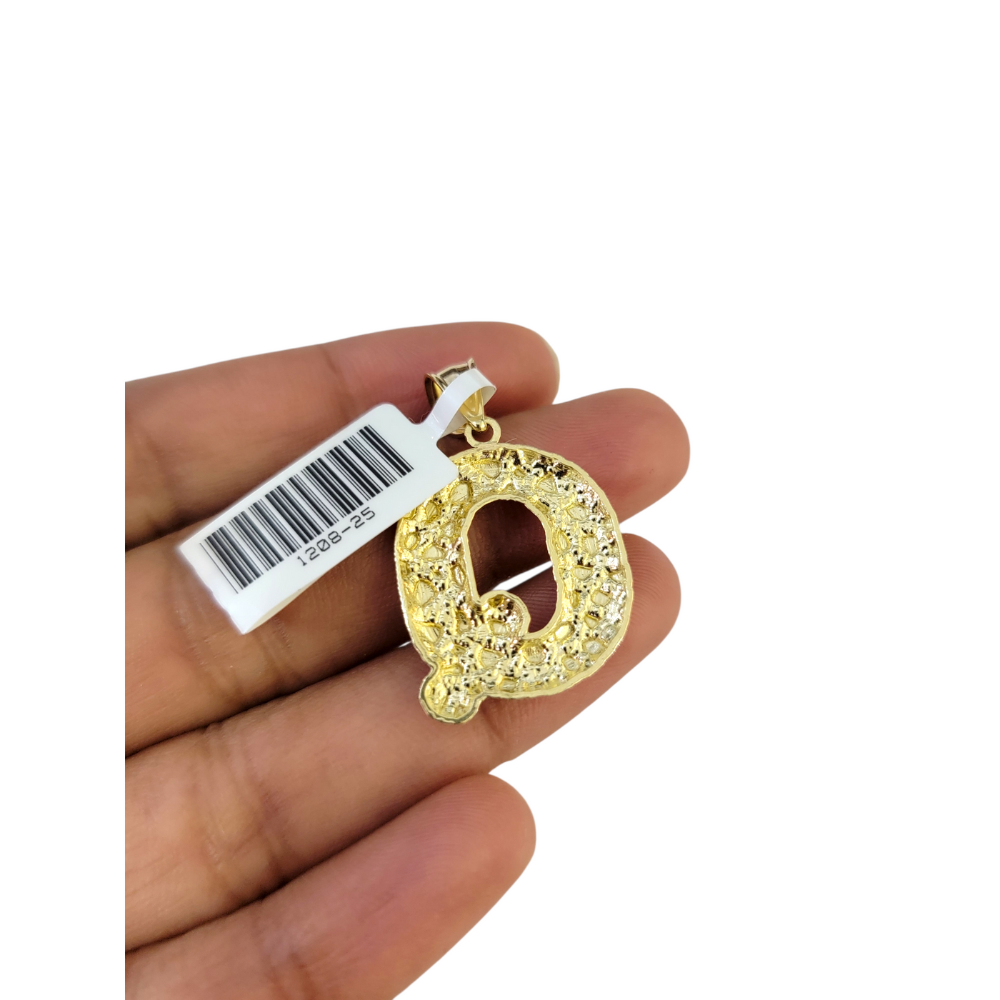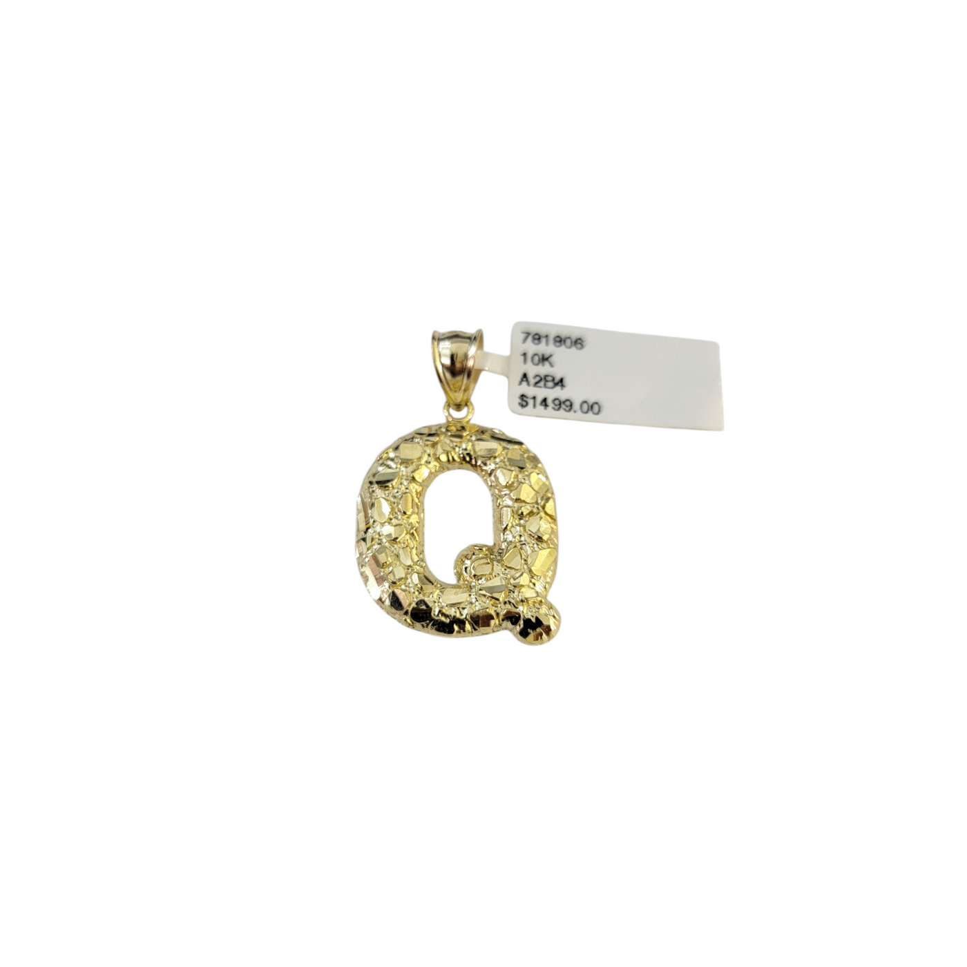 Real 10k Yellow Gold Charm Pendant Q Nugget Initial Alphabet