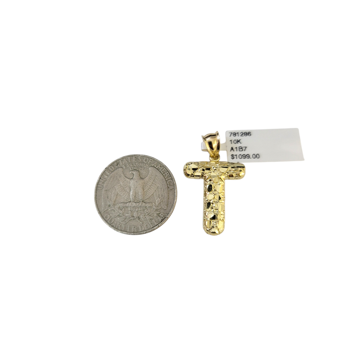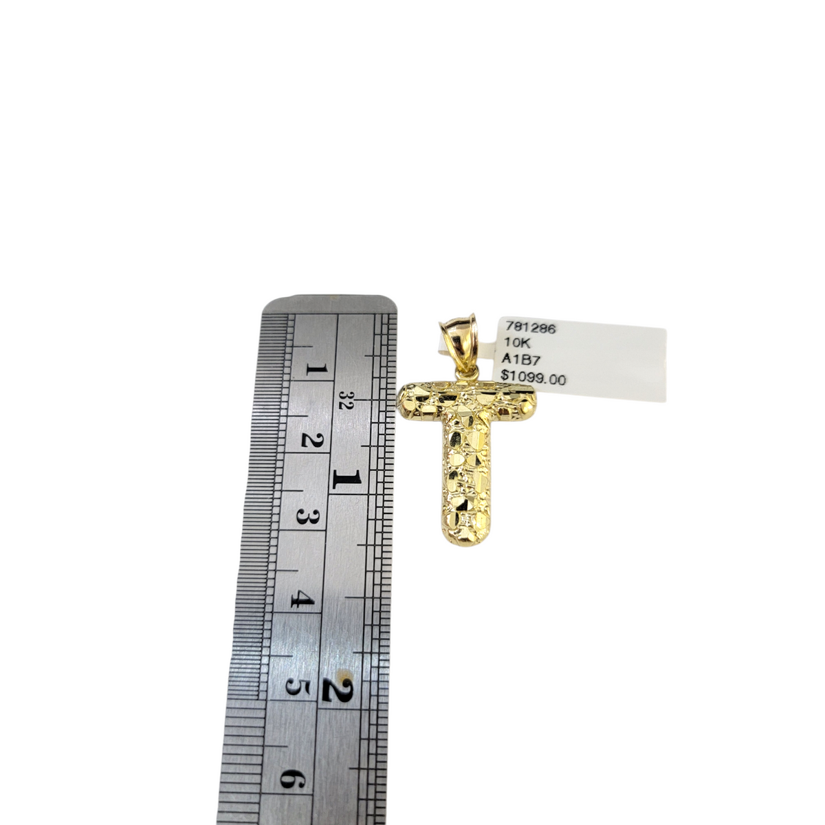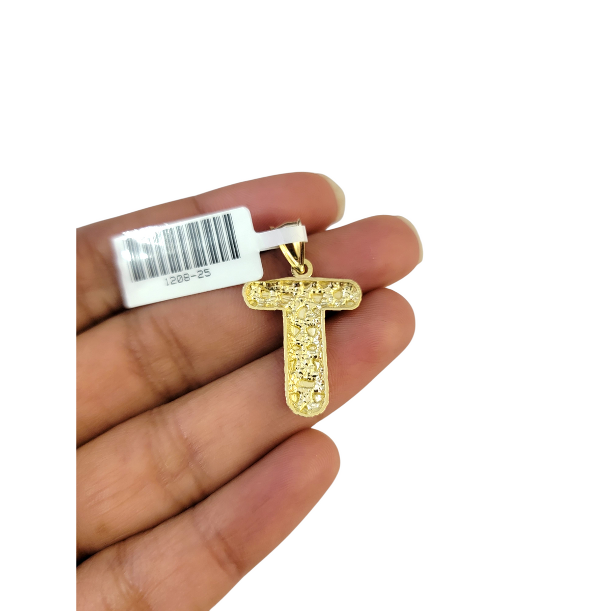 Real 10k Yellow Gold Charm Pendant T Nugget Initial Alphabet