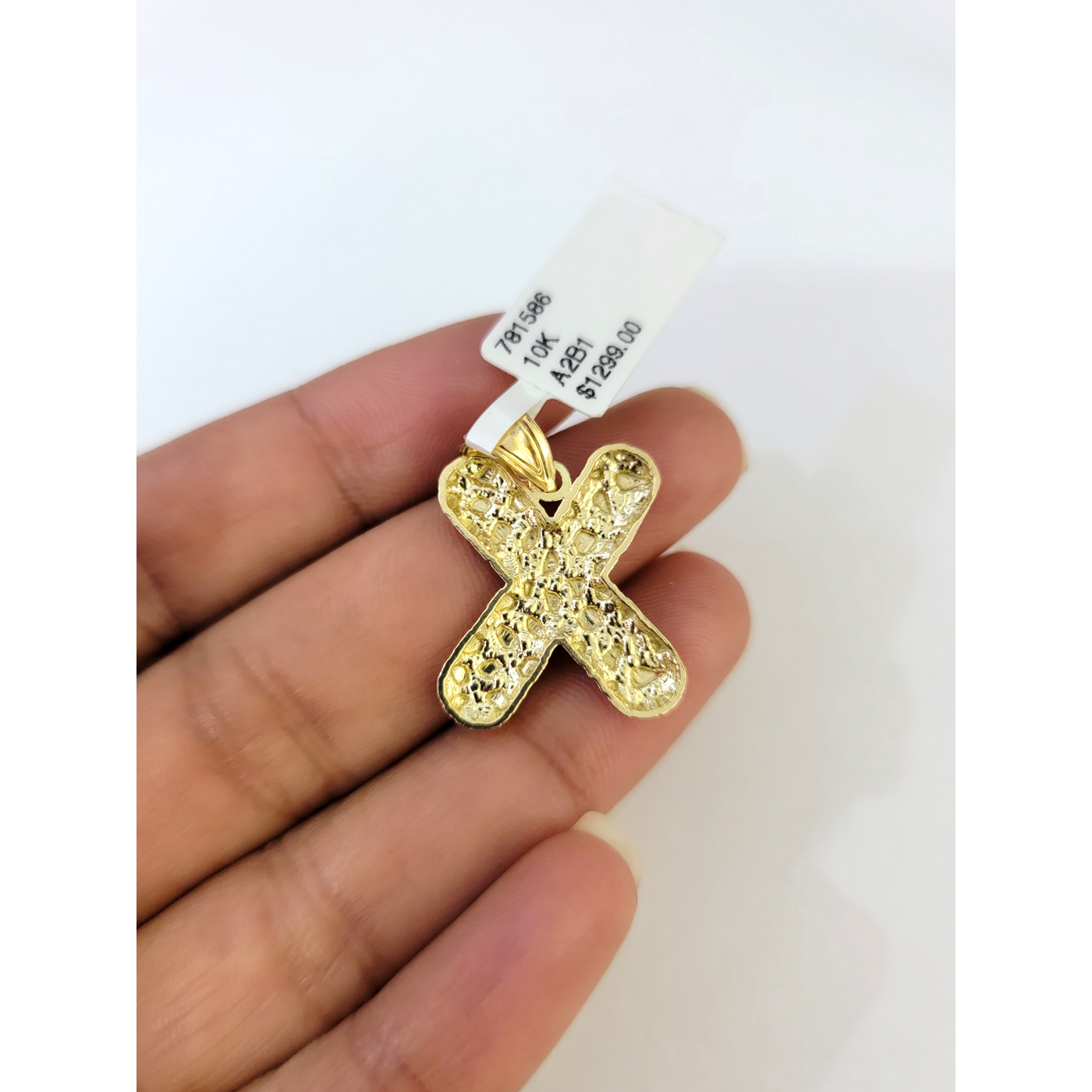 Real 10k Yellow Gold Charm Pendant X Nugget Initial Alphabet