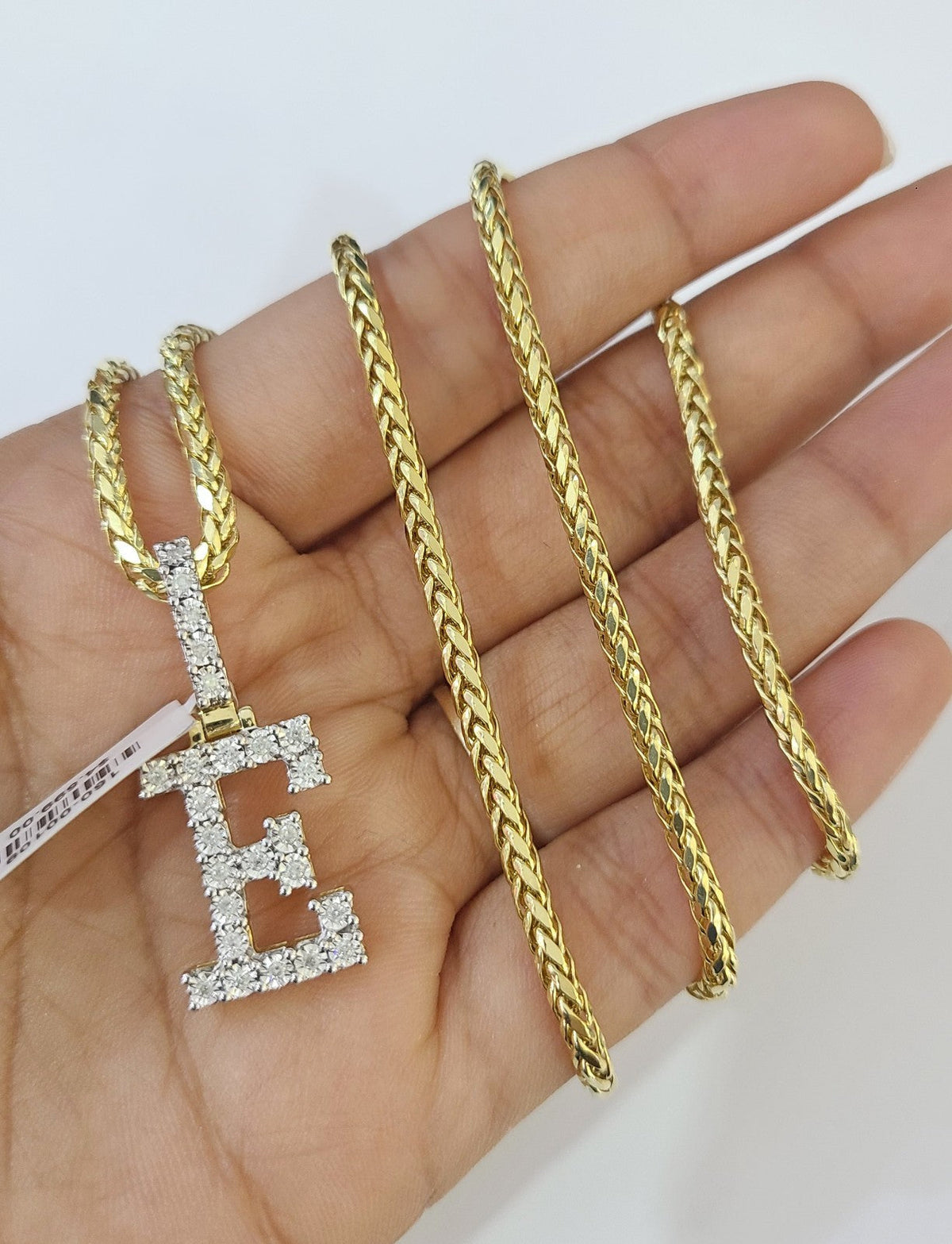 Is Presenting You with This Absolutely Stunning Real 10k Yellow Gold Palm Chain 3mm, 20"-30" with E Diamond Initial Charm, Lobster Lock. The links are 10K GOLD and are very strong. Please feel free to contact us if you have any queries regarding the item.