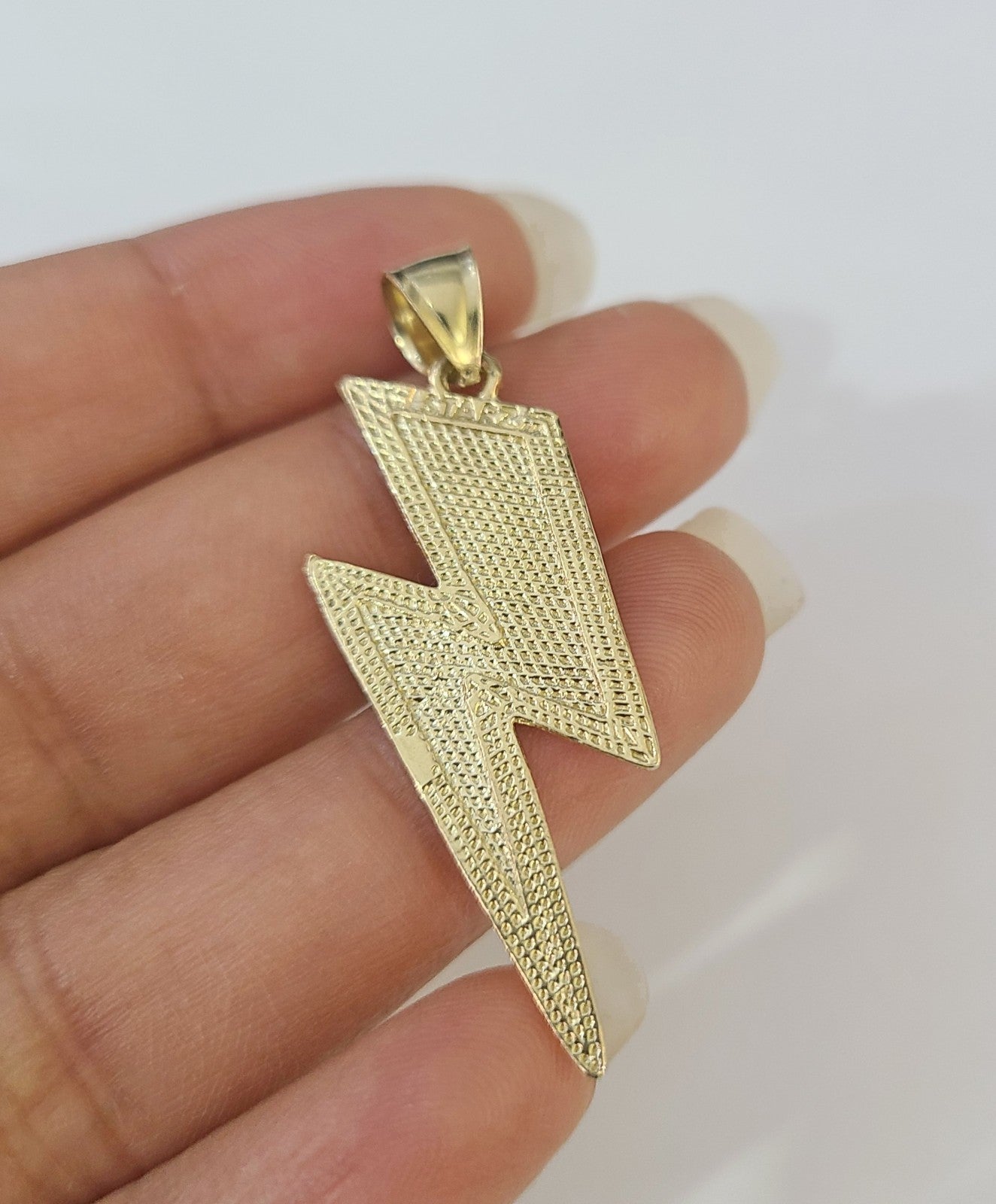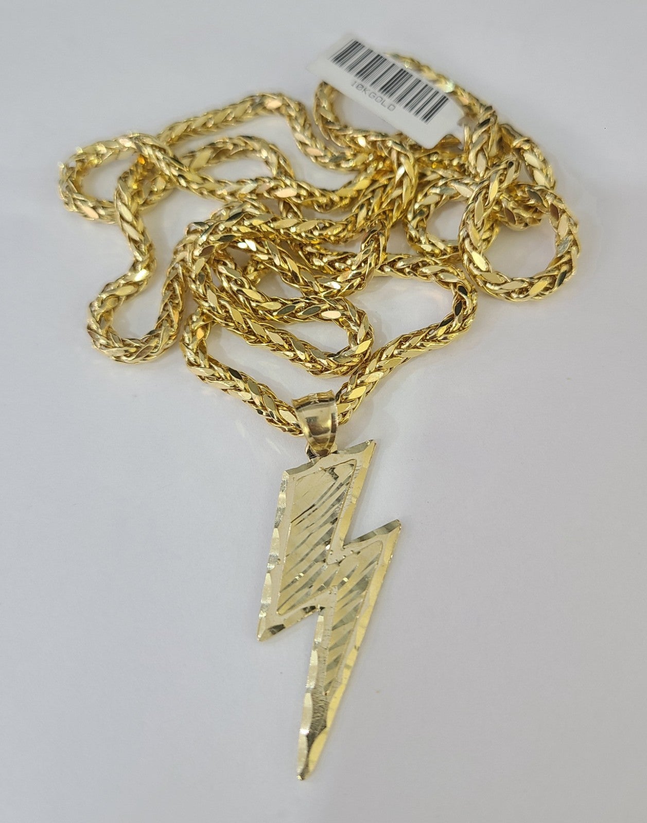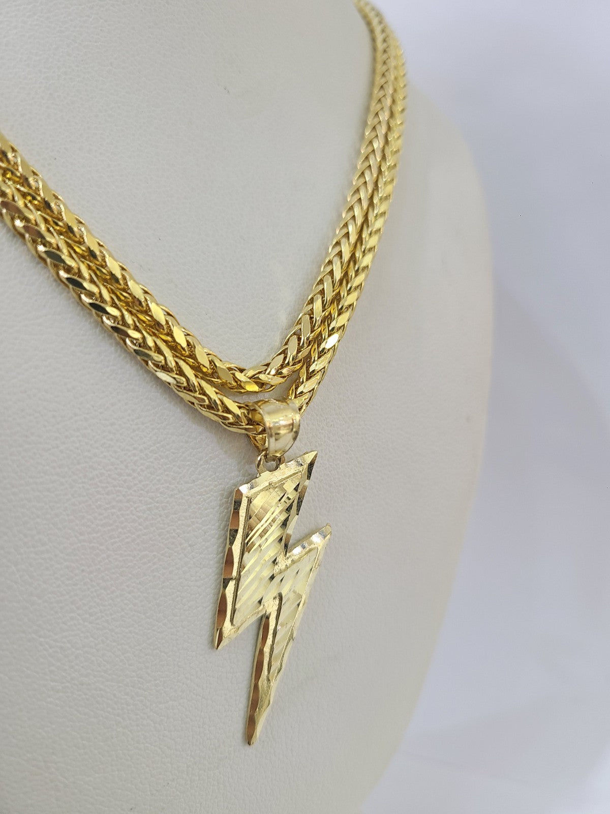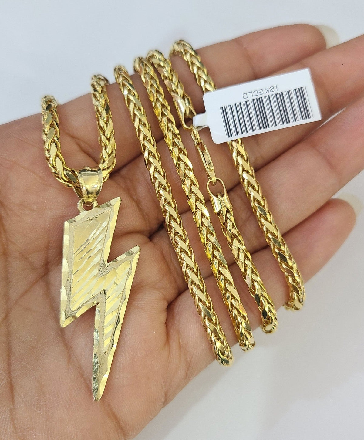 Is Presenting You with This Absolutely Stunning Real 10k Yellow Gold Palm Chain 3mm, 20"-30" with Lightning Bolt Charm, Lobster Lock. The links are 10K GOLD and are very strong. Please feel free to contact us if you have any queries regarding the item.