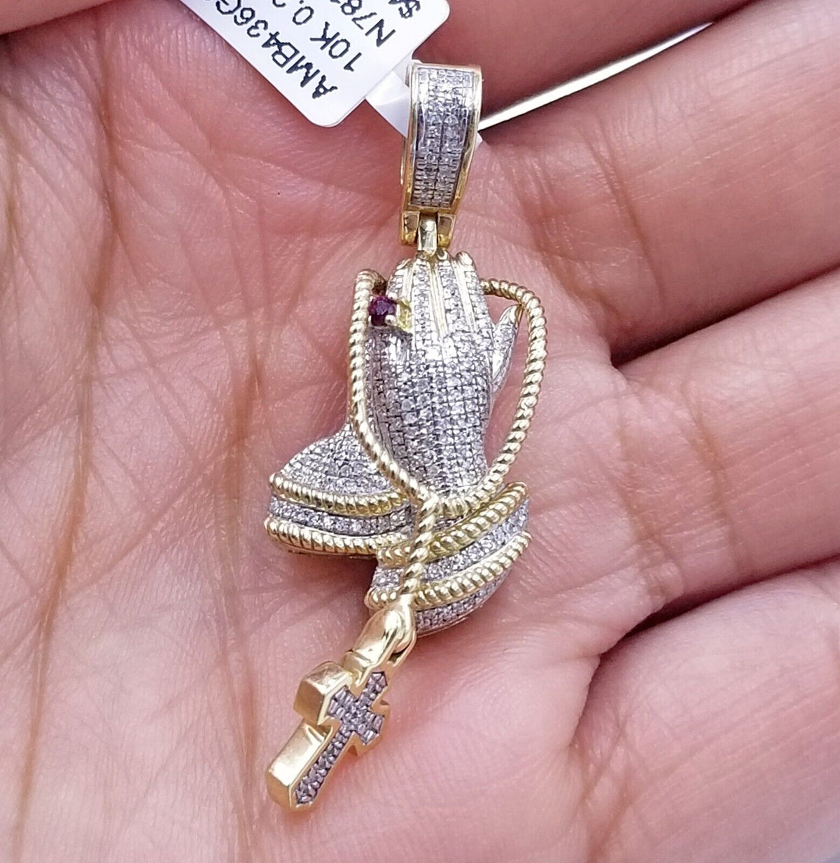 Is Presenting You with This Absolutely Stunning Real 10k Gold Praying Hand With Cross Pendant Real Diamond Charm With 0.23CT diamond. These Beautiful pendants will not tarnish, discolor, or fade because they are Pure 10K Gold. Please feel free to contact us if you have any queries regarding the item.