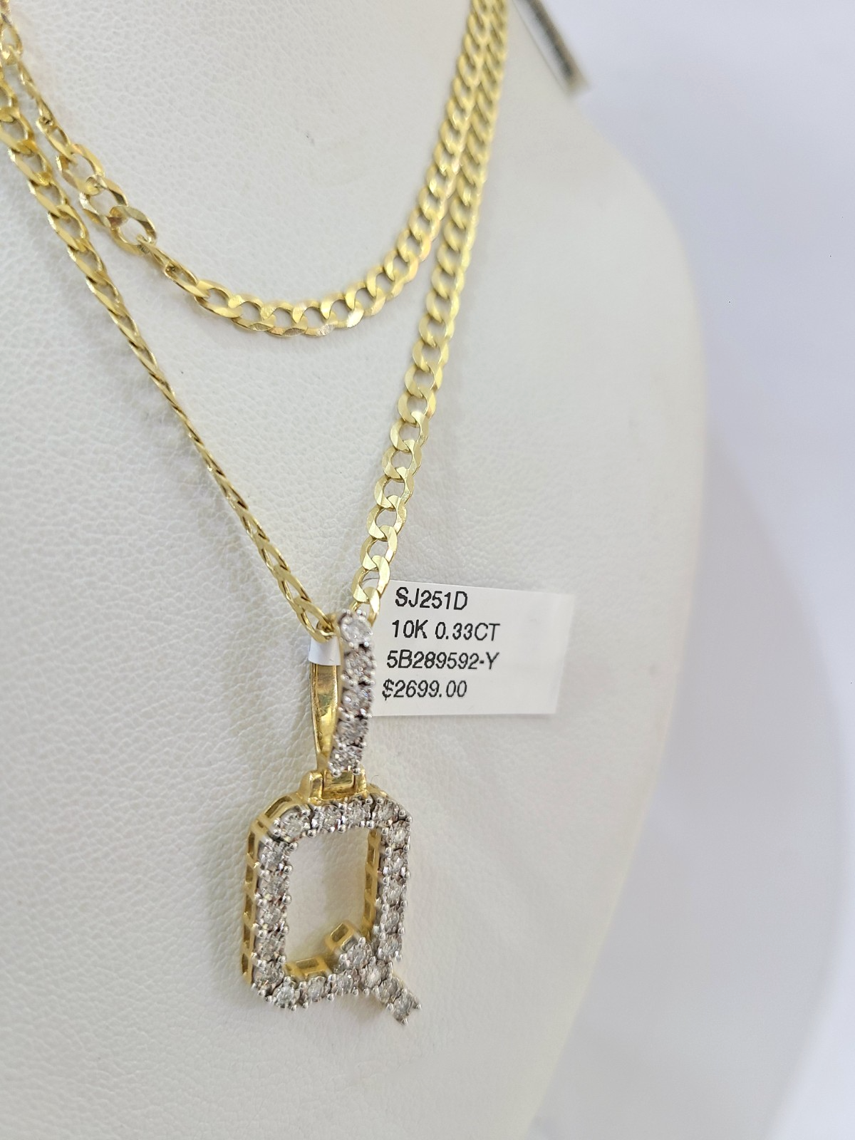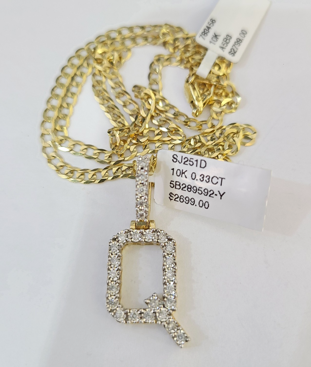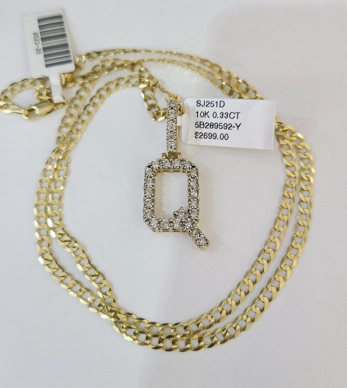 Q Diamond Initial Pendant. The Various lengths of the Chain are 20"-30". If you are not happy with the way it looks or feels, we do offer 30 - Days FREE Return shipping. Contact us for more information.