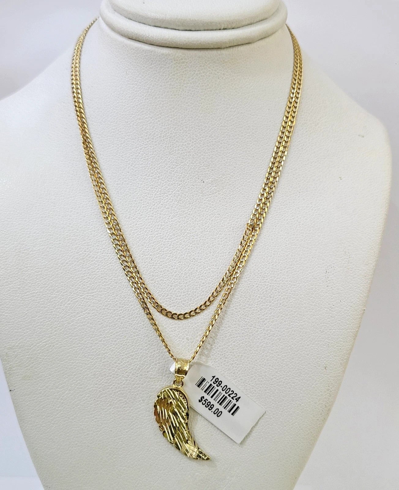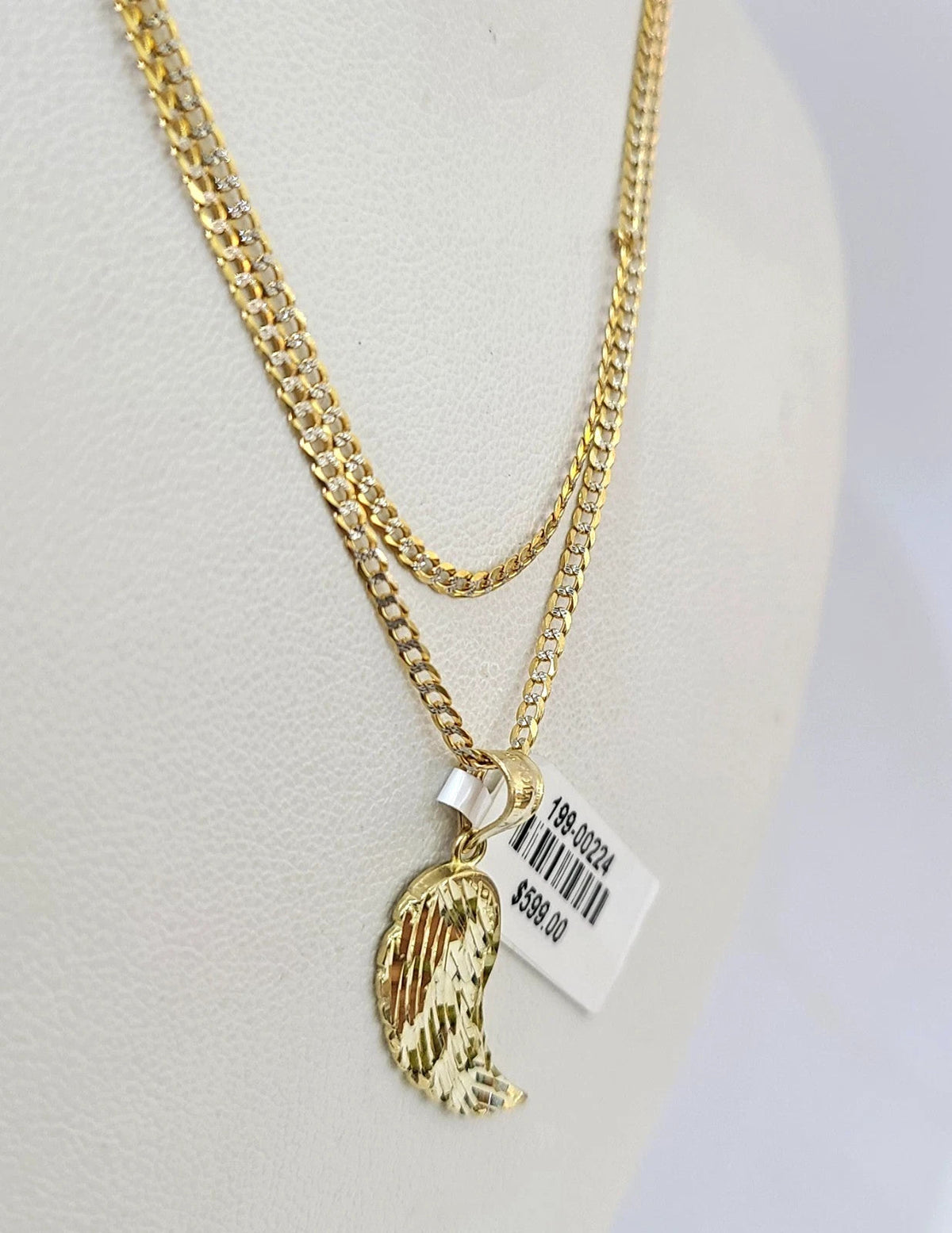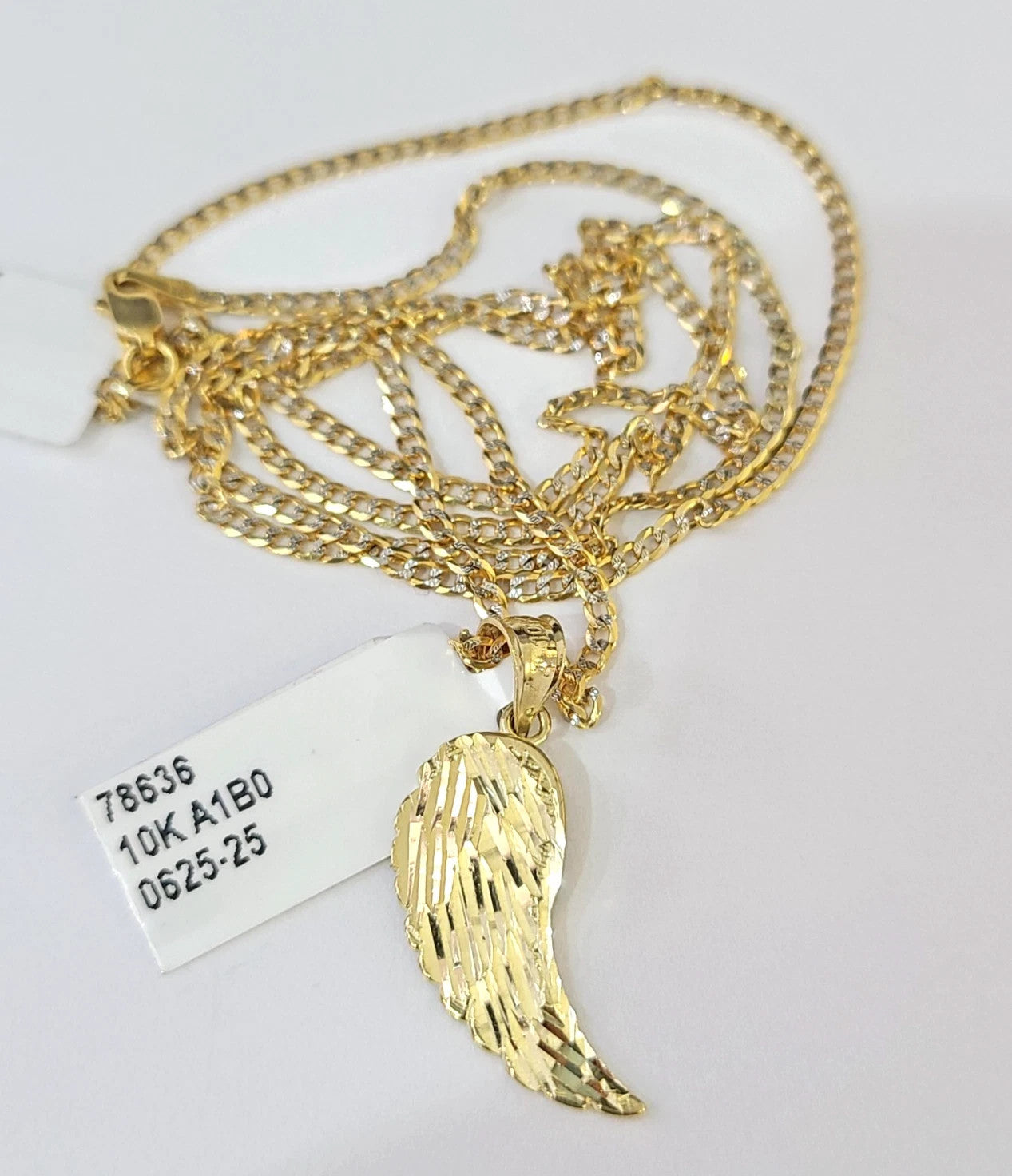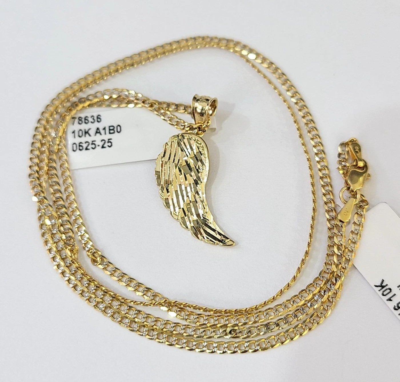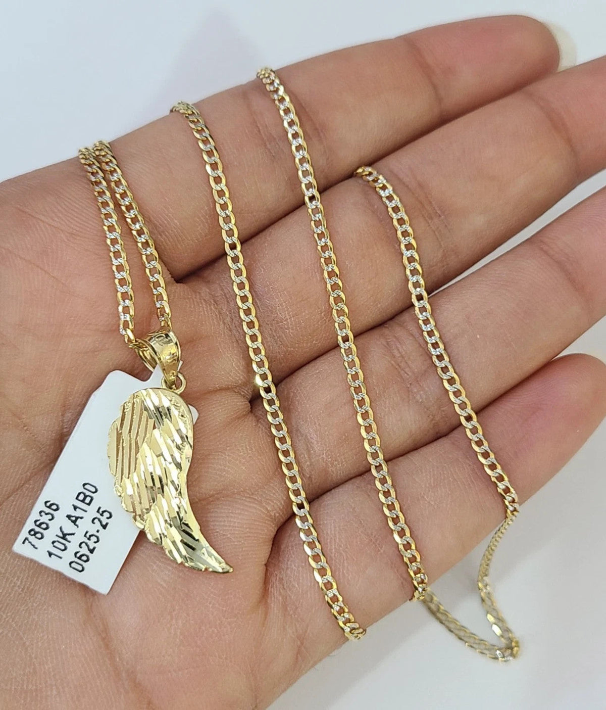 Is Presenting You with This Absolutely Stunning Real 10k Yellow Gold Cuban Curb Chain Diamond Cut 2mm, 18"-24" with Angel Wing Charm, Lobster Lock. The links are 10K GOLD and are very strong. Please feel free to contact us if you have any queries regarding the item. A3B8-24" A1B0