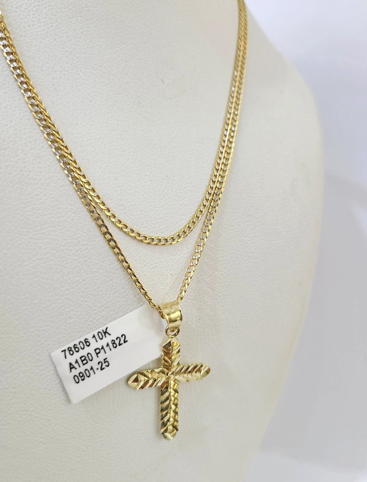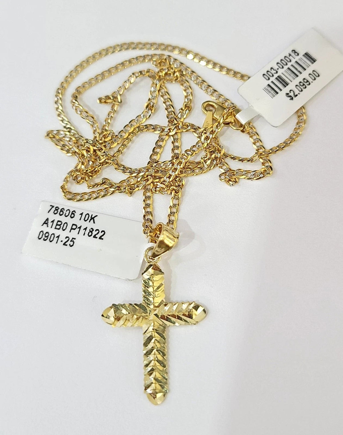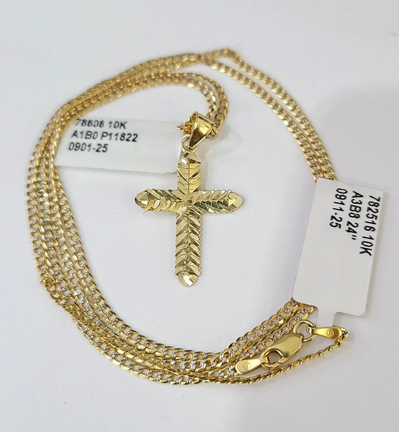 Is Presenting You with This Absolutely Stunning Real 10k Yellow Gold Cuban Curb Chain Diamond Cut 2mm, 18"-24" with Jesus Cross Charm, Lobster Lock. The links are 10K GOLD and are very strong. Please feel free to contact us if you have any queries regarding the item. A3B8-24" A1B0 P11822