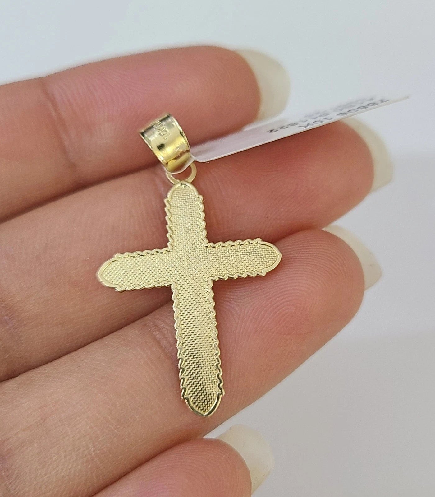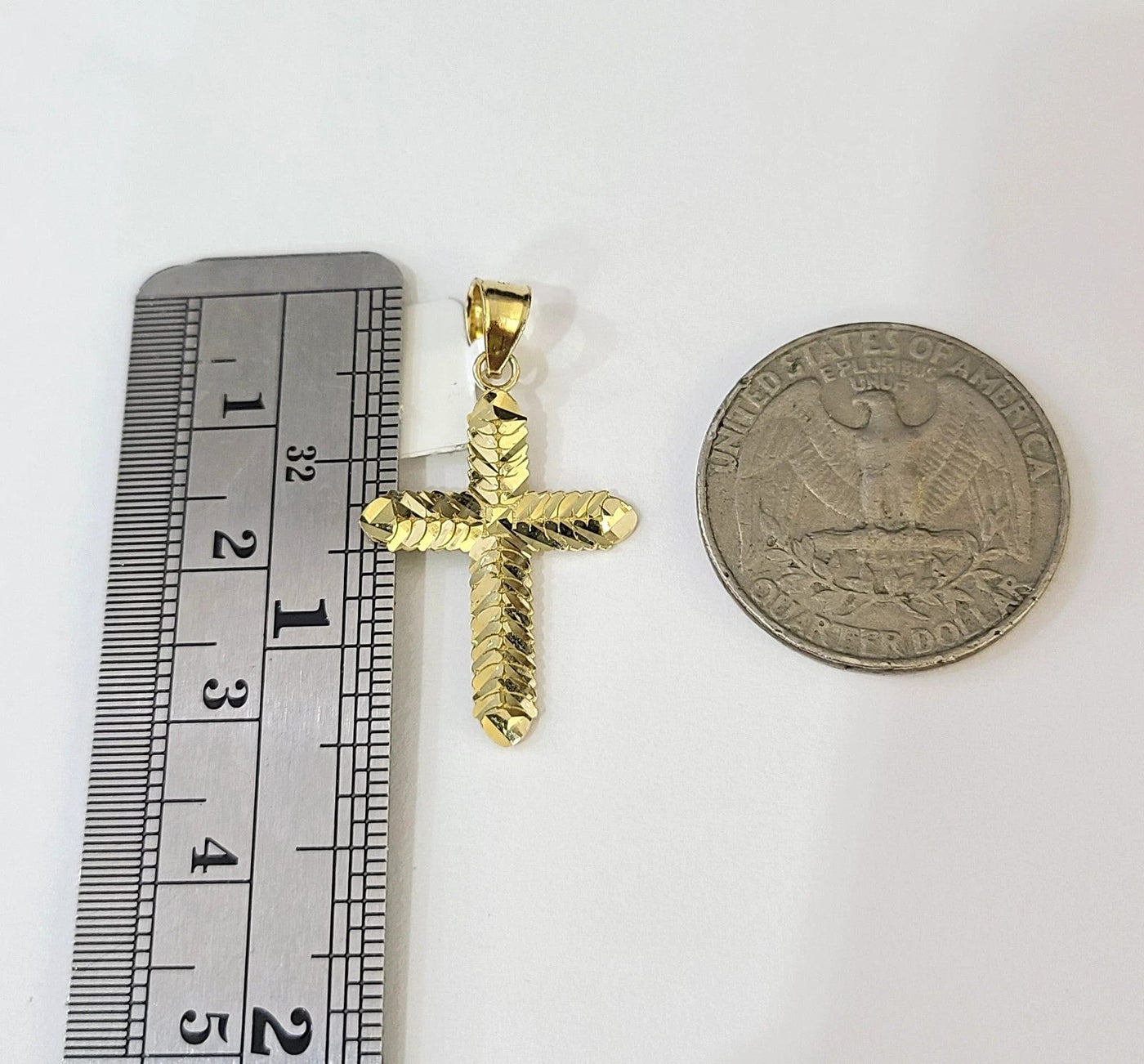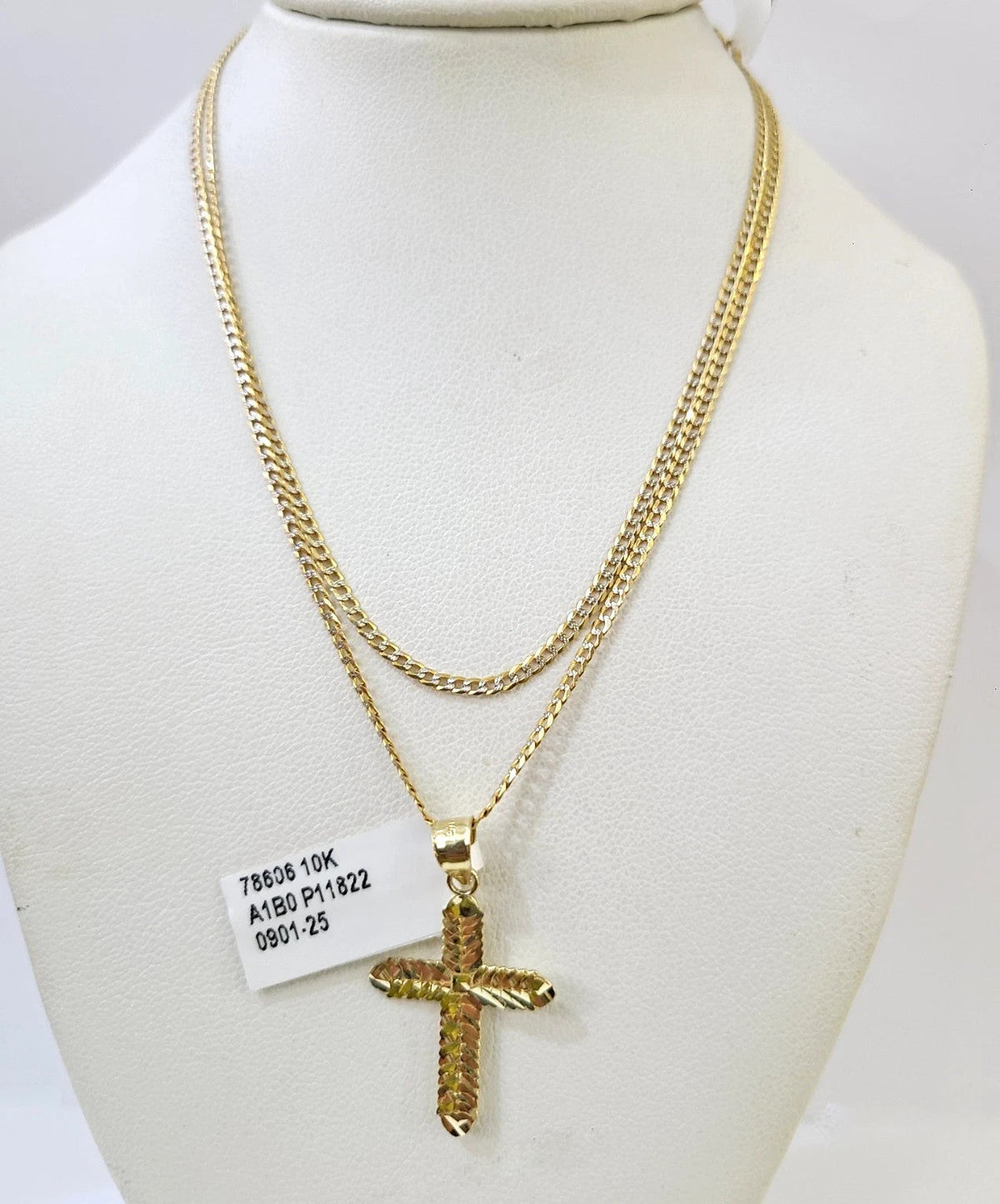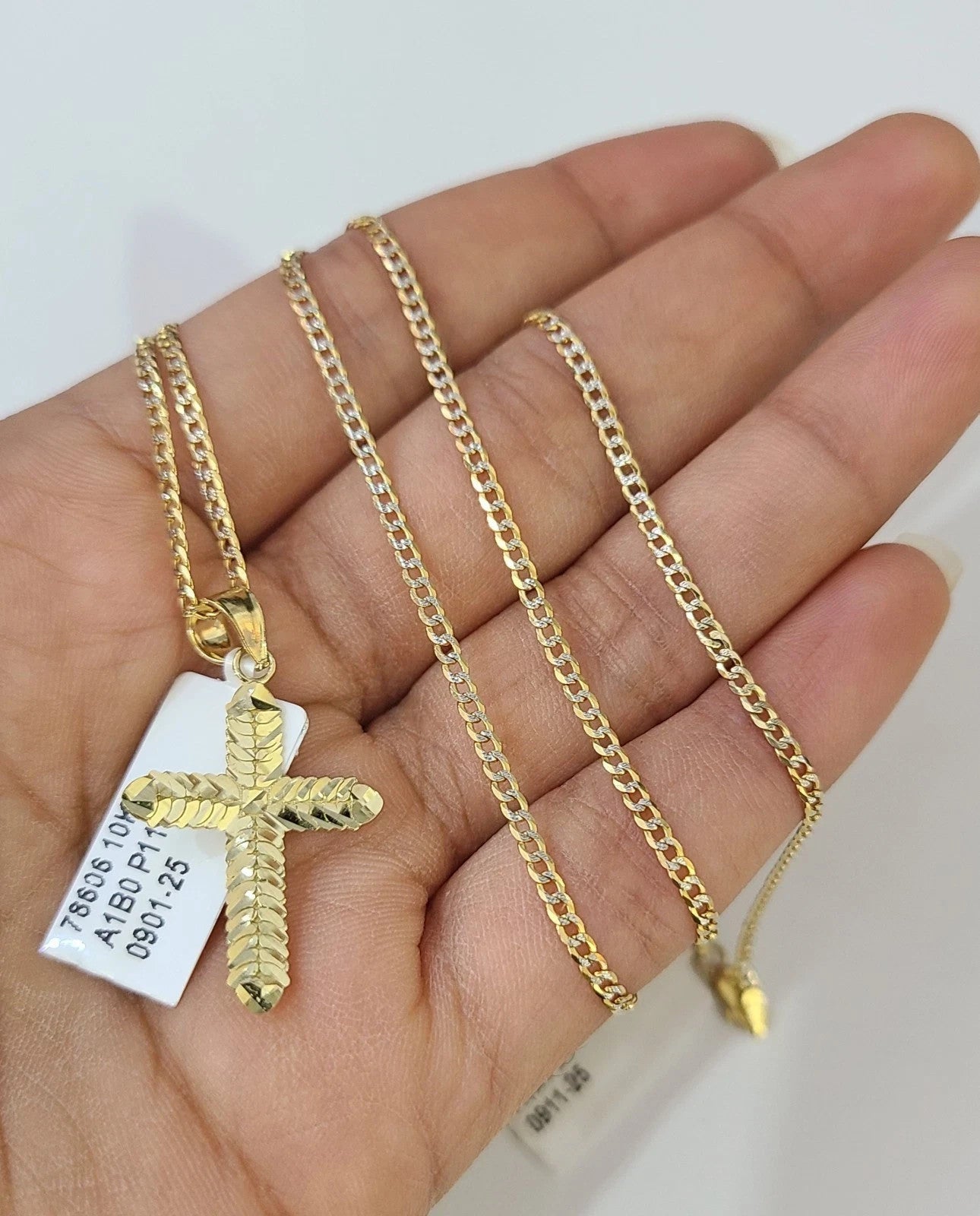 Is Presenting You with This Absolutely Stunning Real 10k Yellow Gold Cuban Curb Chain Diamond Cut 2mm, 18"-24" with Jesus Cross Charm, Lobster Lock. The links are 10K GOLD and are very strong. Please feel free to contact us if you have any queries regarding the item. A3B8-24" A1B0 P11822