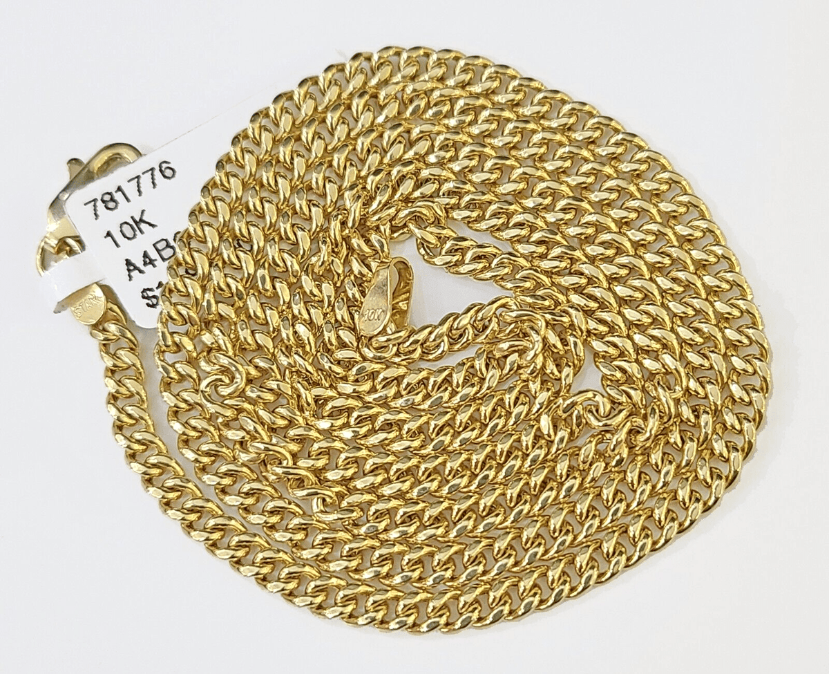 We present You with This Absolutely Stunning Real 10k Yellow Gold Miami Cuban Chain with Cross Charm 3mm 20inches. It...