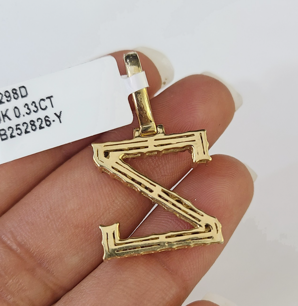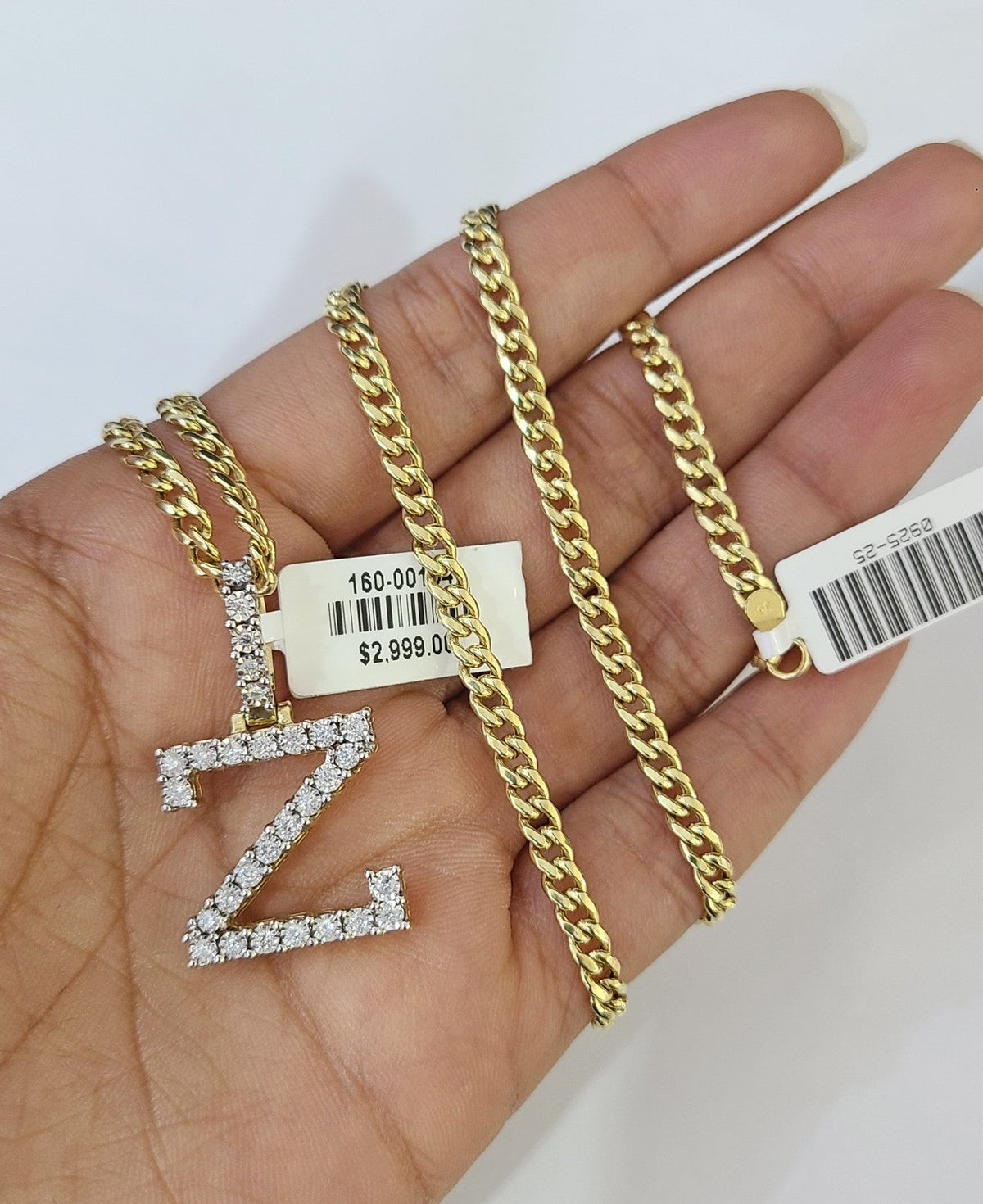 10K Gold Miami Cuban Chain Z Diamond Initial 20"-28" 3mm Pendant Necklace SET