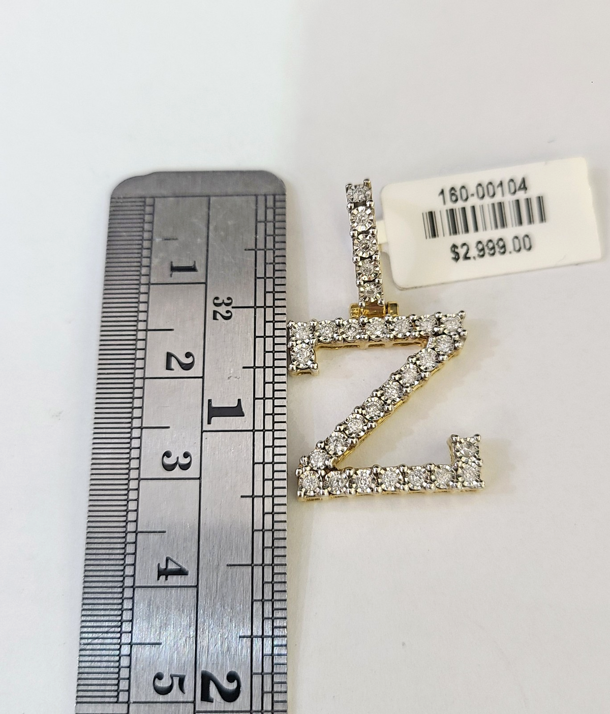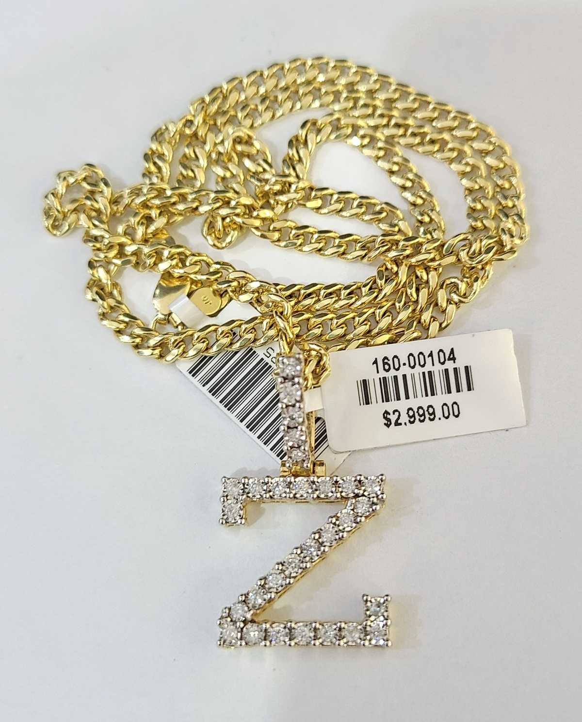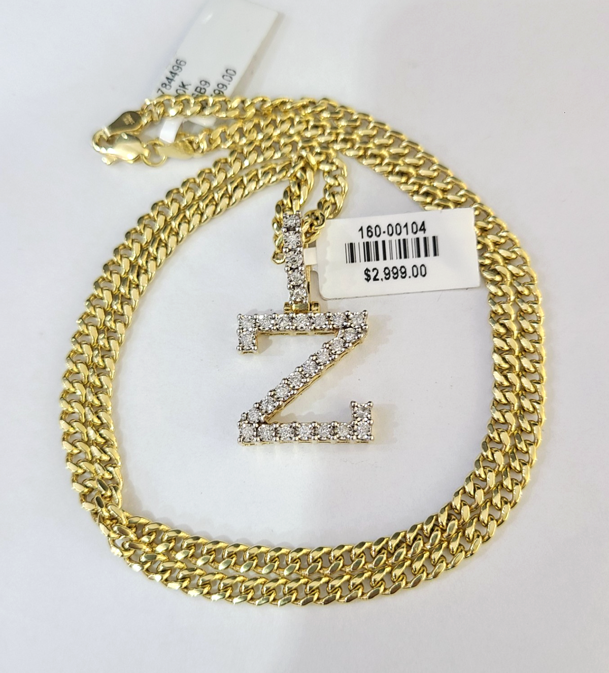 10K Gold Miami Cuban Chain Z Diamond Initial 20"-28" 3mm Pendant Necklace SET - 20 Inch with Chain