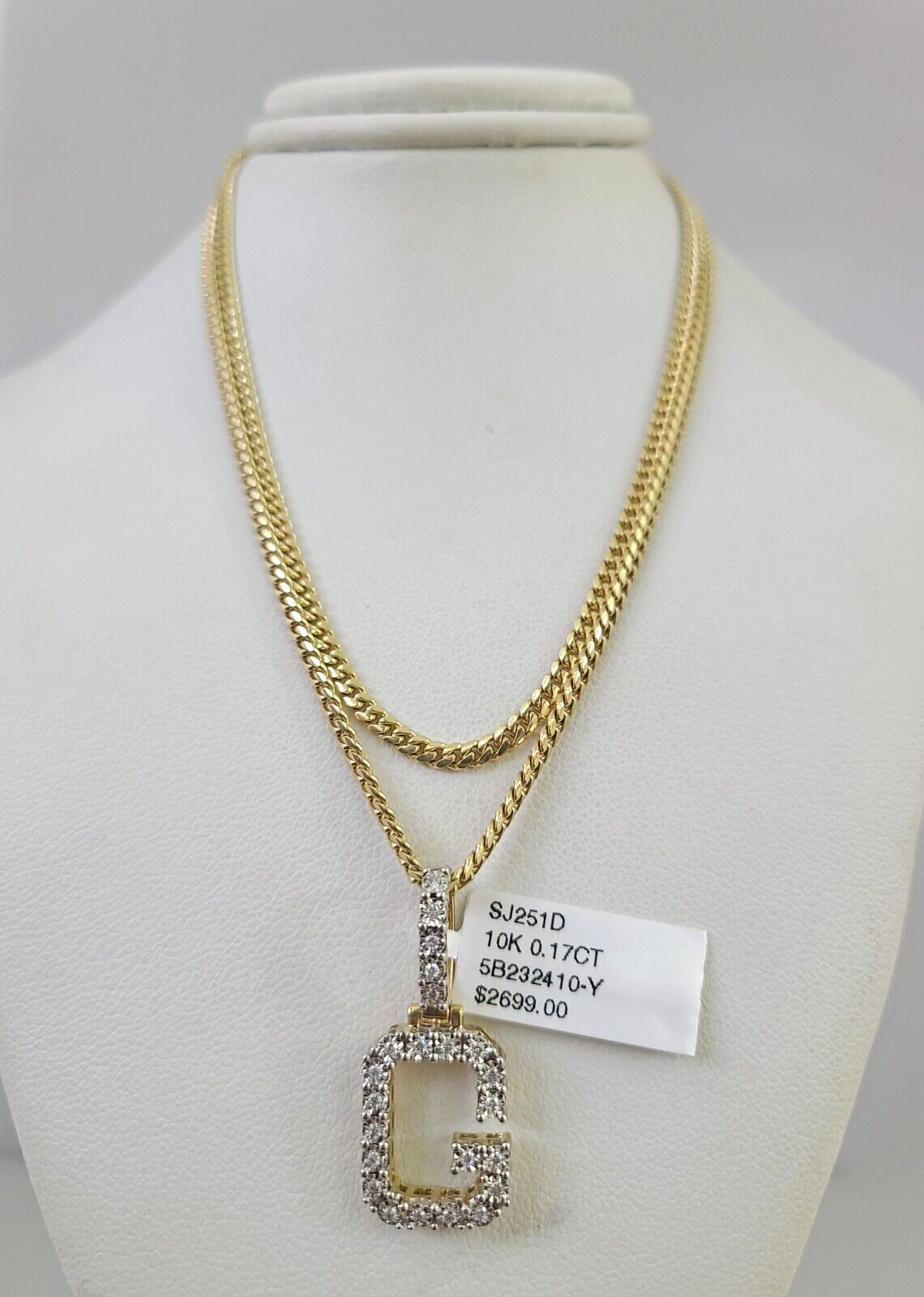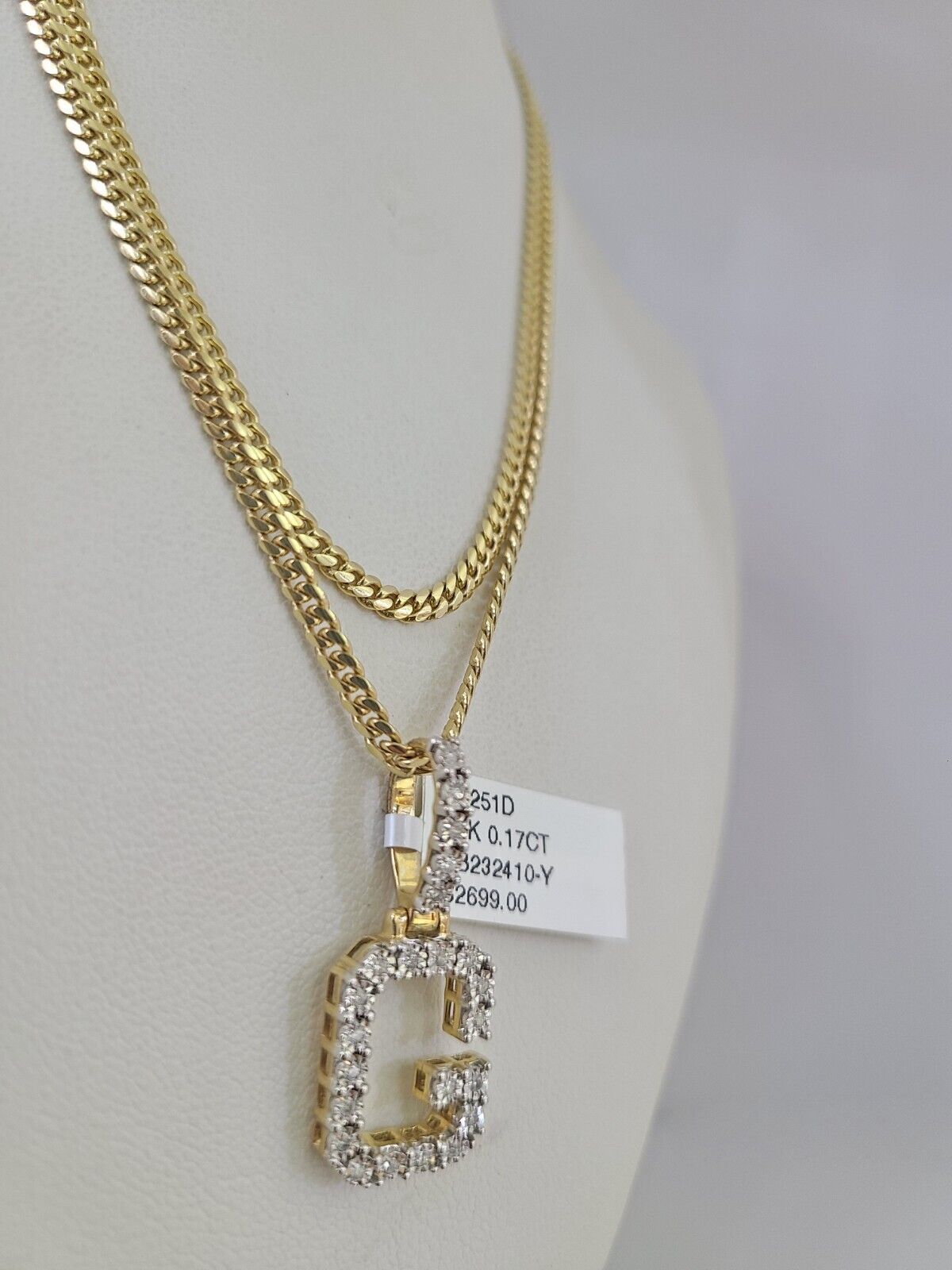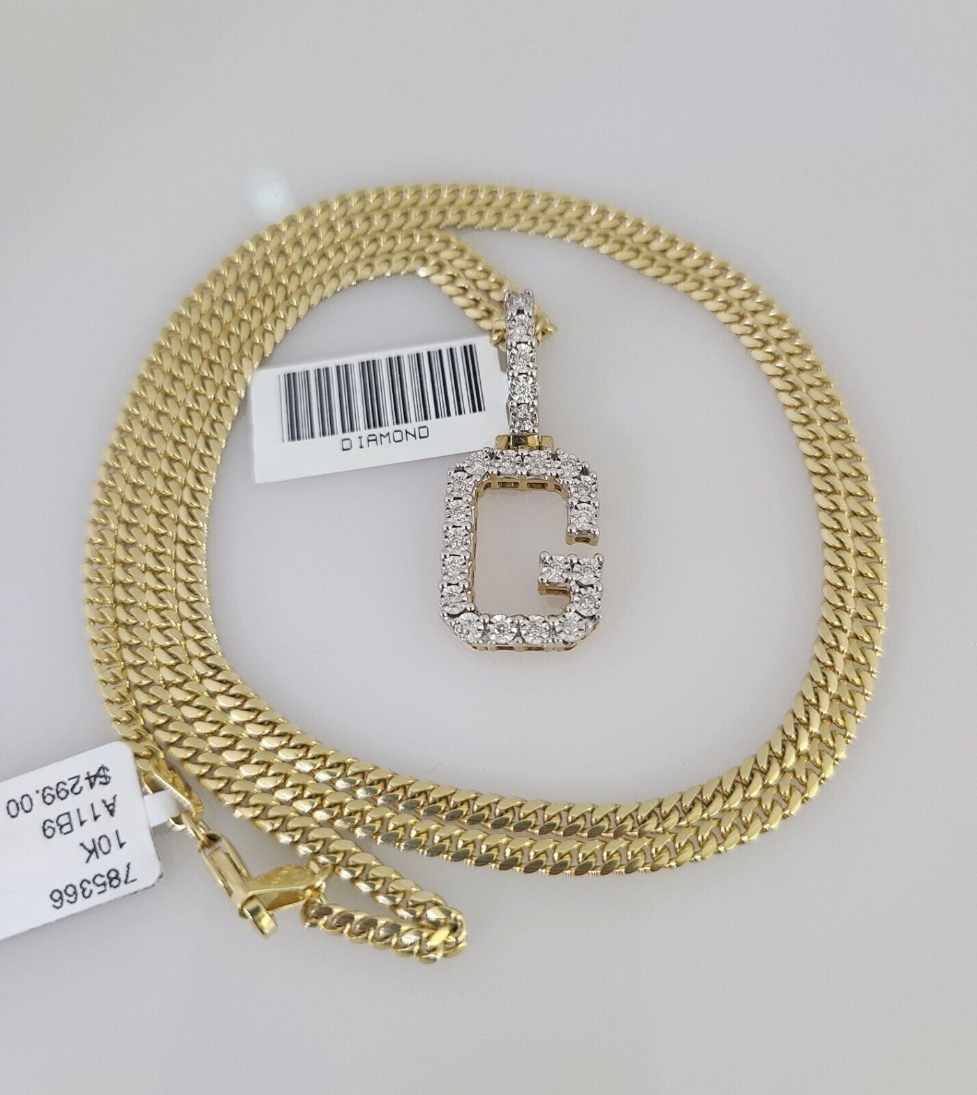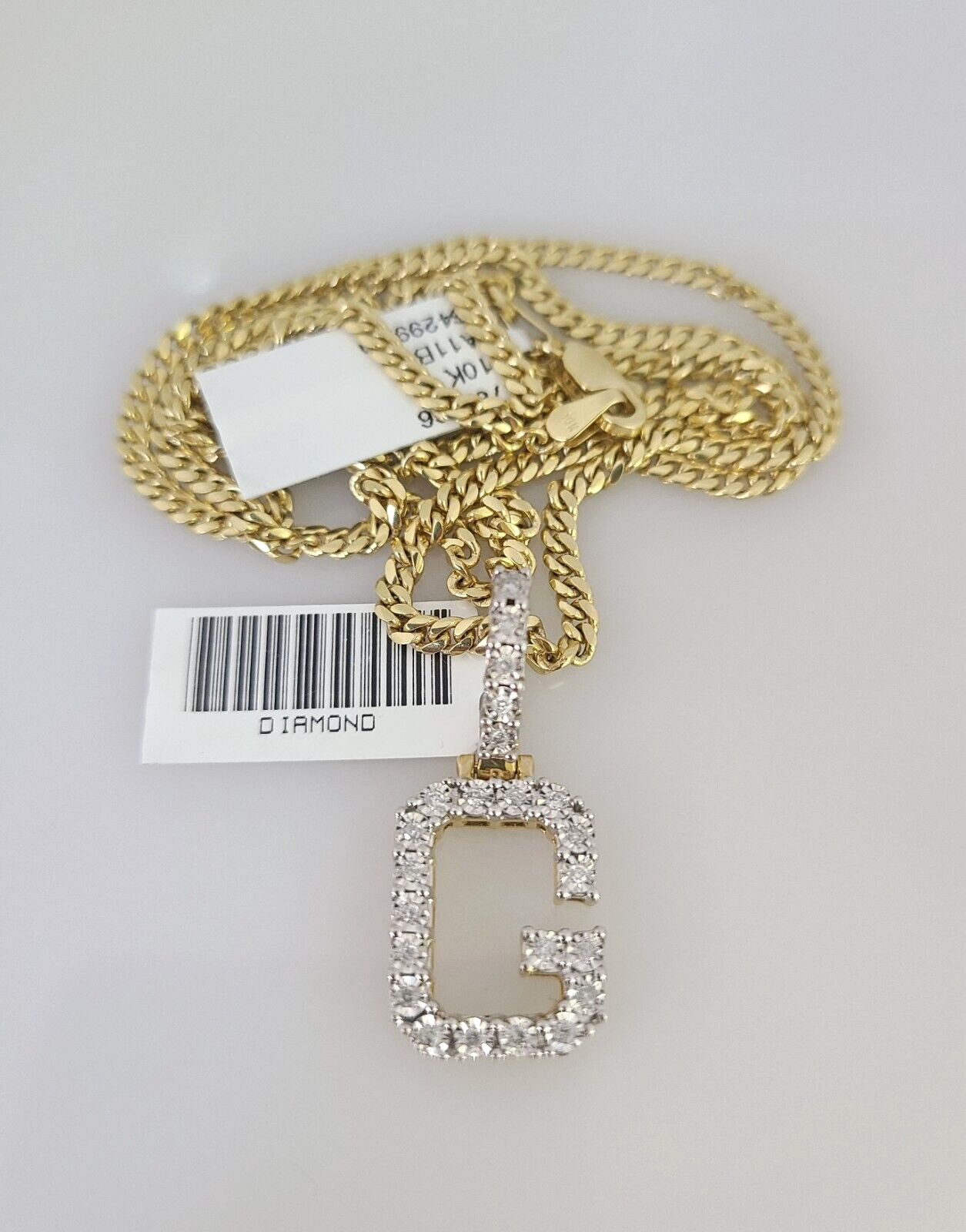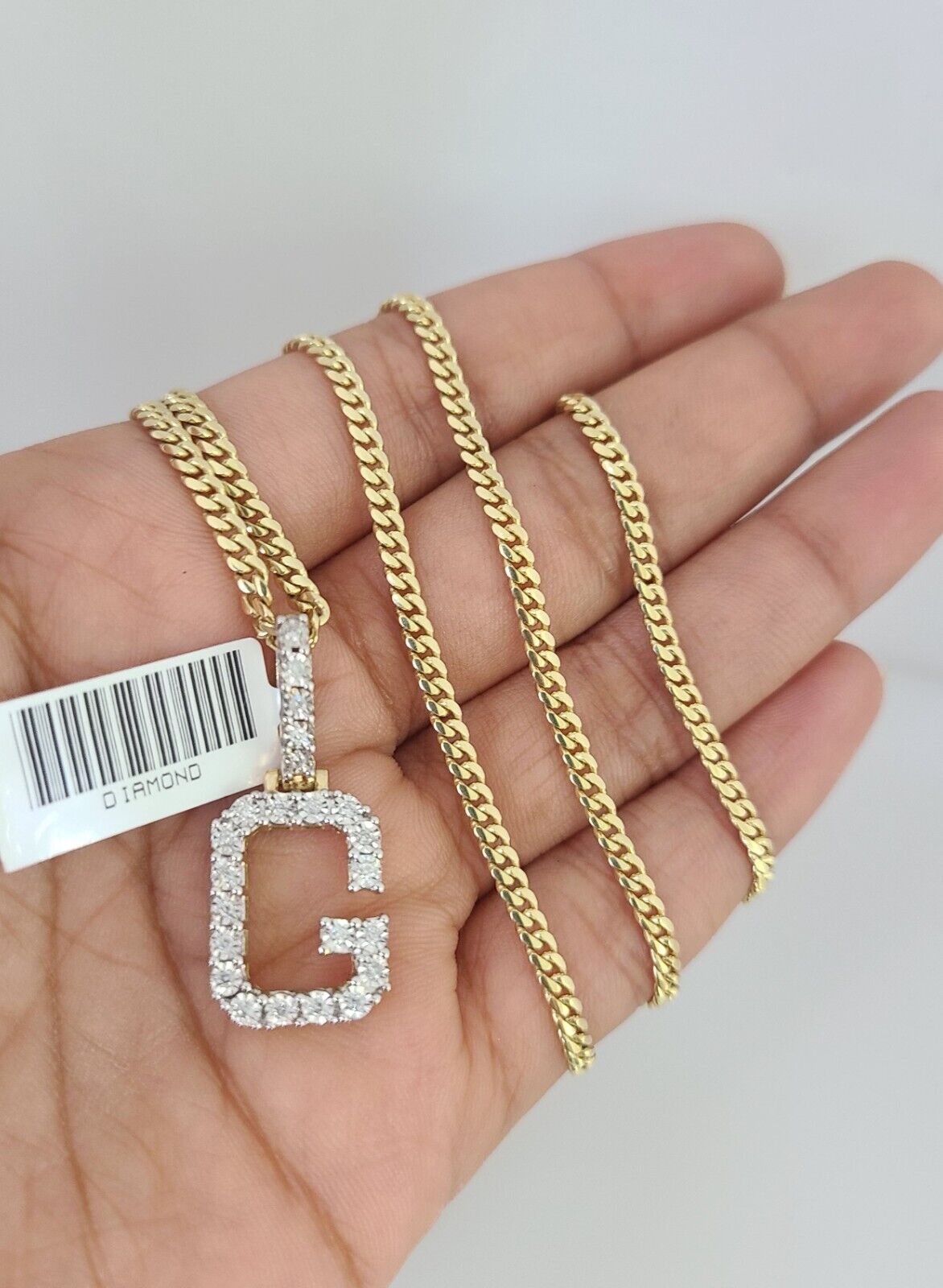 10k Gold Solid Miami Cuban Chain G Initial Diamond Pendant 2.5mm 18"-24" Set - 20 Inch