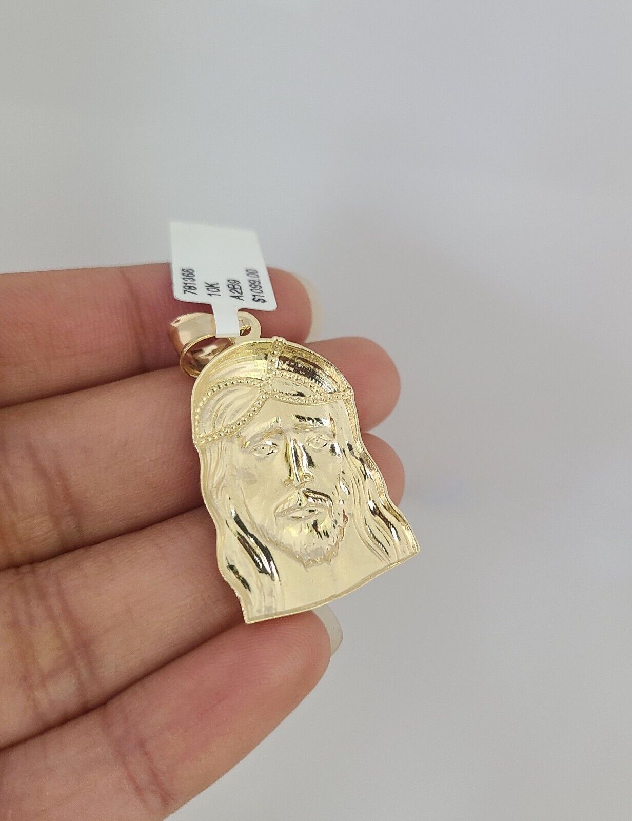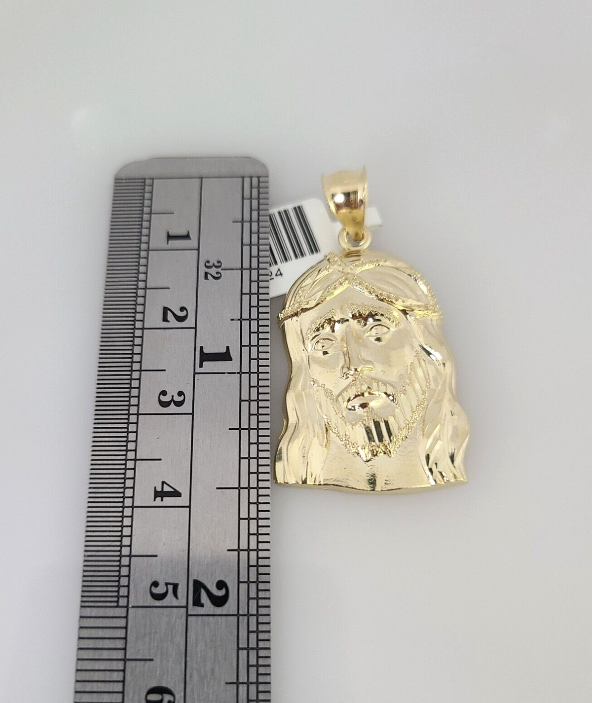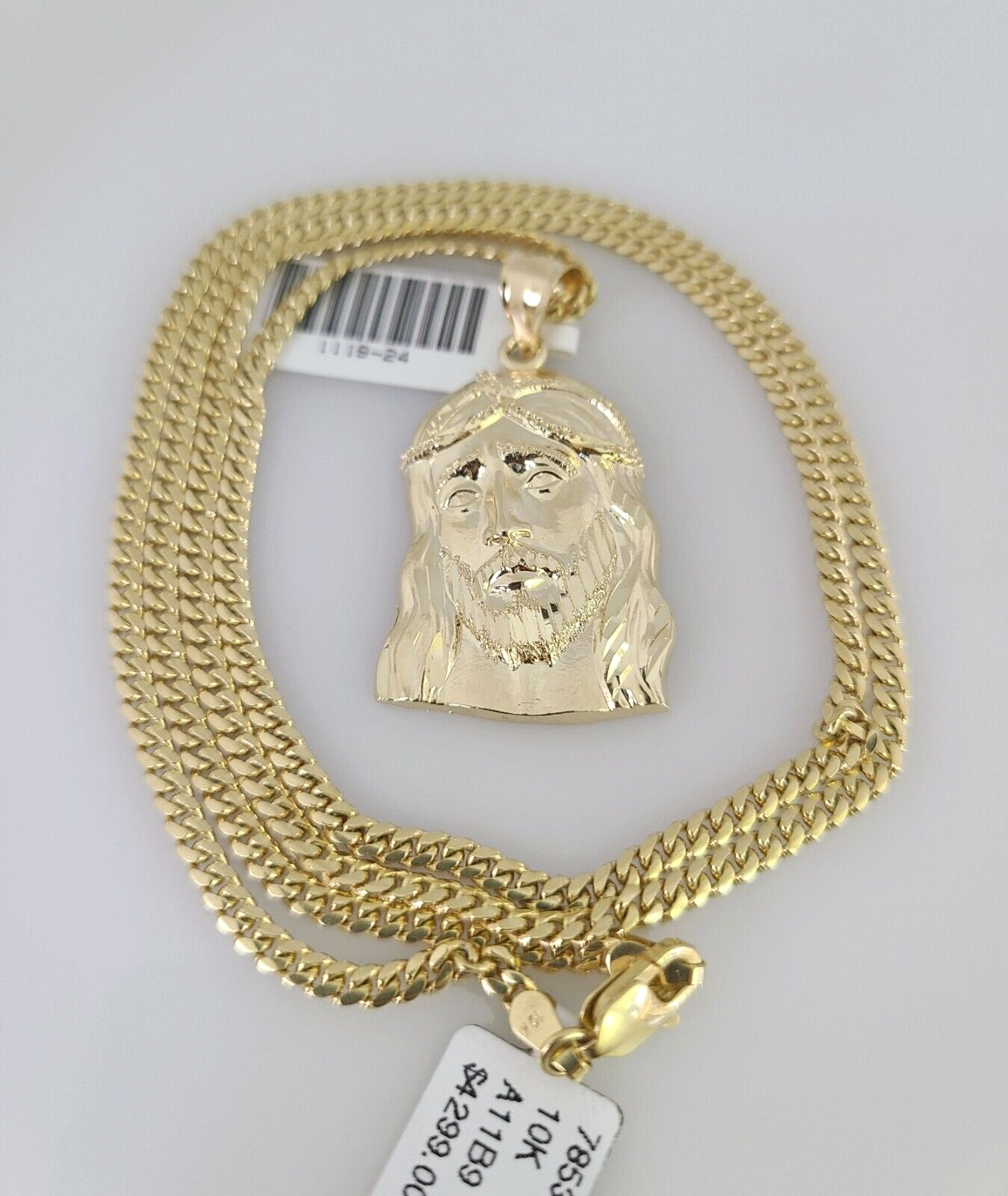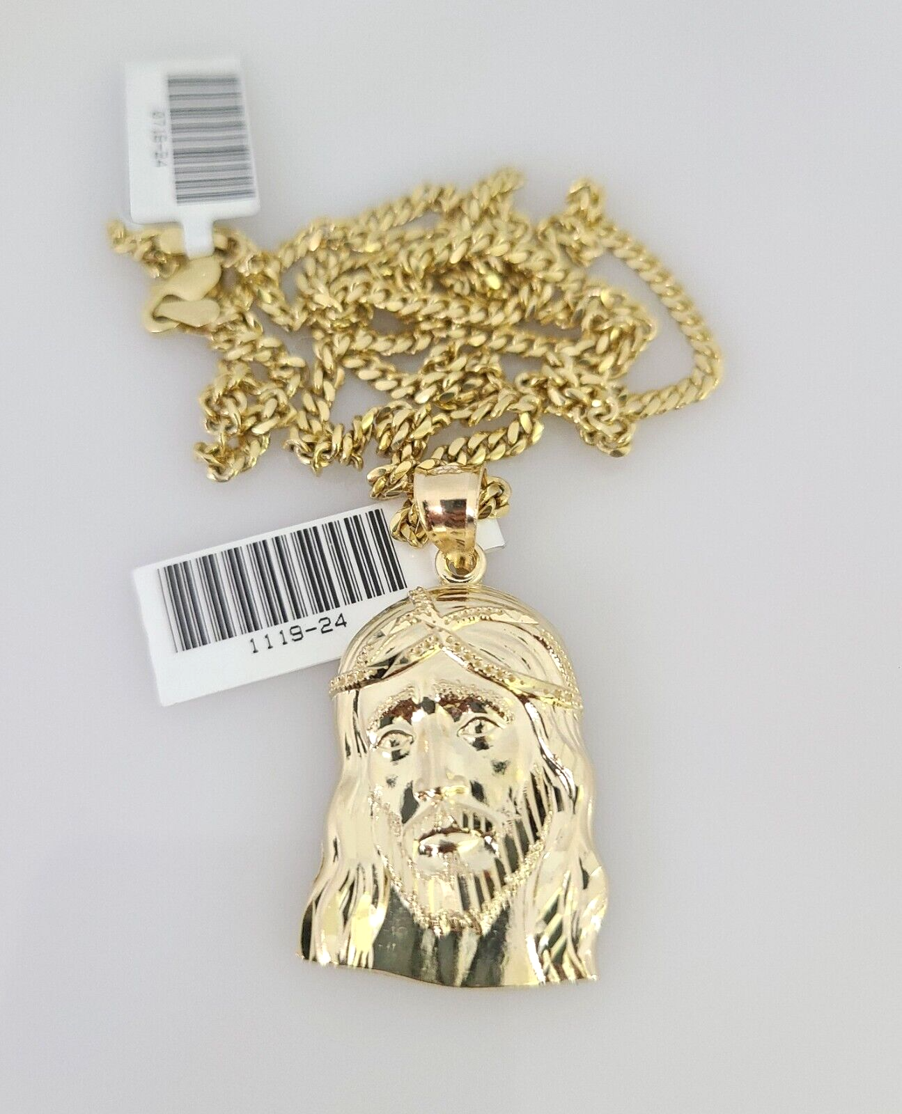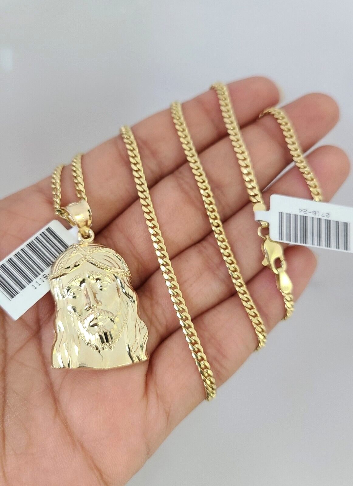 10k Gold Solid Miami Cuban Chain Necklace Jesus Head Pendant 2.5mm 18-24" Set - 20 Inch