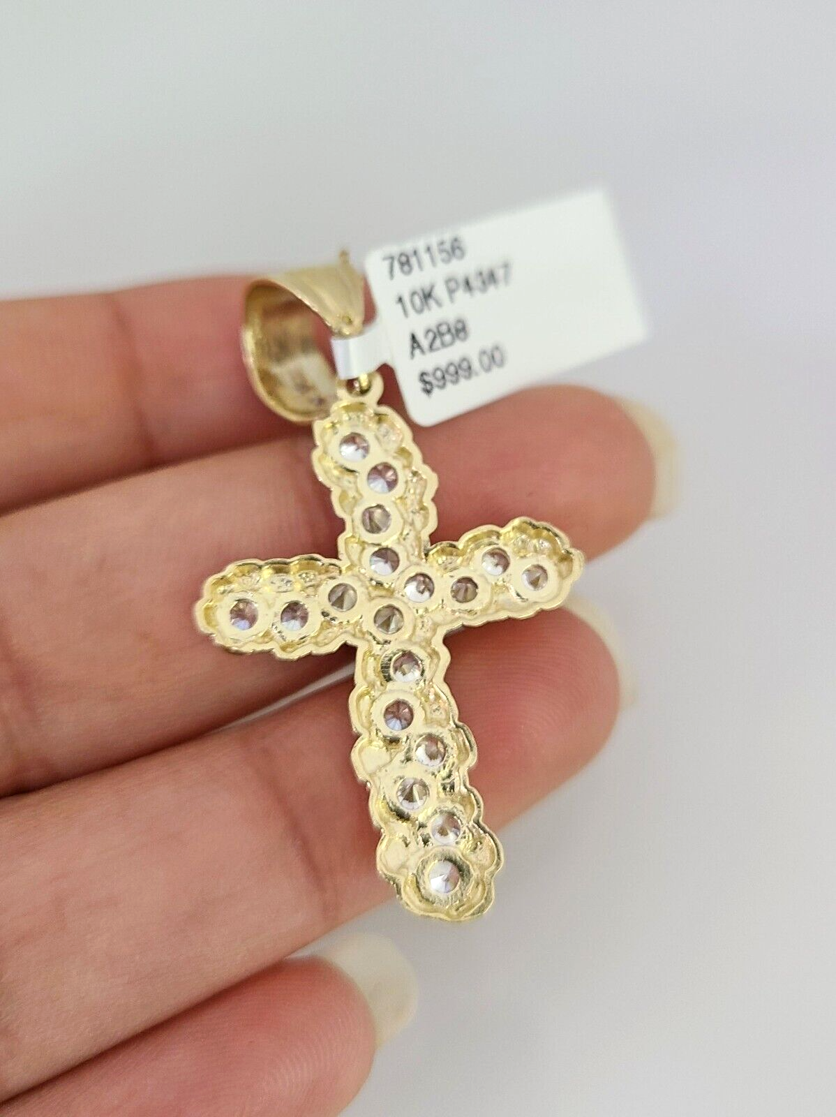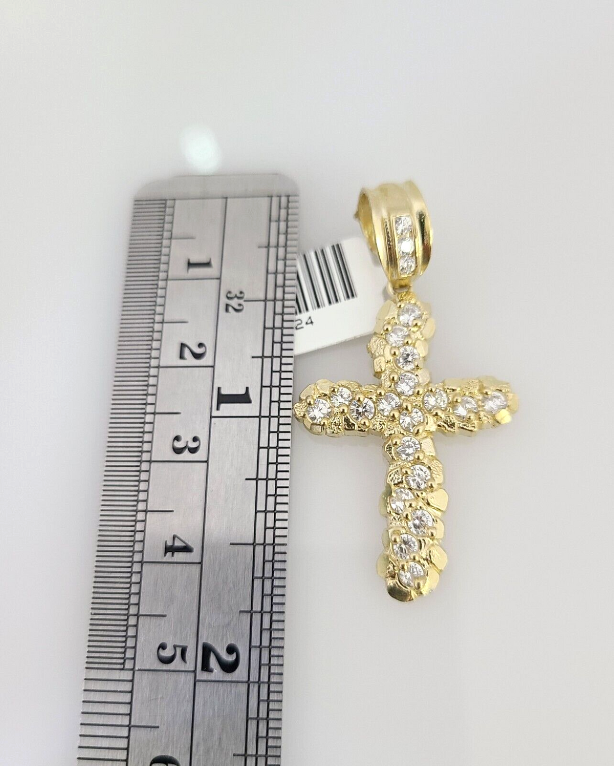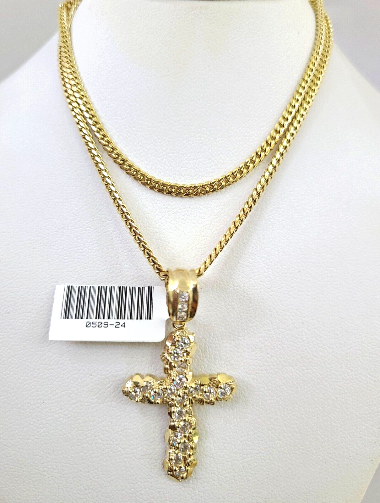 10k Gold Solid Miami Cuban Necklace Jesus Cross Pendant 2.5mm 18-24" Chain Set