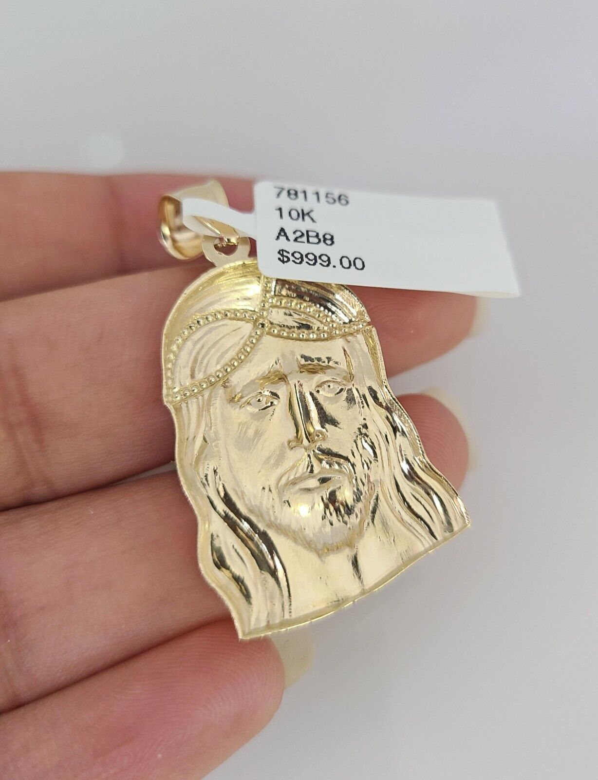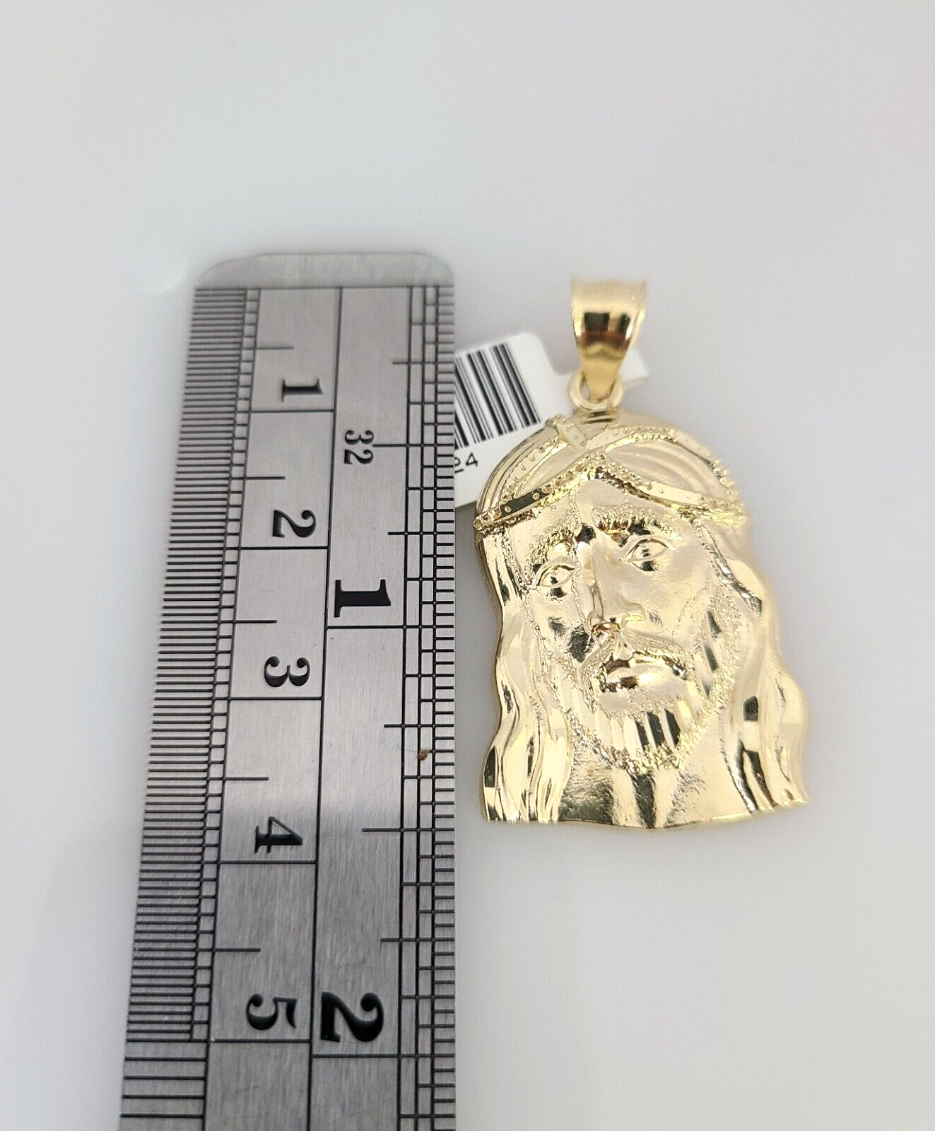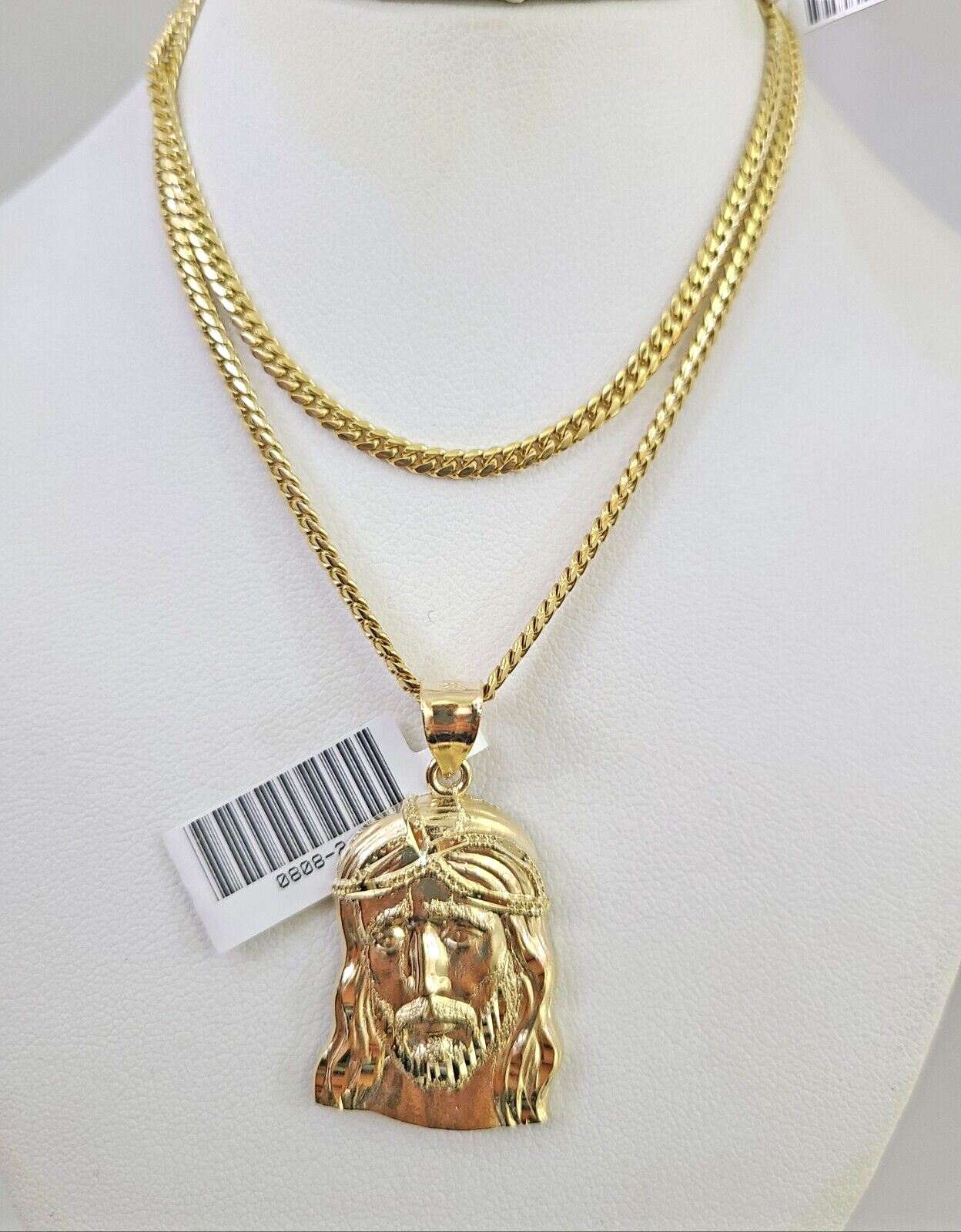 10k Gold Solid Miami Cuban Necklace Jesus Head Pendant 2.5mm 18-24" Chain Set