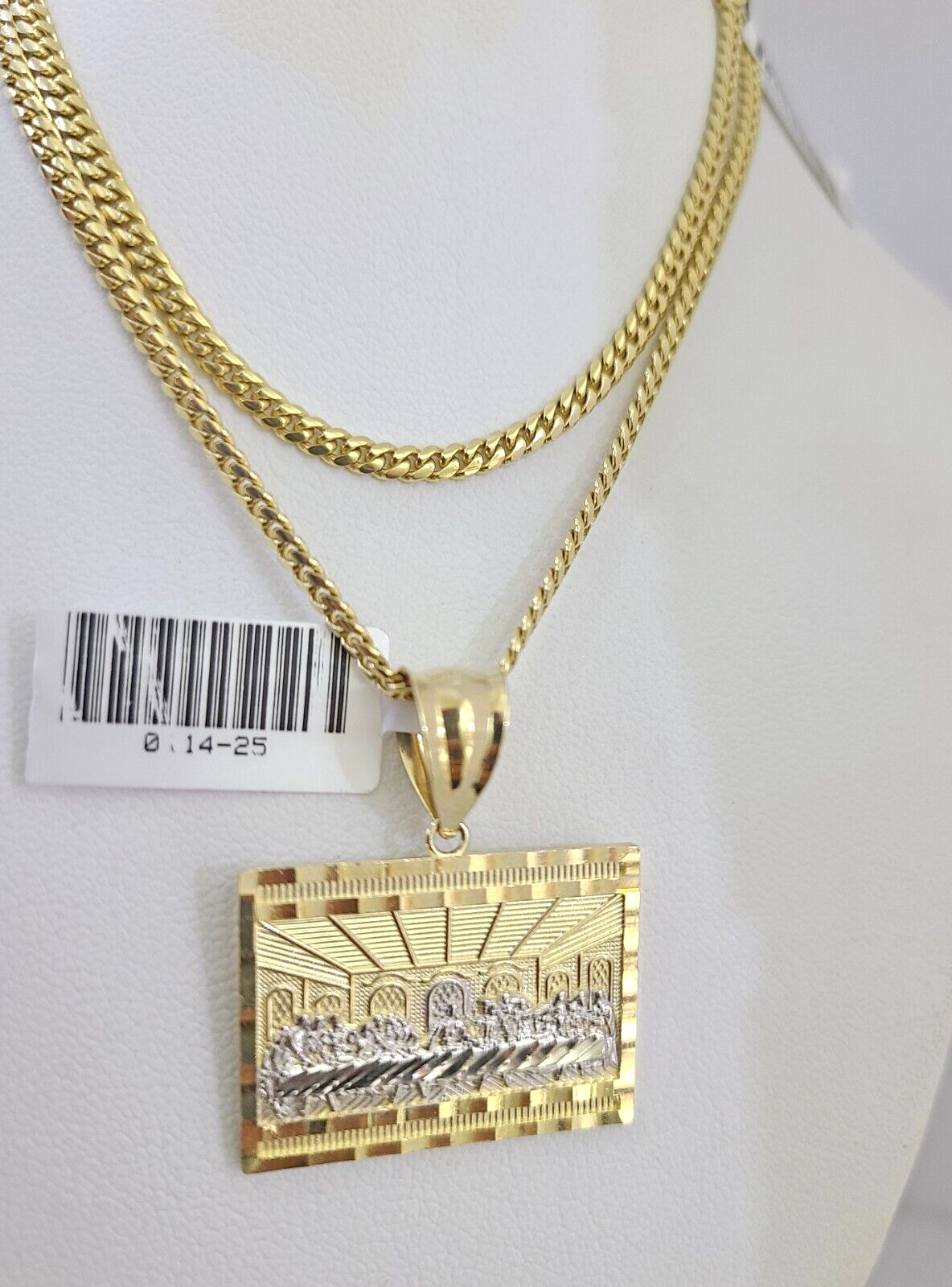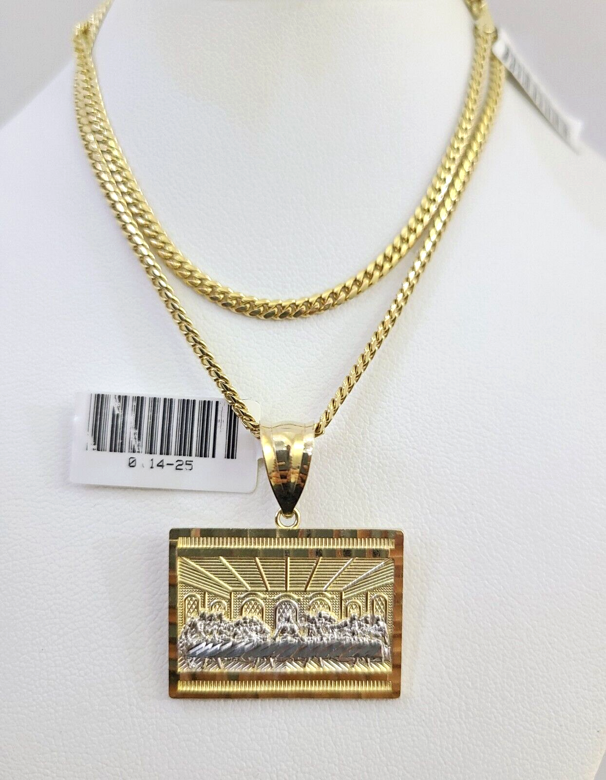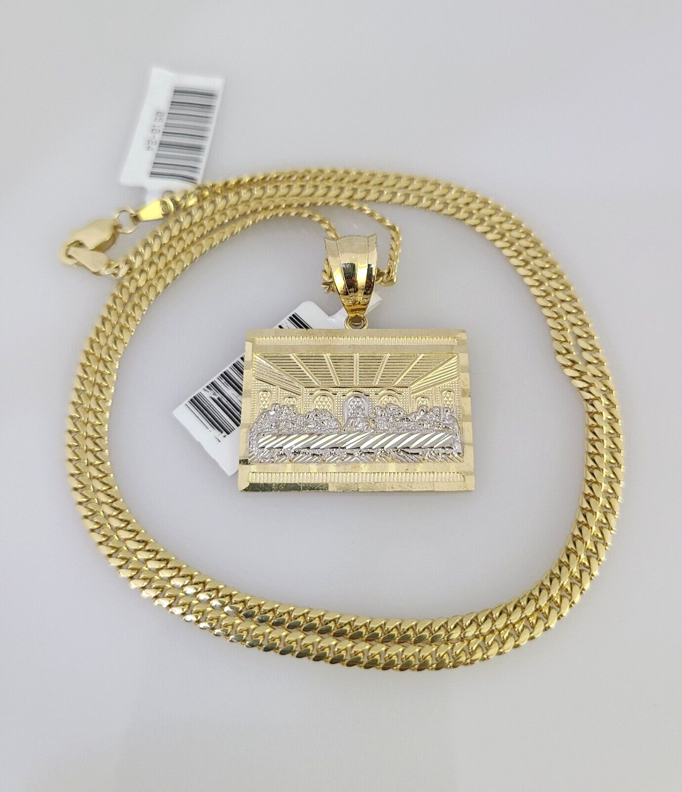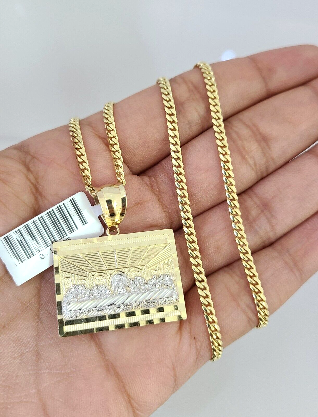 10kt Gold Miami Cuban Chain Last Supper Charm Pendant 2.5mm 18-24 Inch Necklace SALE