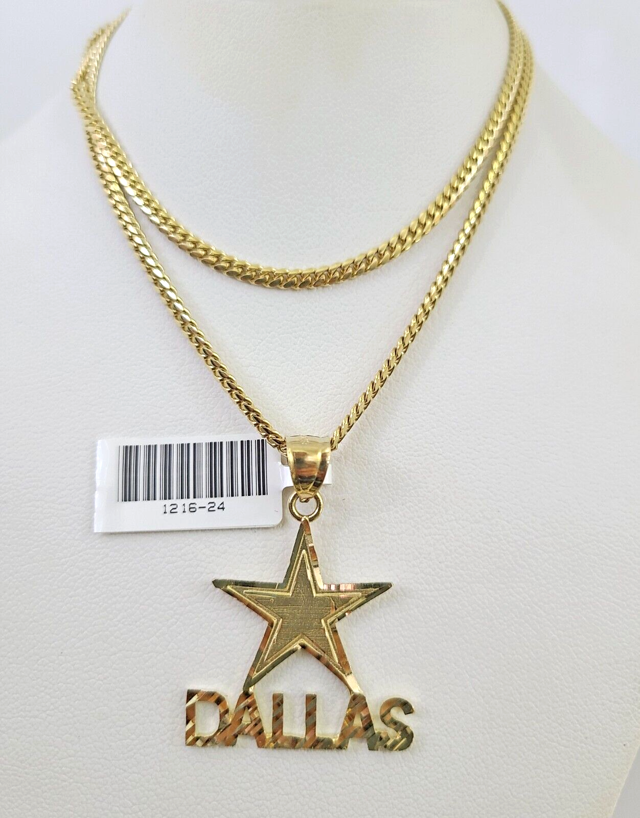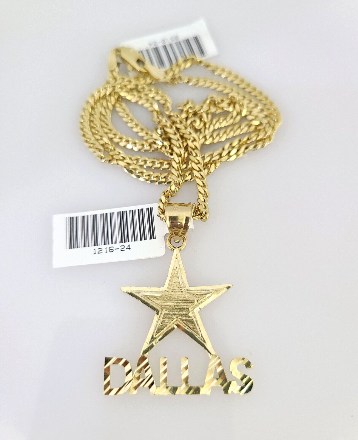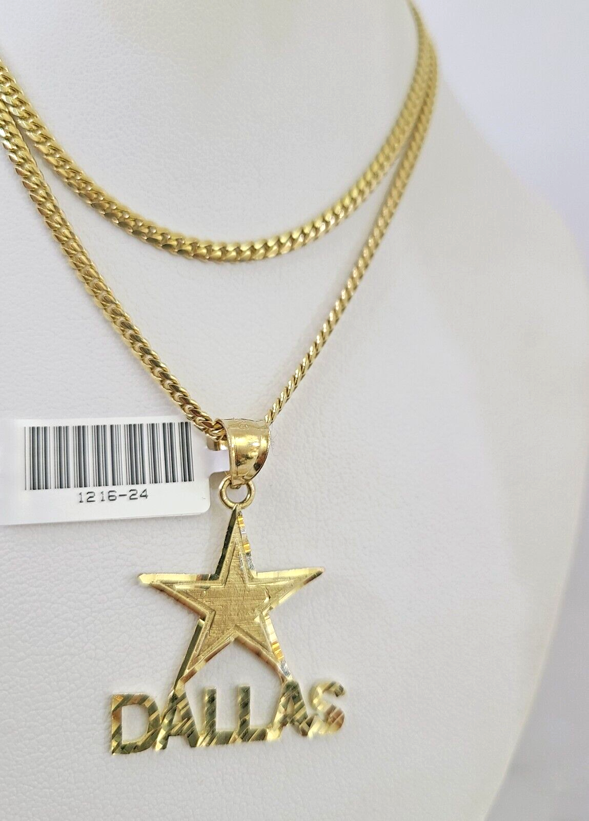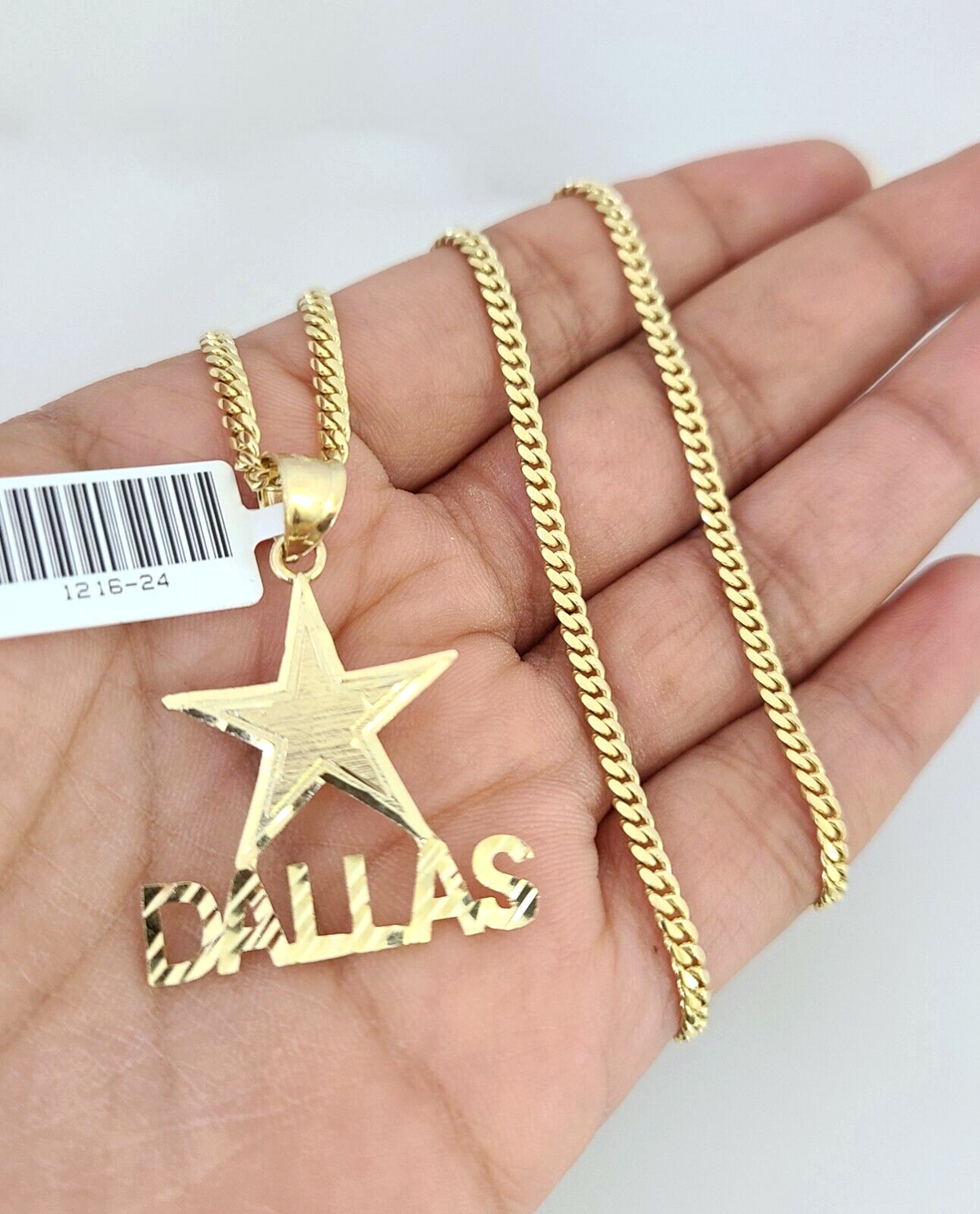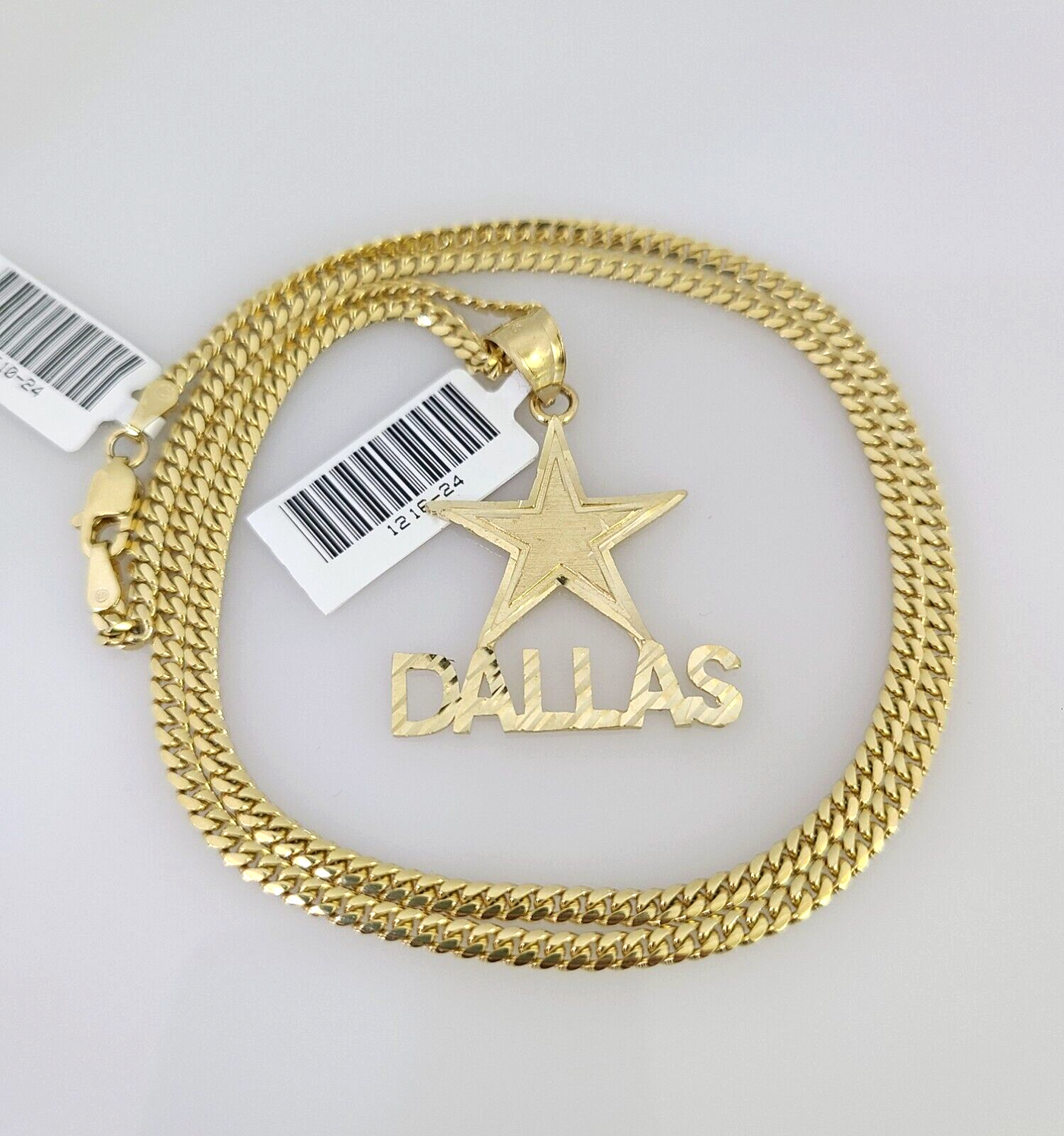 10k Gold Solid Miami Cuban Necklace Star Dallas Pendant 2.5mm 18-24" Chain Set - 20 Inch