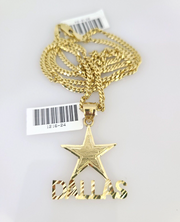 10k Gold Solid Miami Cuban Necklace Star Dallas Pendant 2.5mm 18-24" Chain Set